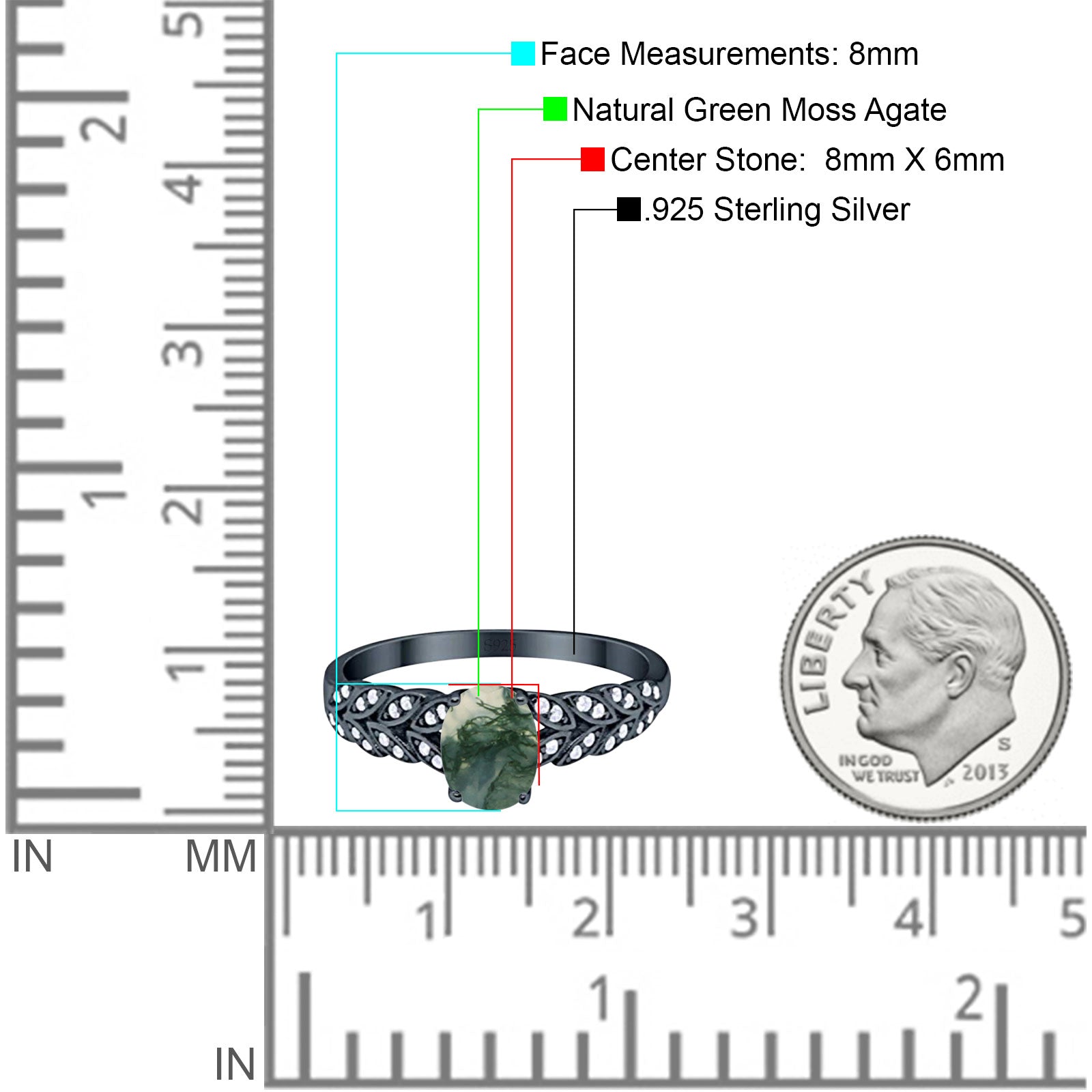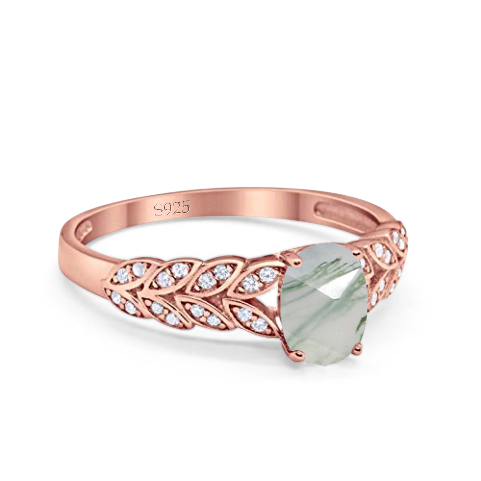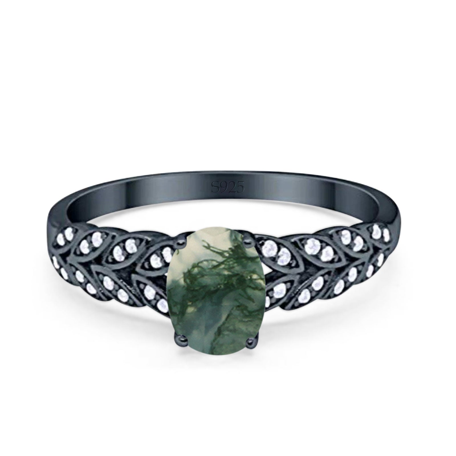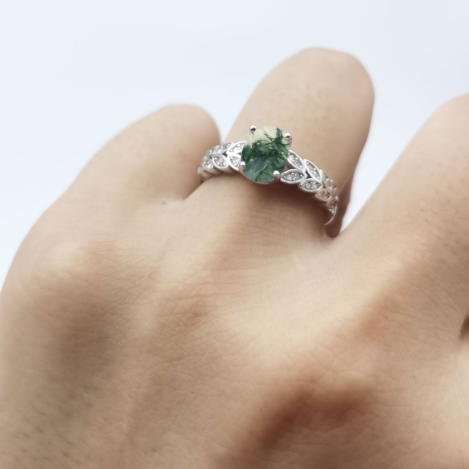 Oval Natural Green Moss Agate Vintage Marquise Style Ring 925 Sterling Silver