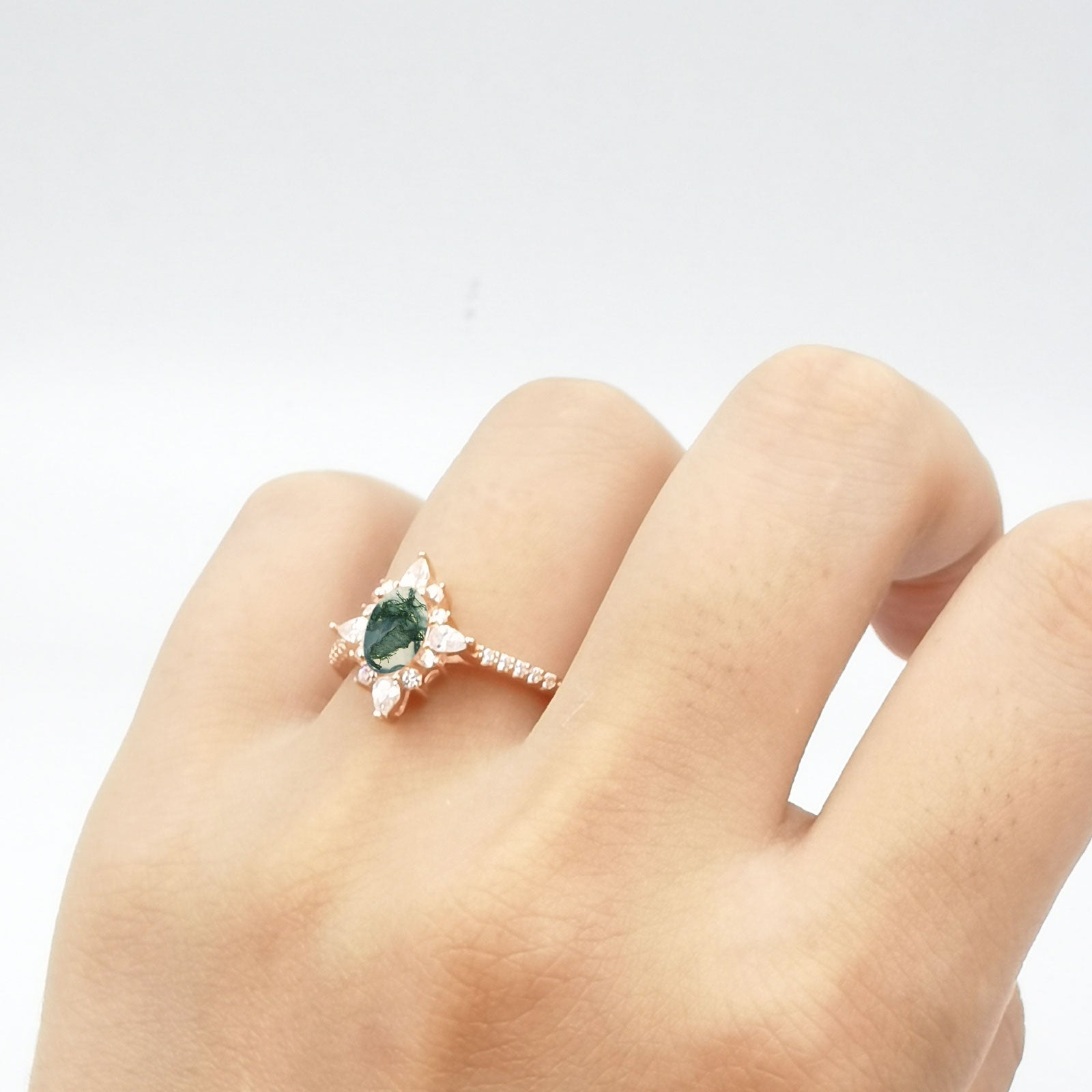 Natural Green Moss Agate Engagement Ring