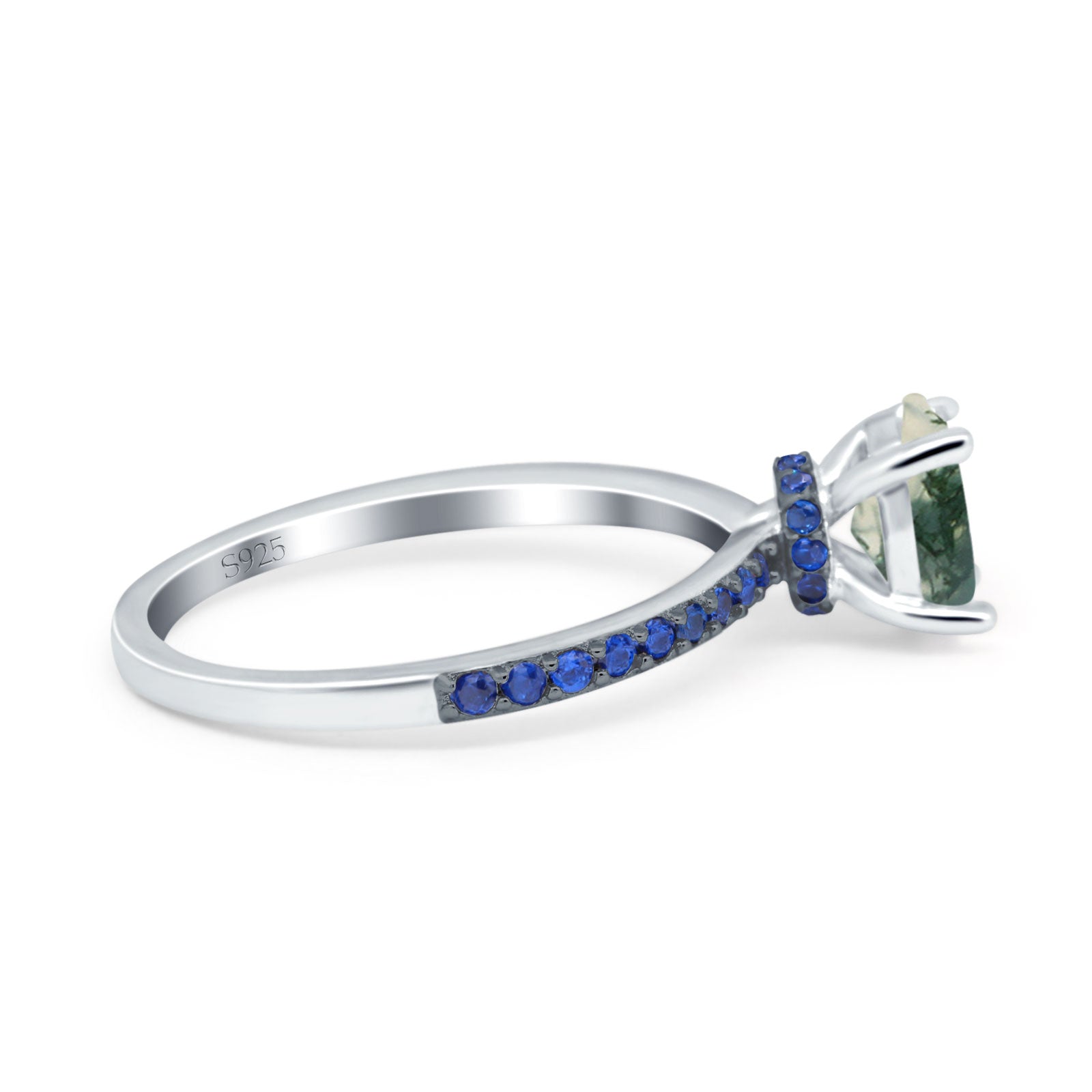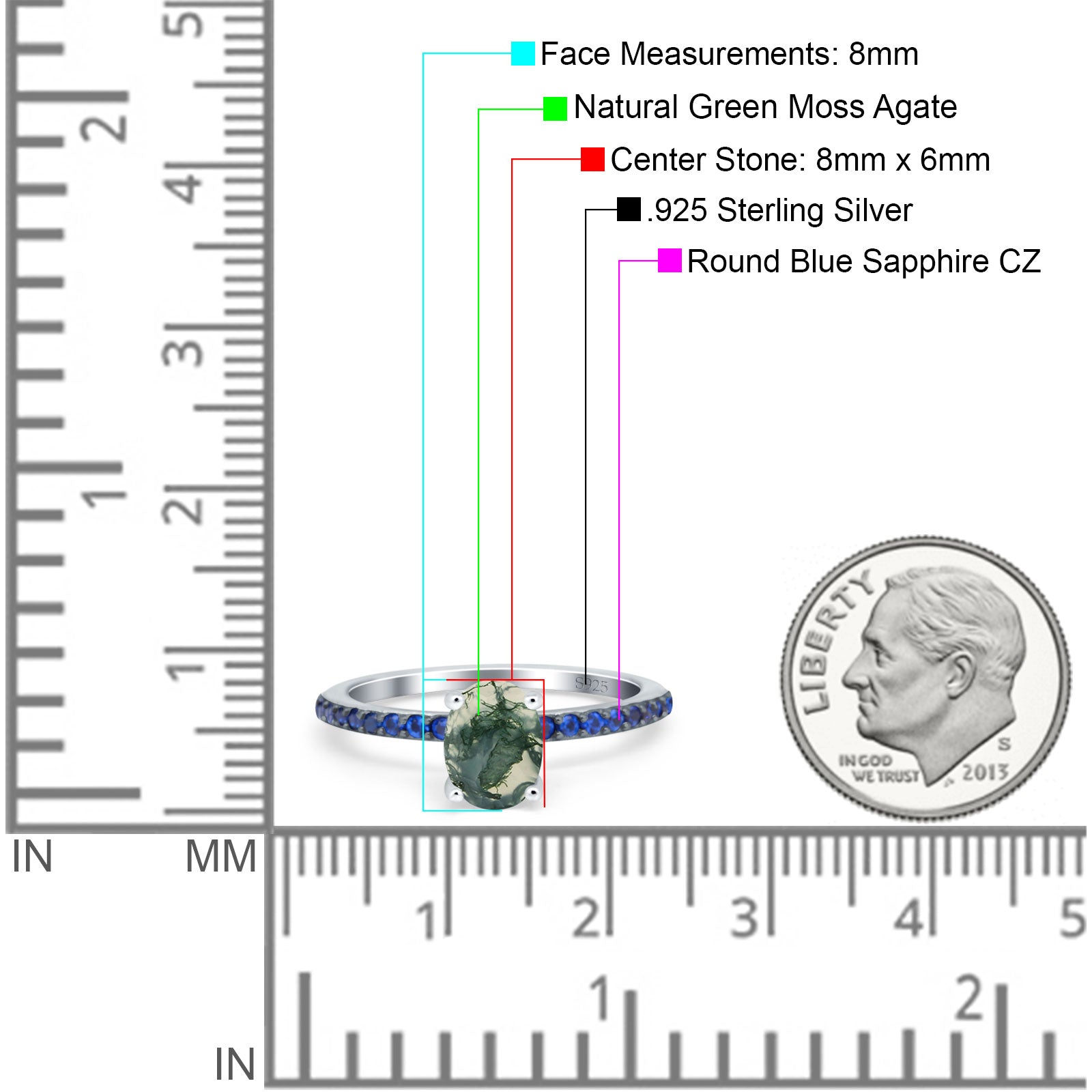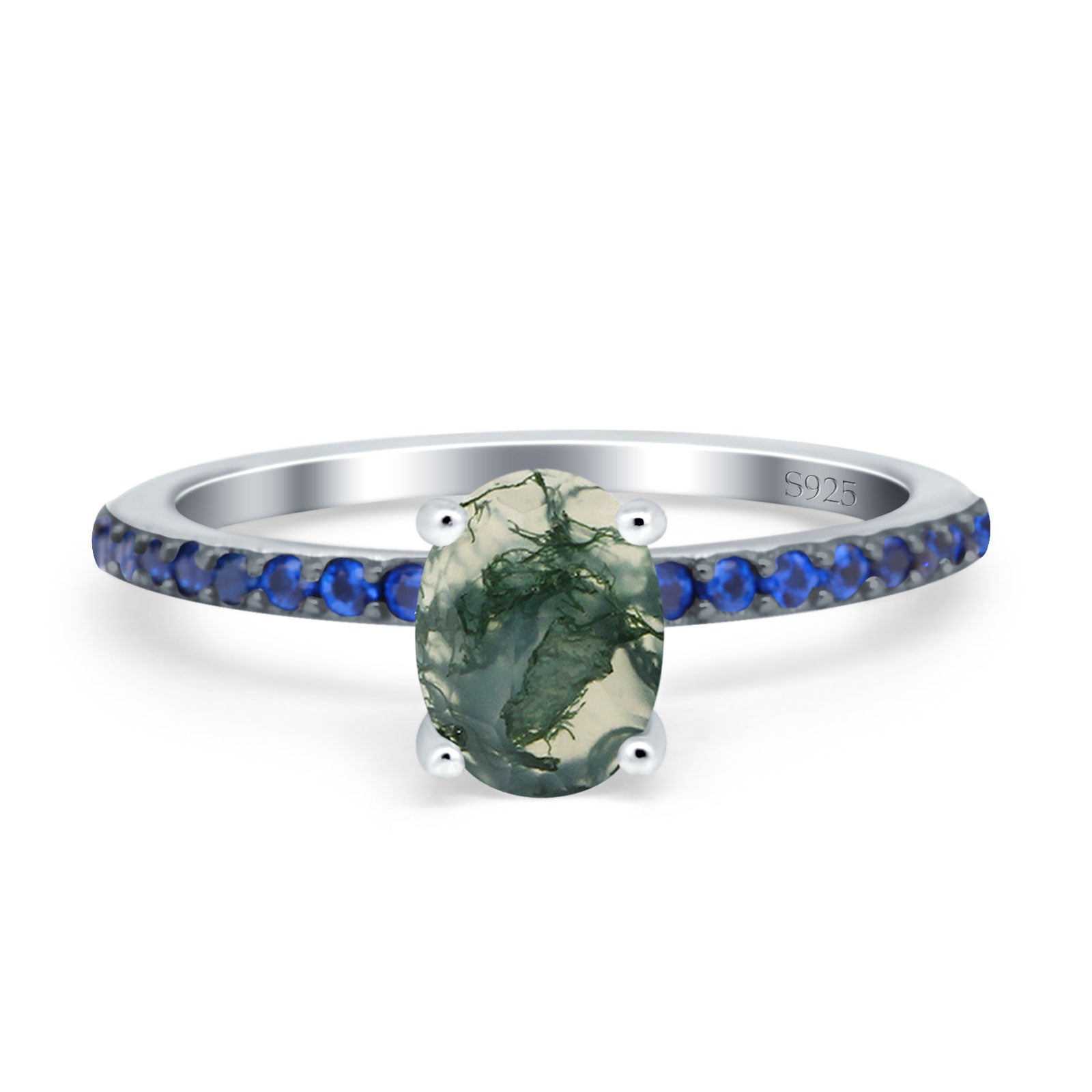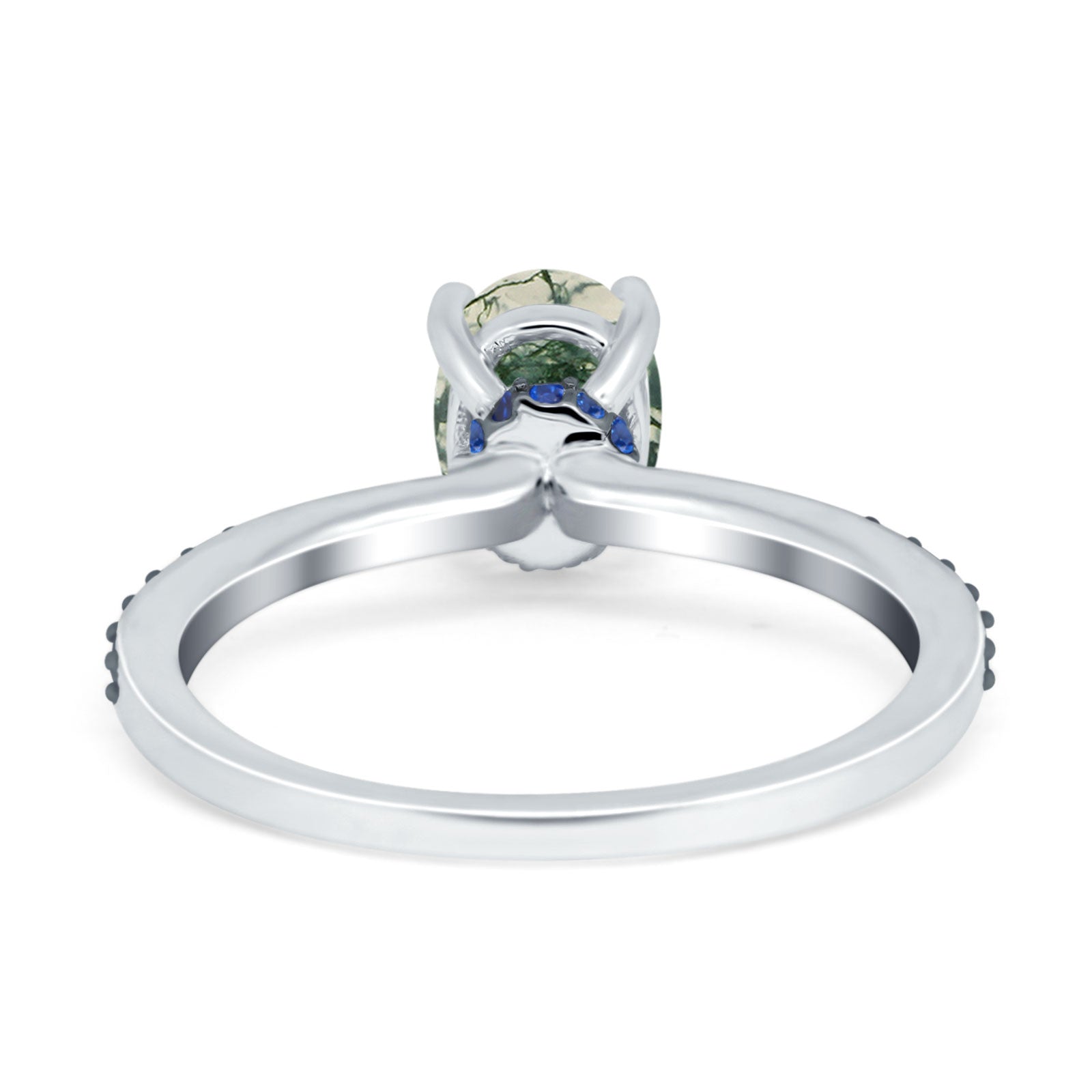 Oval Natural Green Moss Agate Wedding Two Tone Ring 925 Sterling Silver