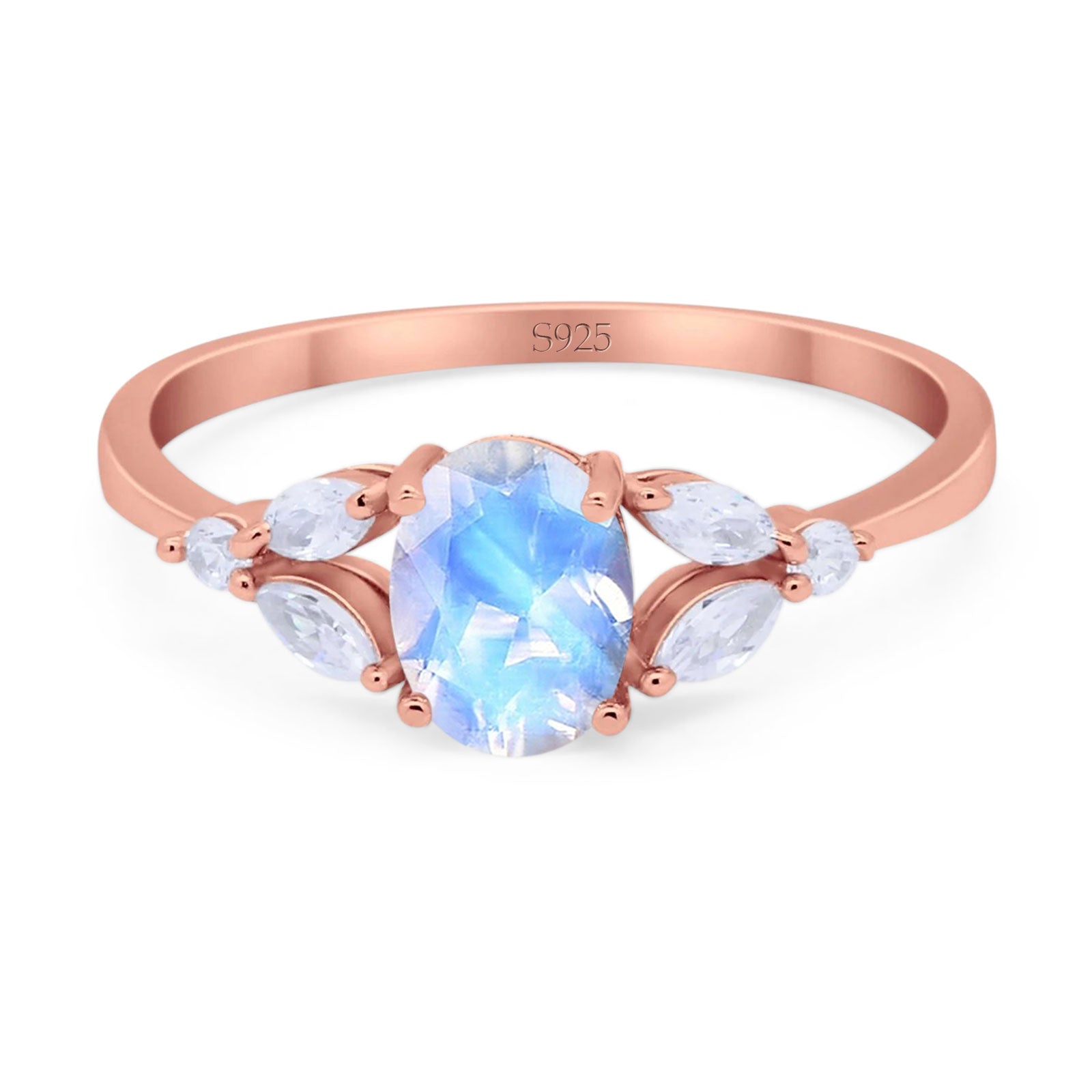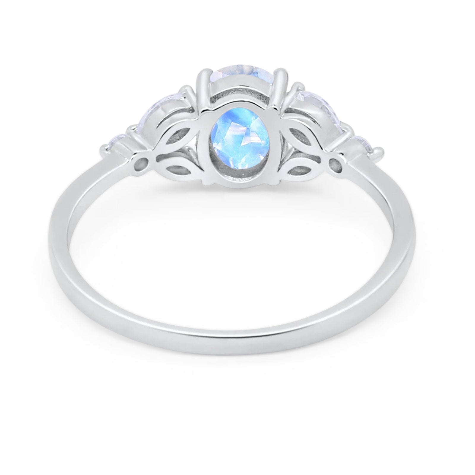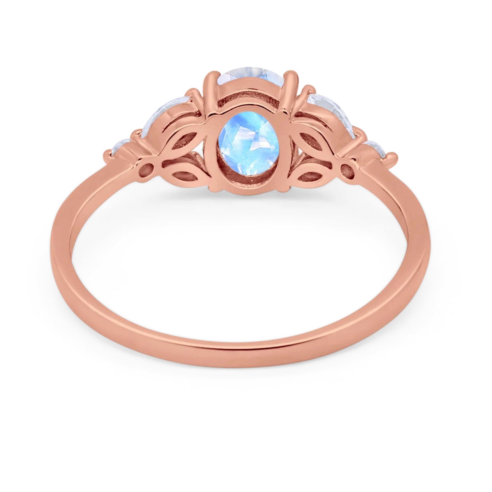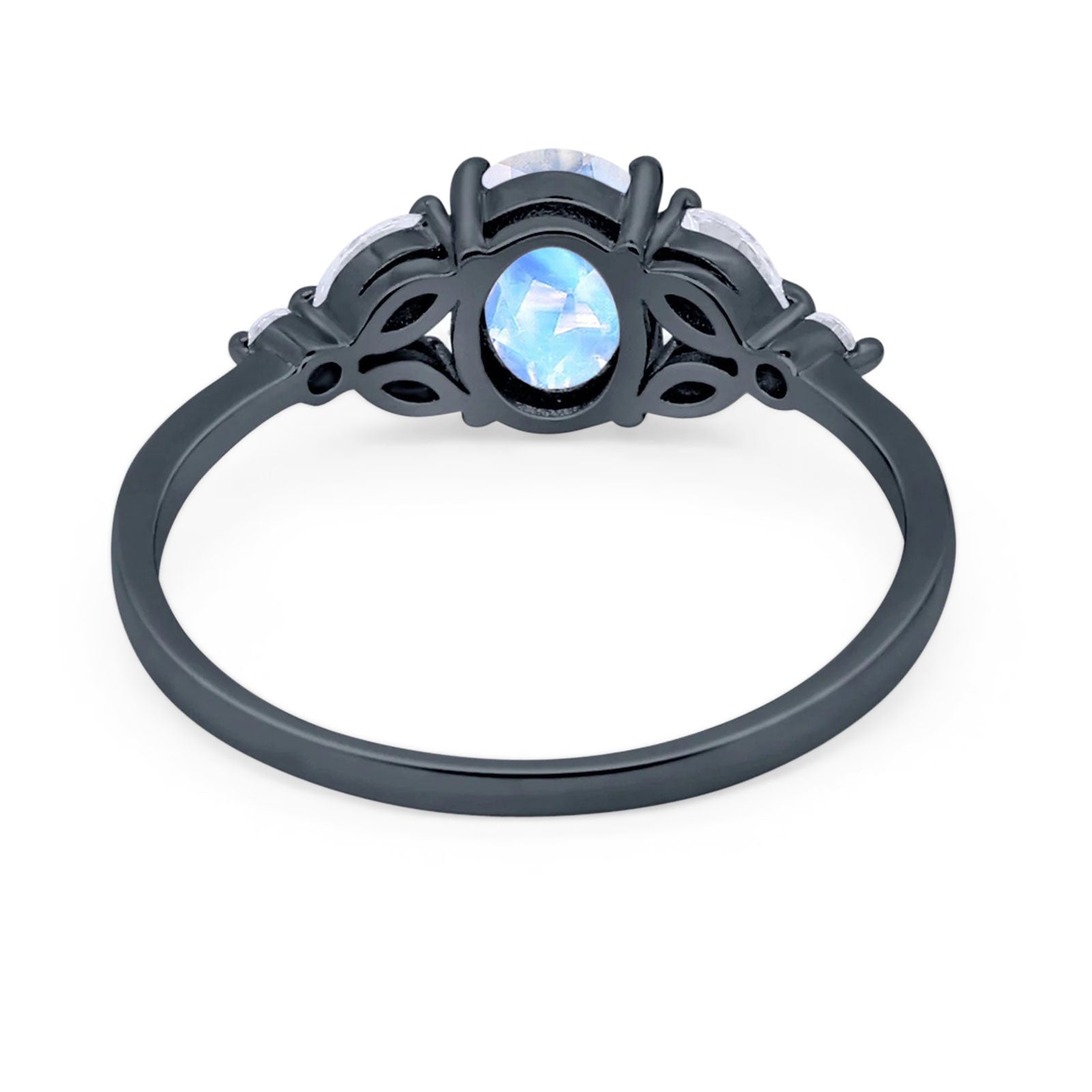 Oval Natural Moonstone Art Deco Marquise Trillium Ring 925 Sterling Silver