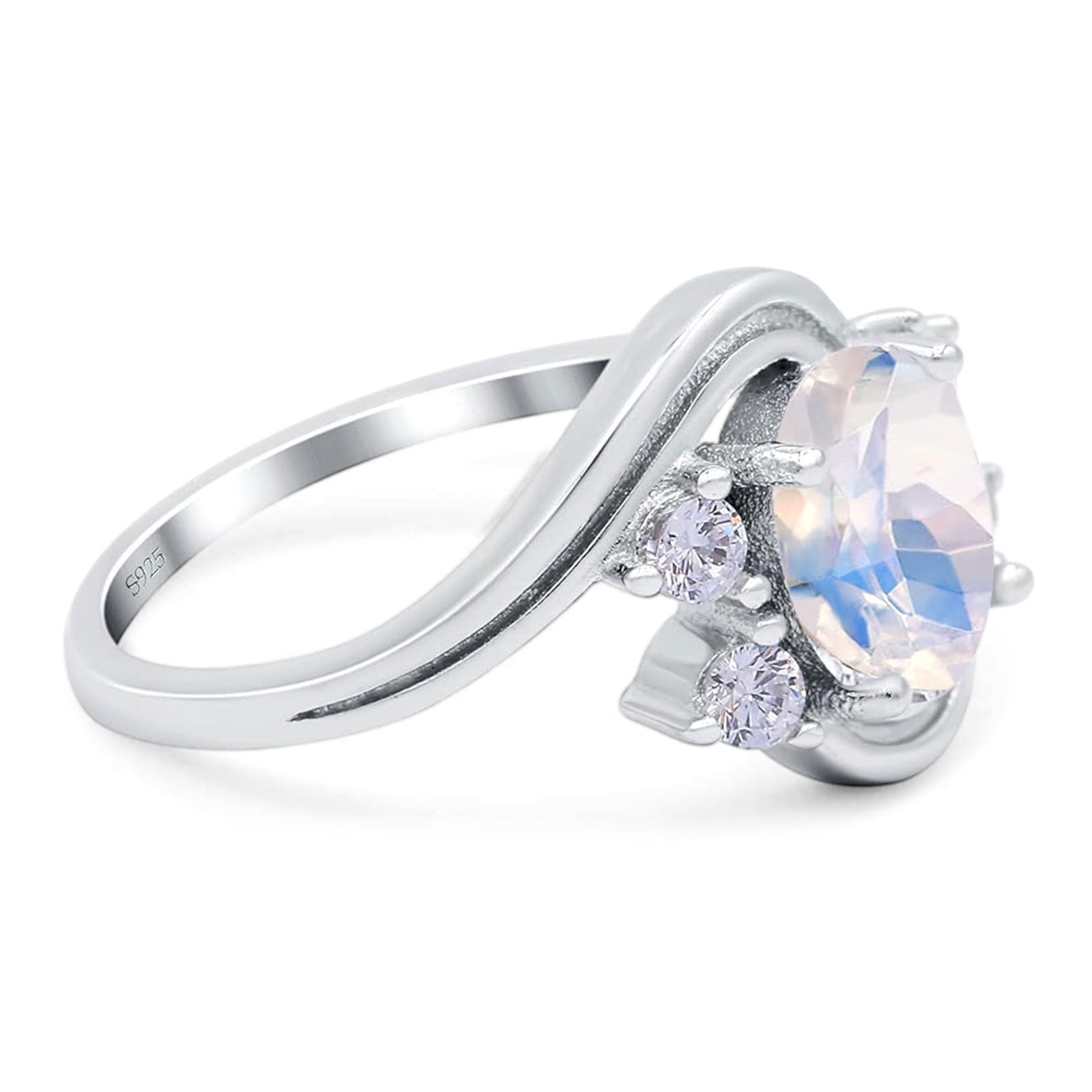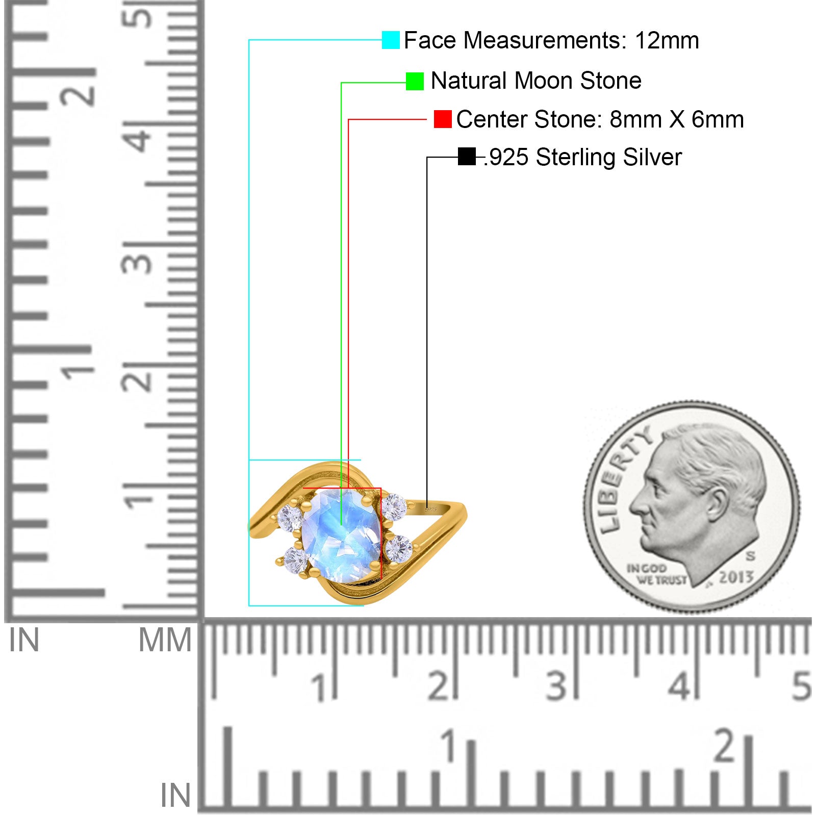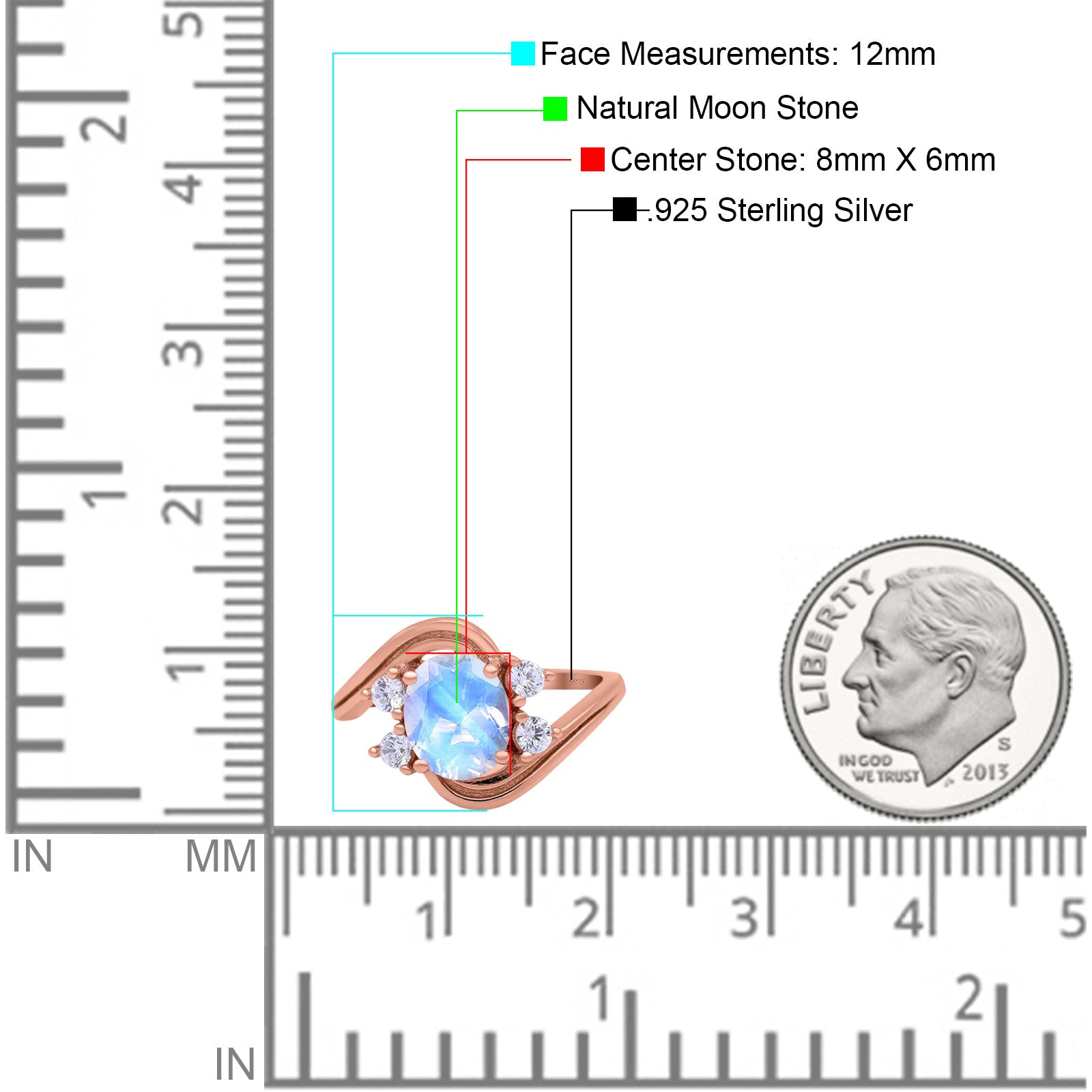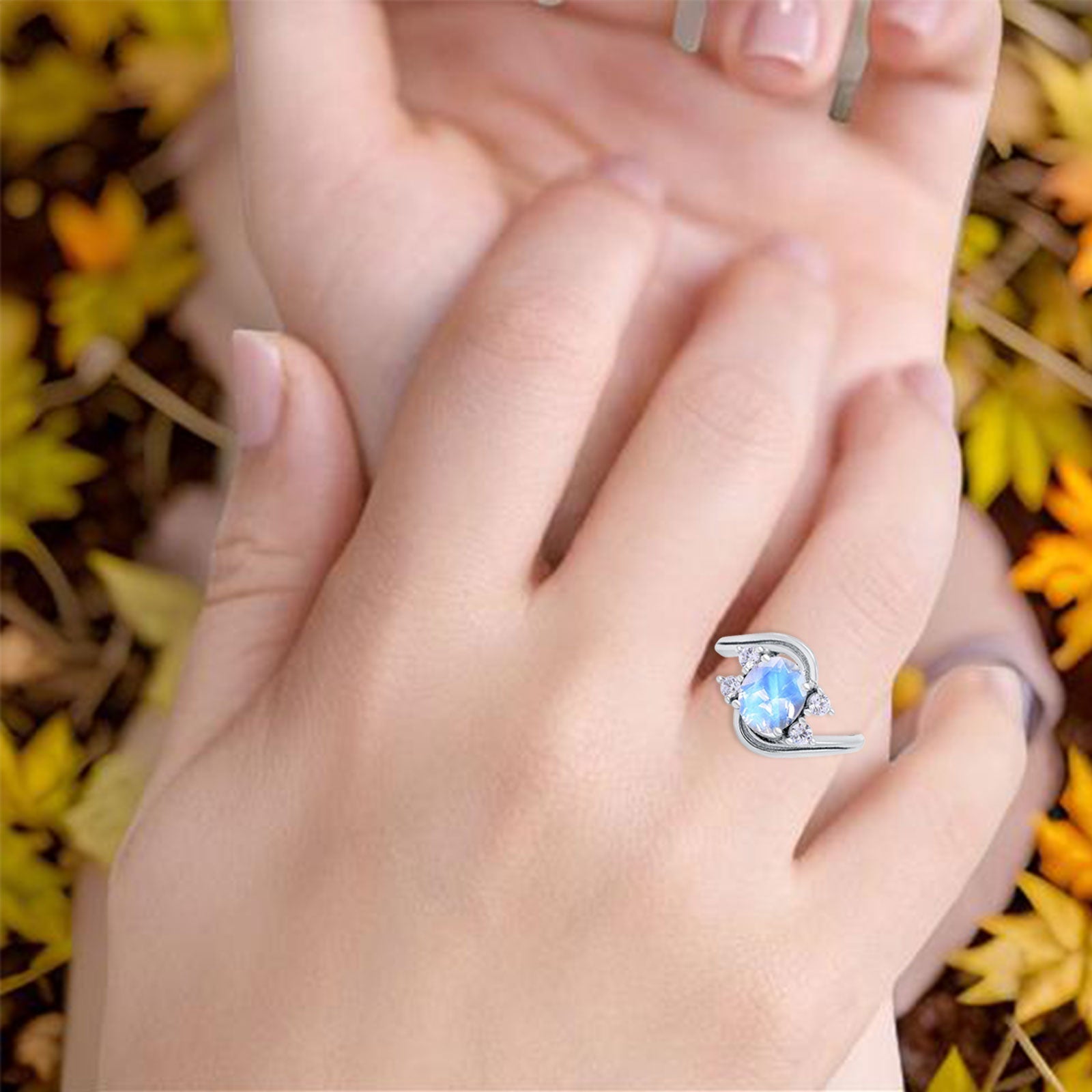 Oval Natural Moonstone Art Deco Ring 925 Sterling Silver