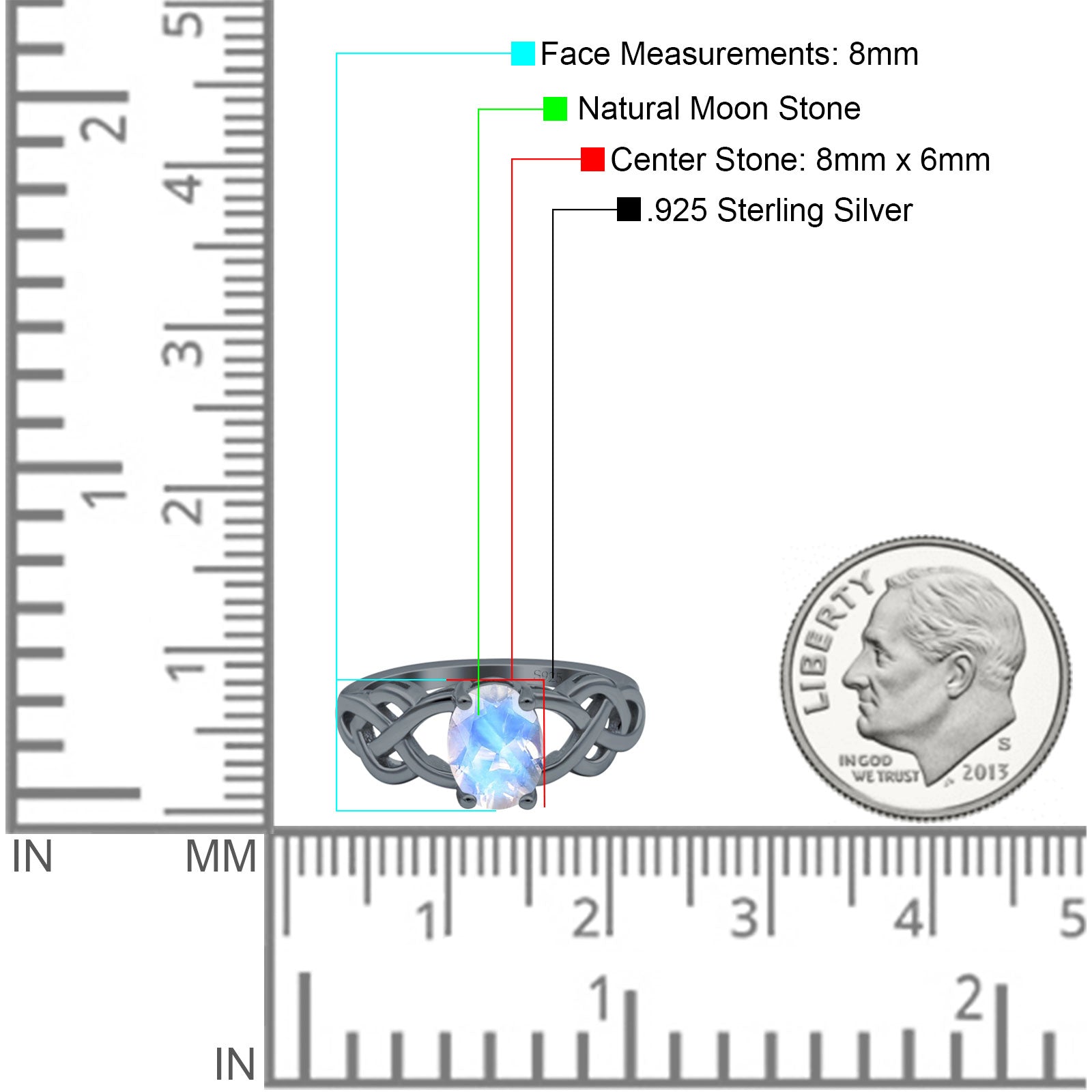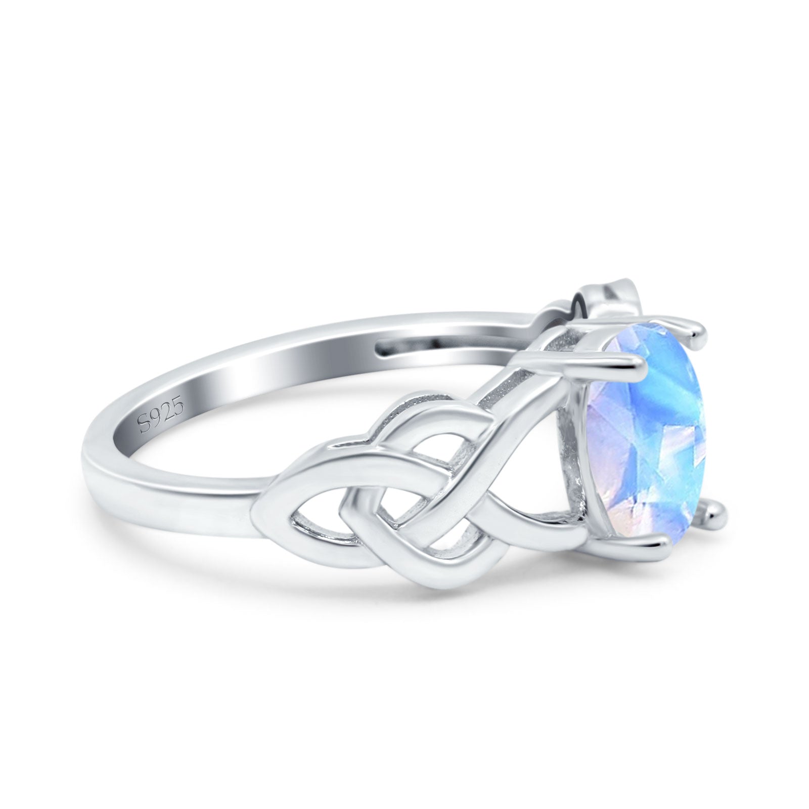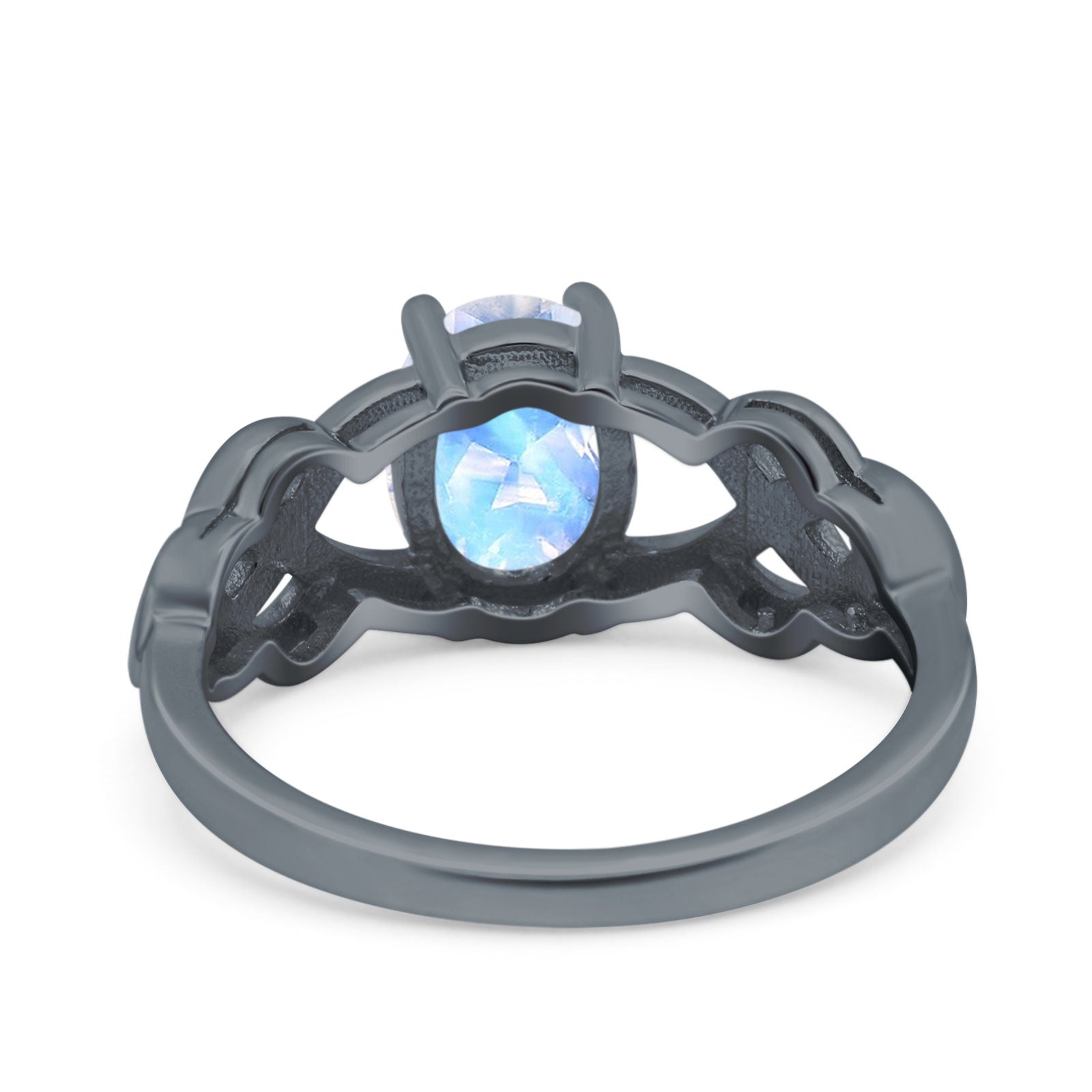 Oval Natural Moonstone Solitaire Trinity Ring 925 Sterling Silver