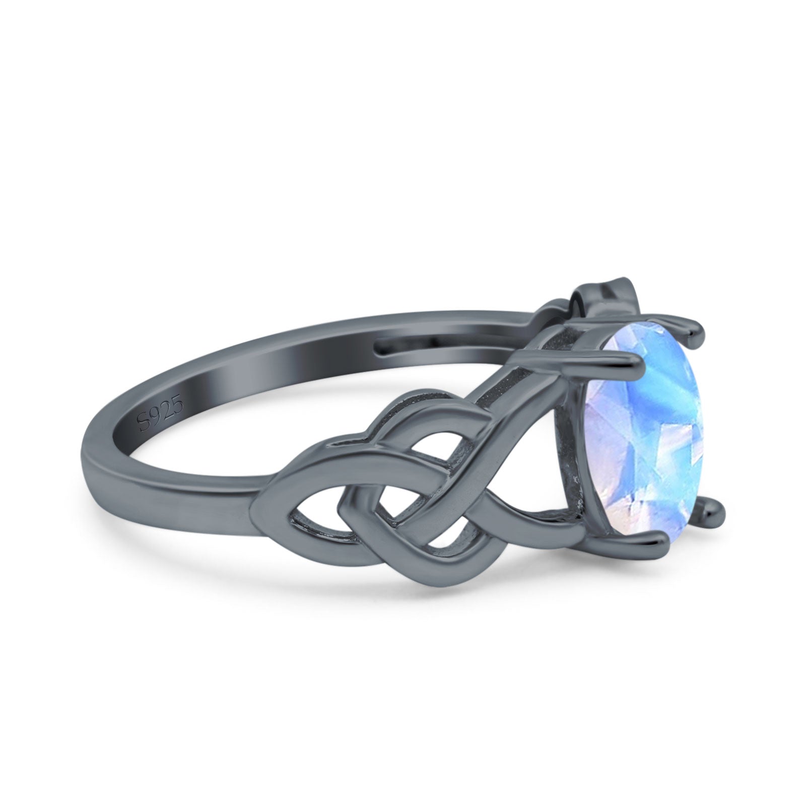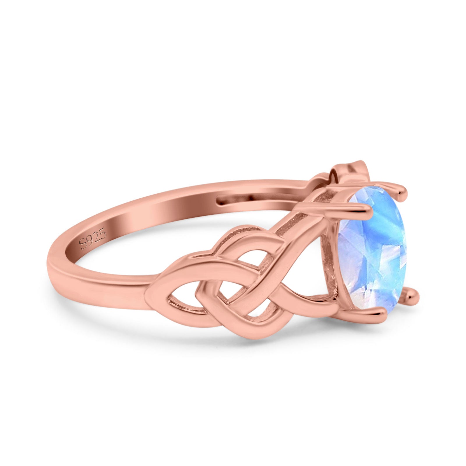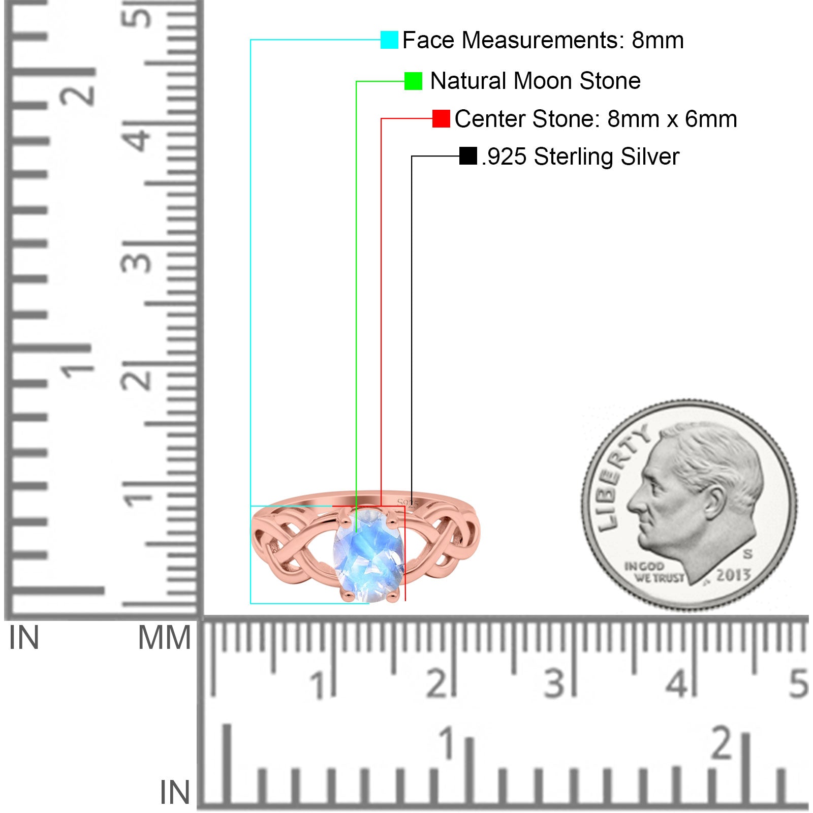 Oval Natural Moonstone Solitaire Trinity Ring 925 Sterling Silver