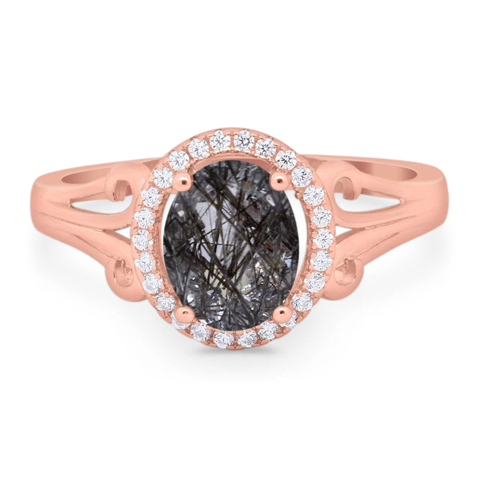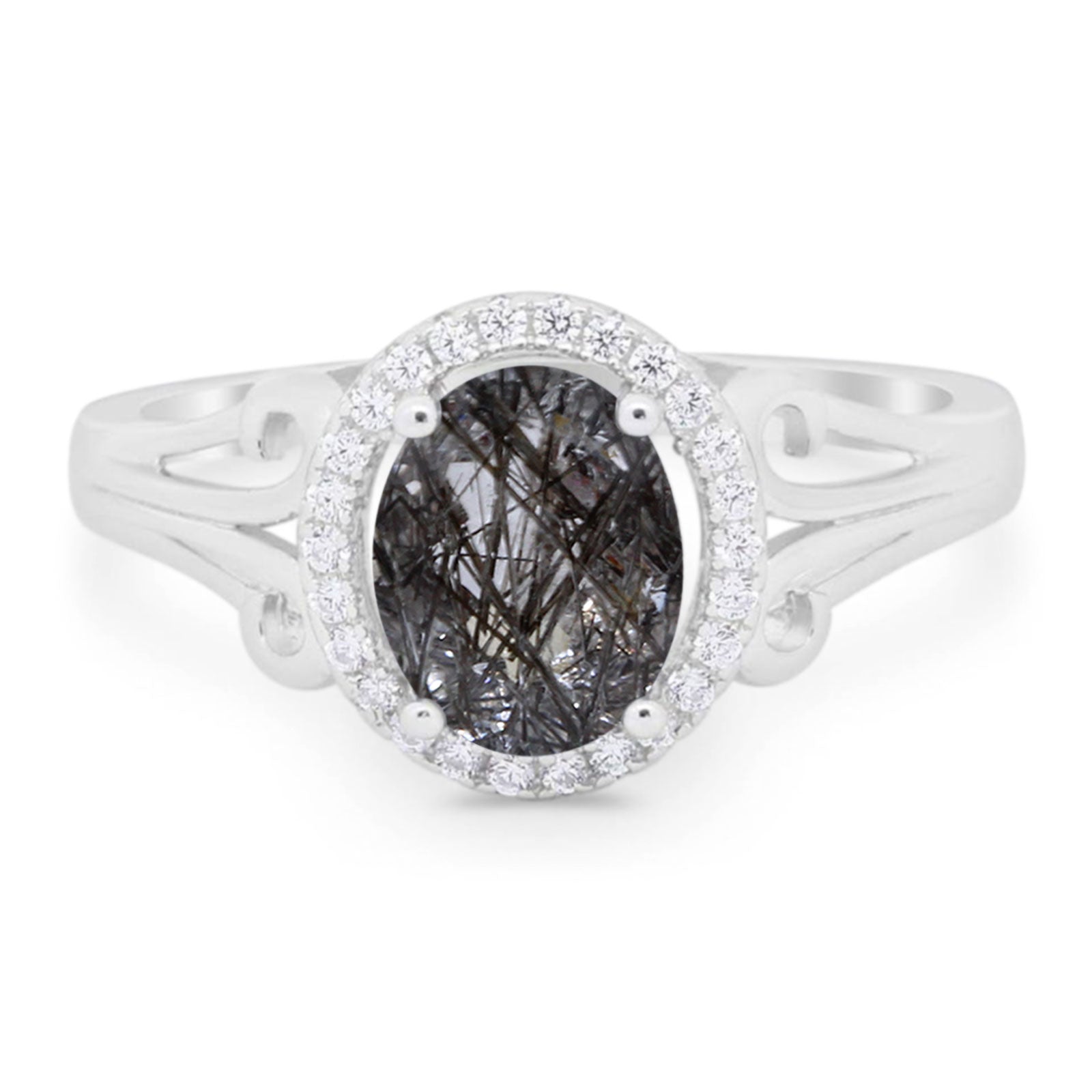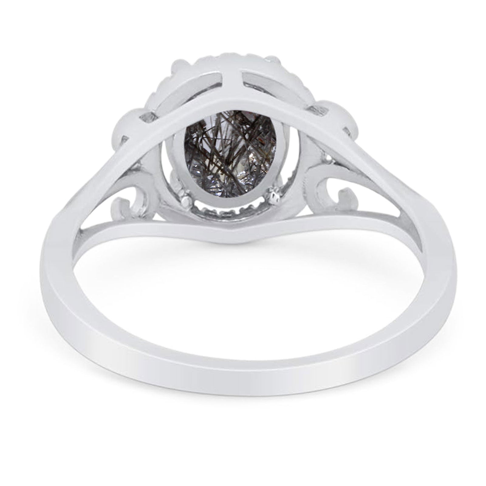 Oval Natural Rutilated Quartz Filigree Vintage Style Ring 925 Sterling Silver