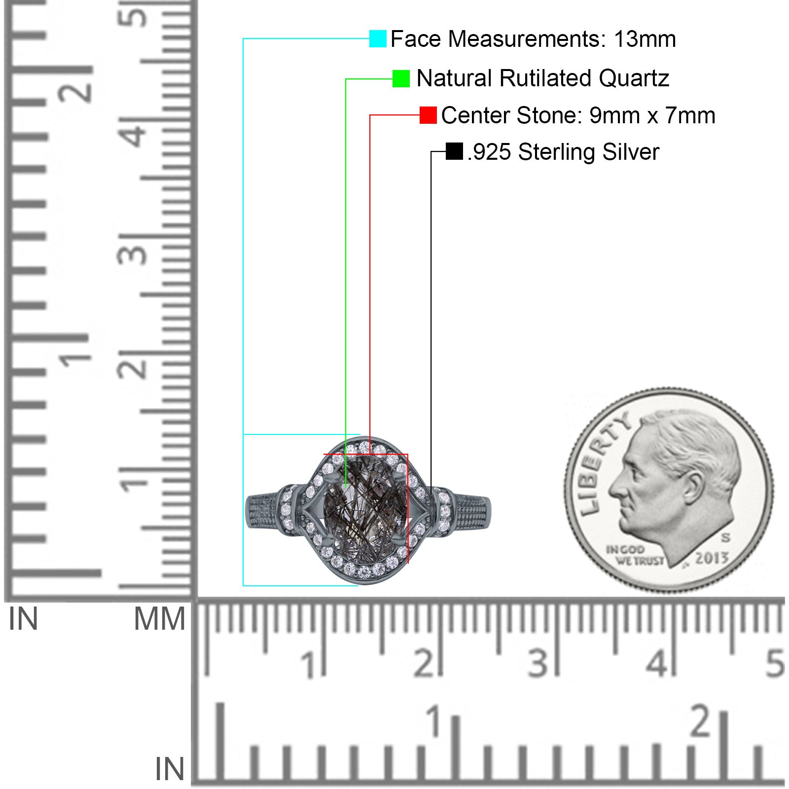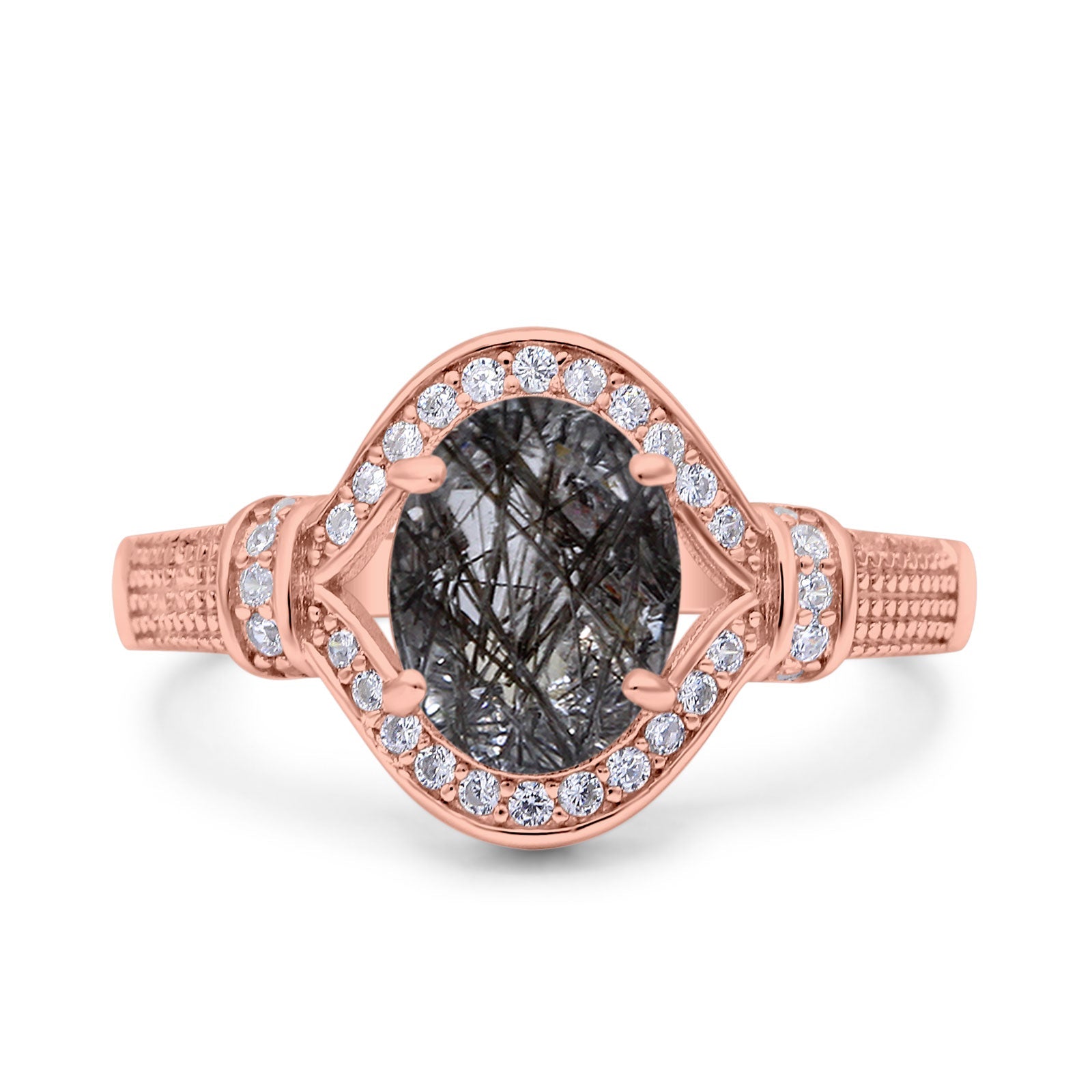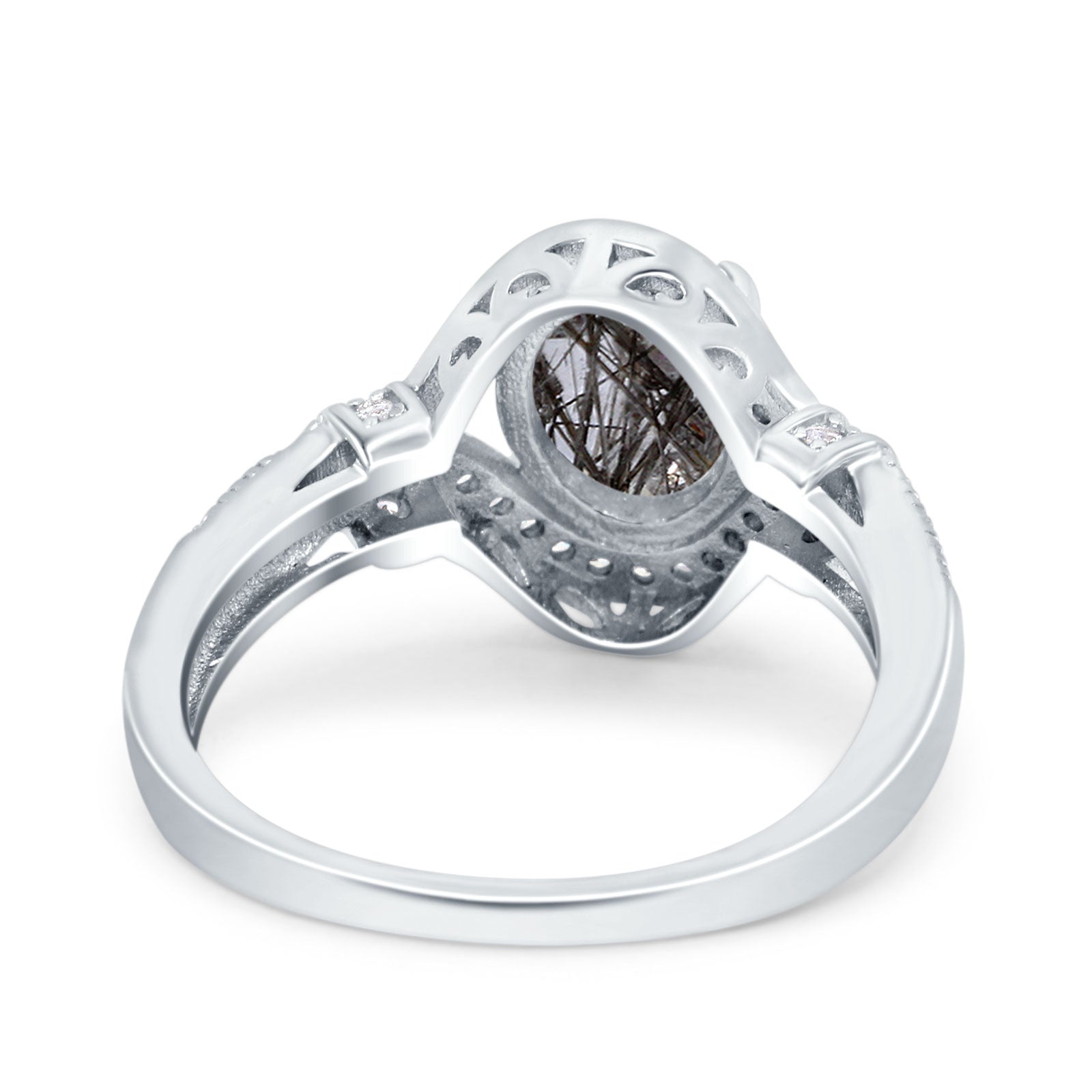 Oval Natural Rutilated Quartz Halo Beaded Ring 925 Sterling Silver