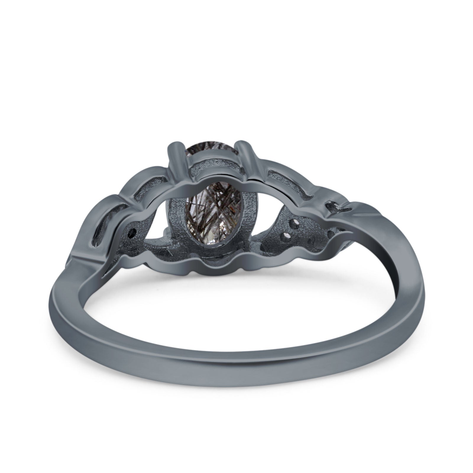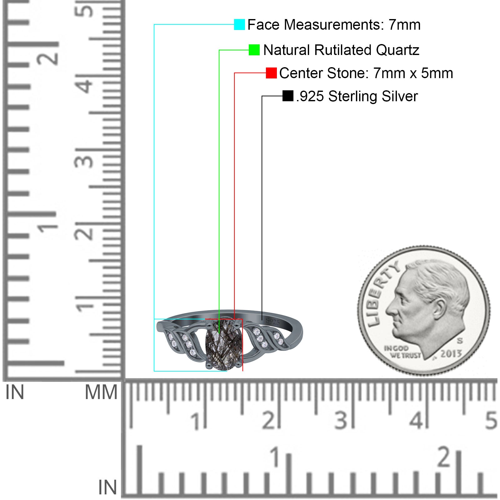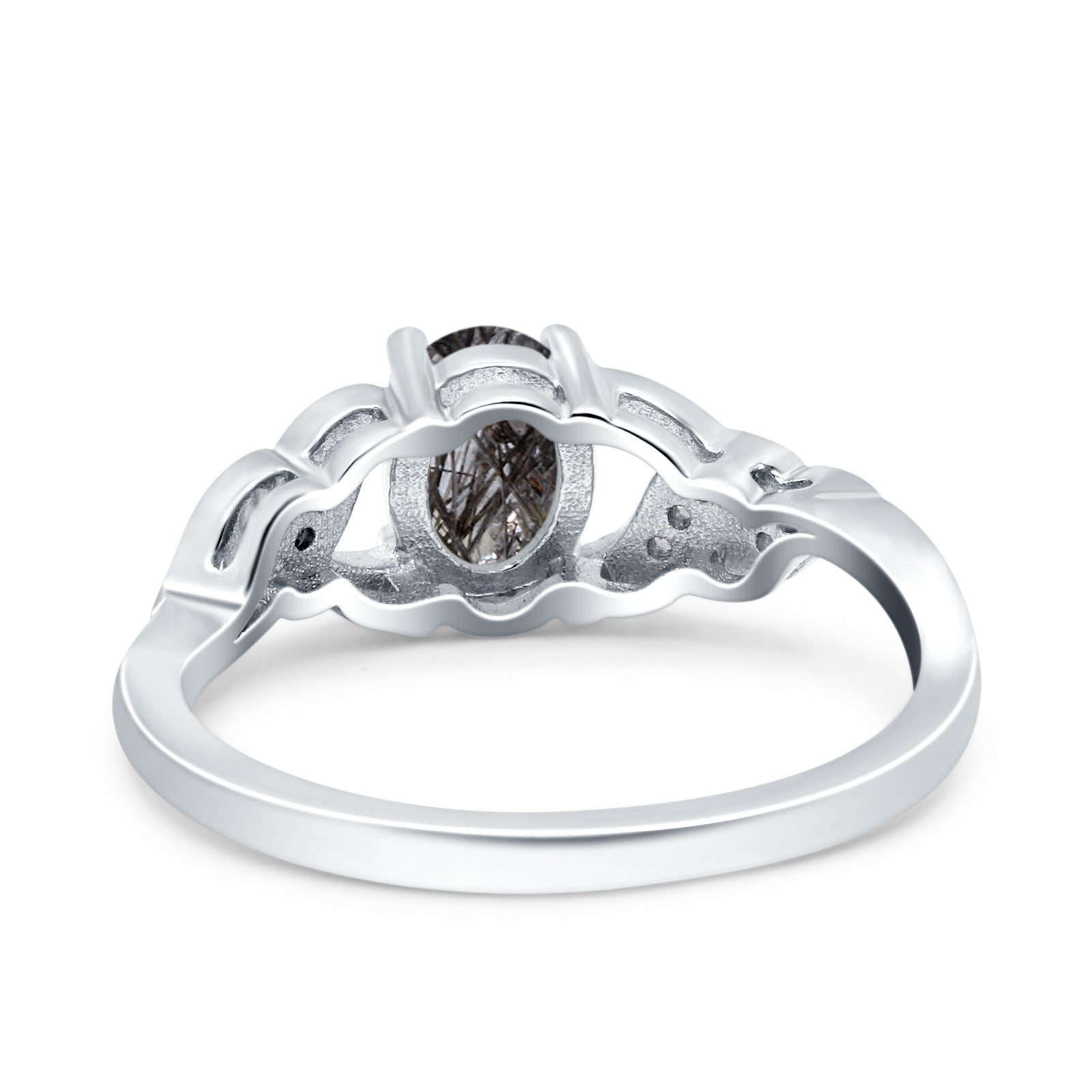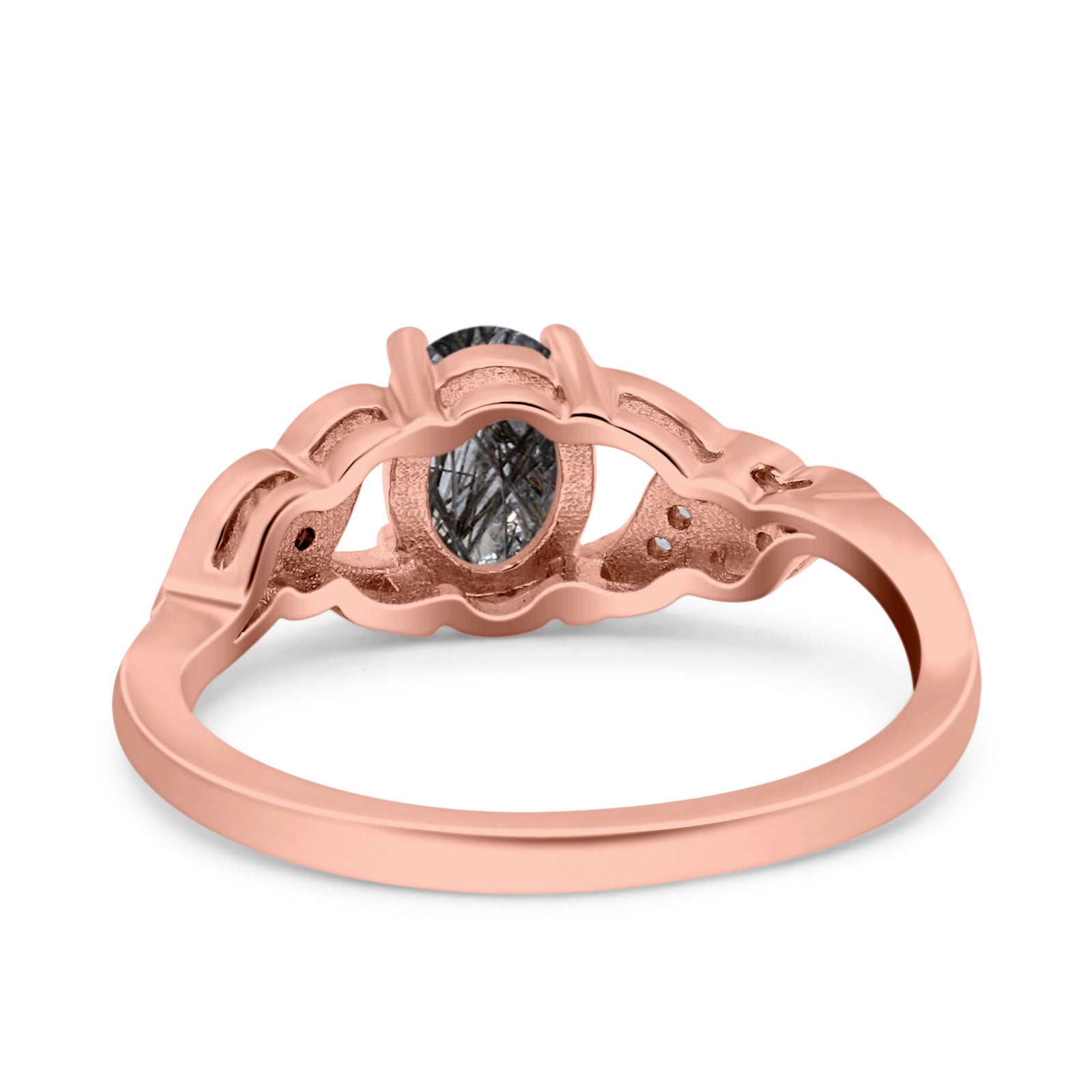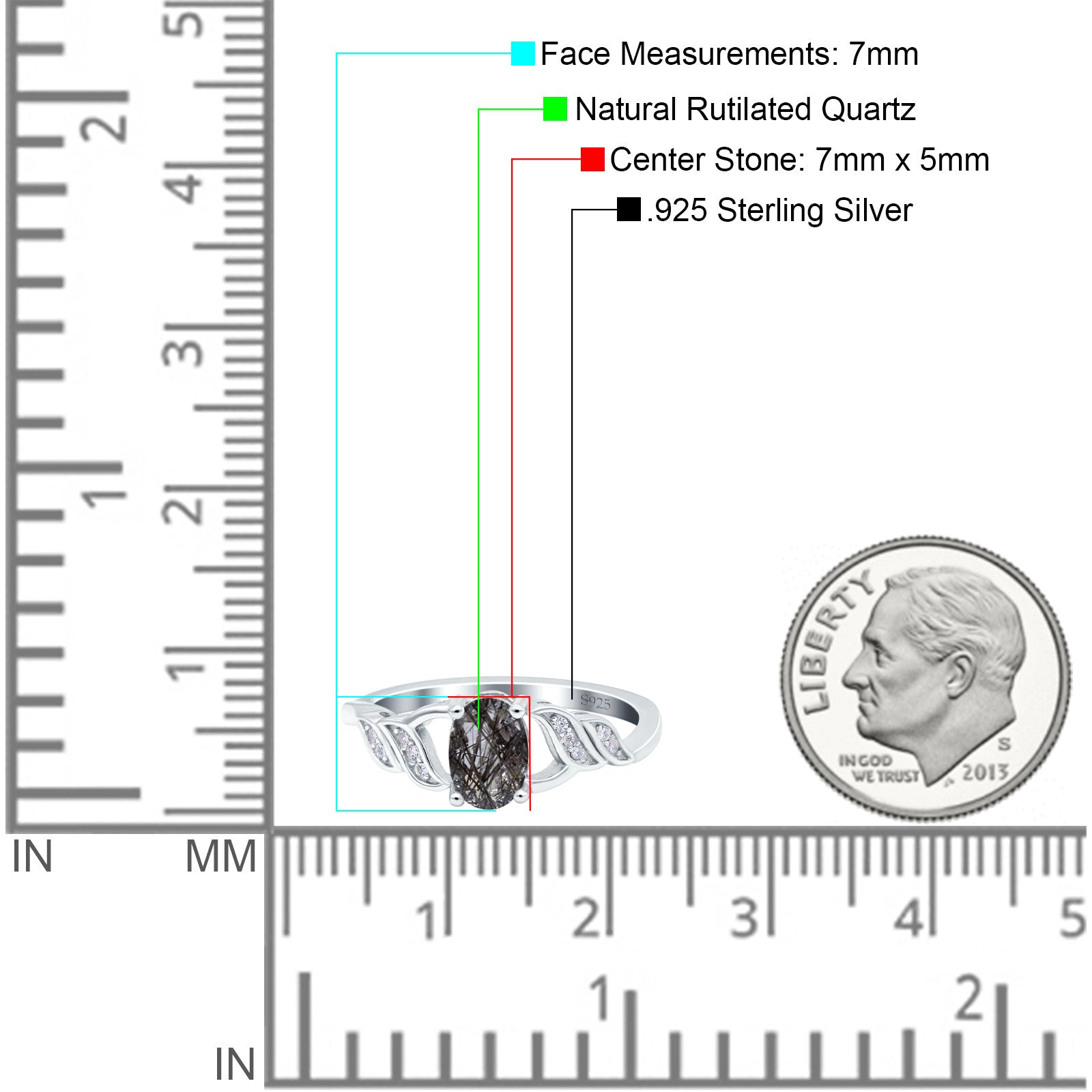 Oval Natural Rutilated Quartz Leaf Split Shank Ring 925 Sterling Silver