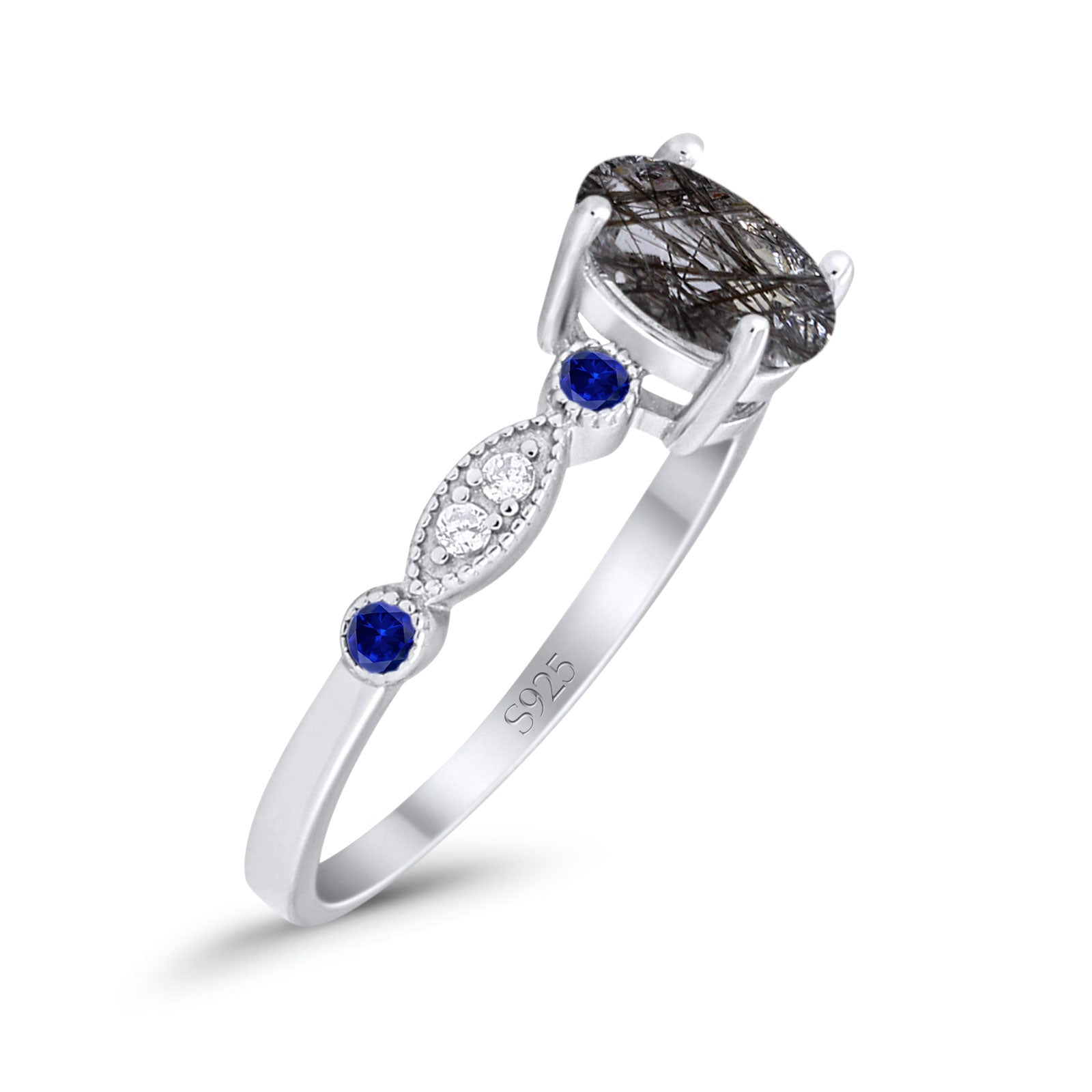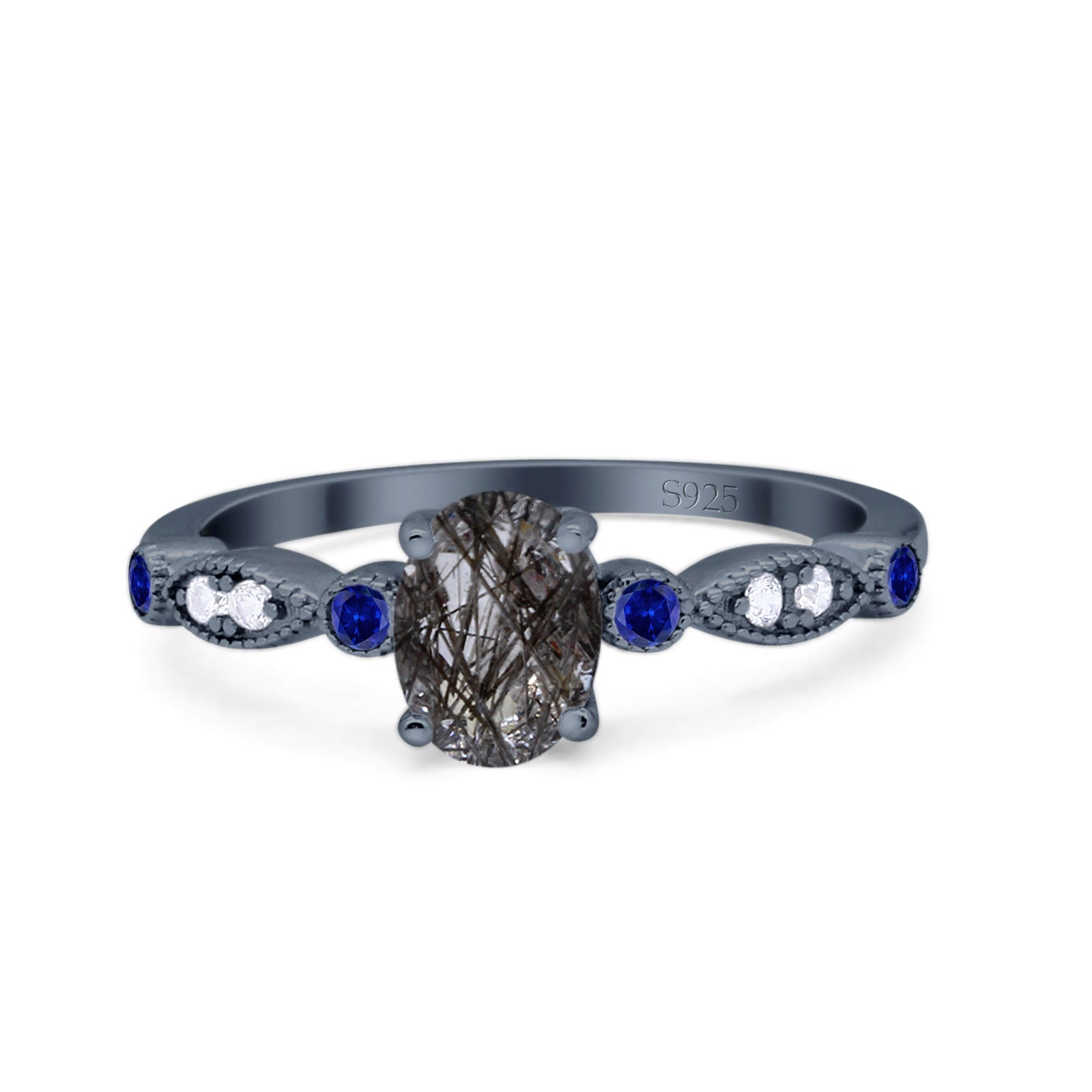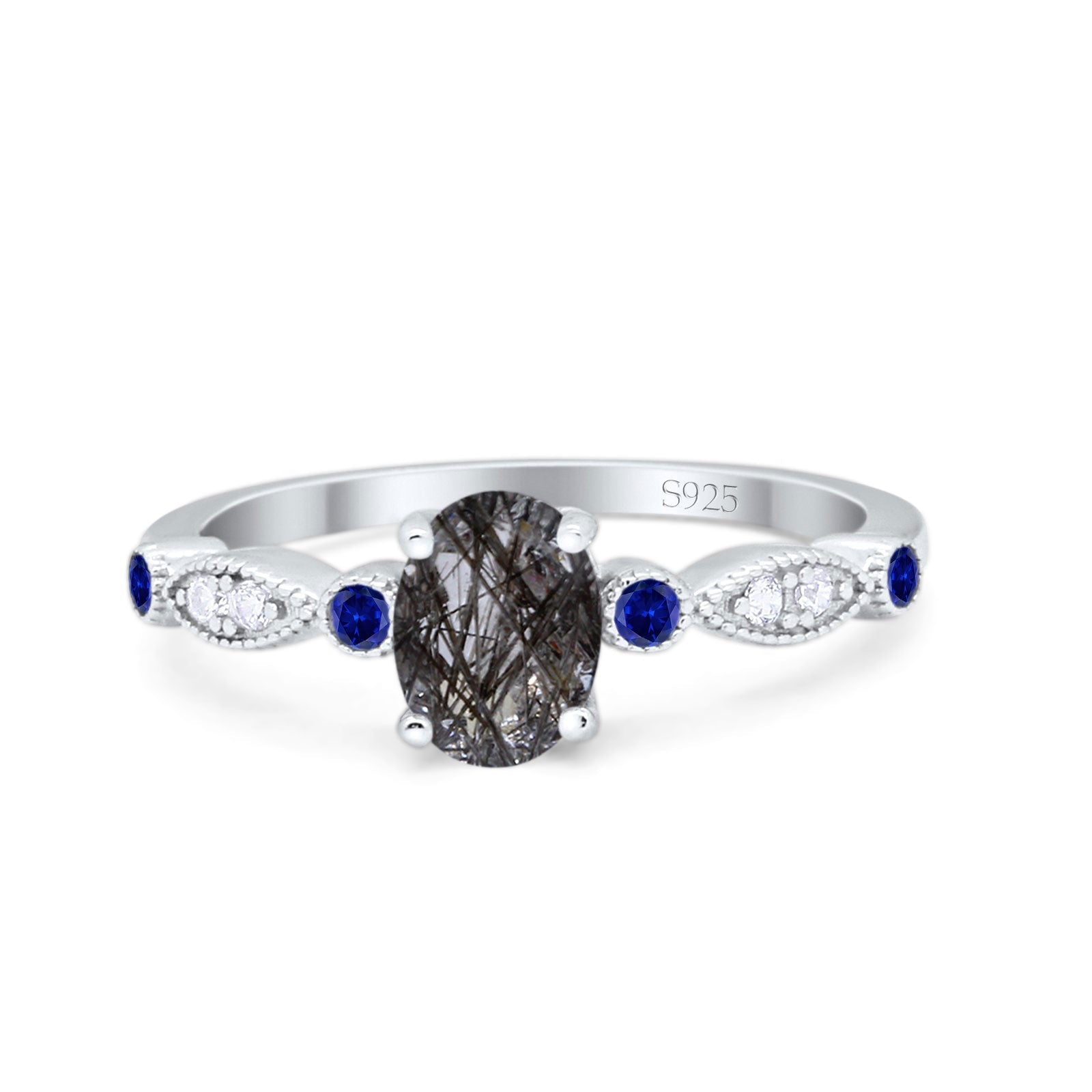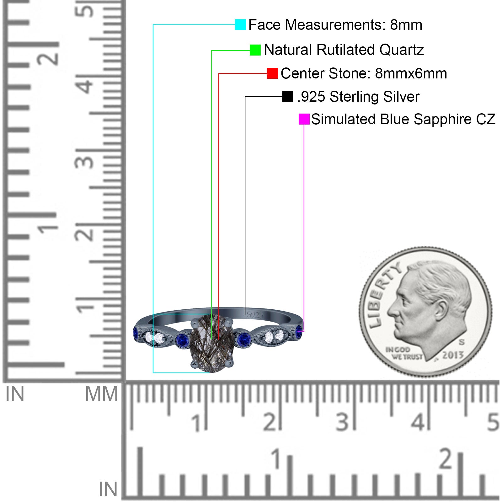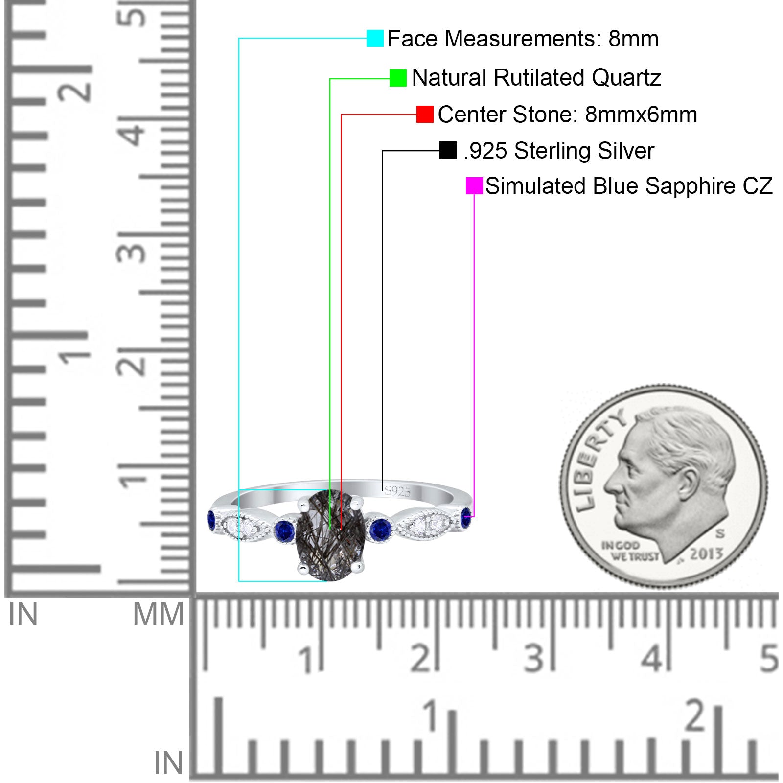 Oval Natural Rutilated Quartz Marquise Vintage Style Ring 925 Sterling Silver