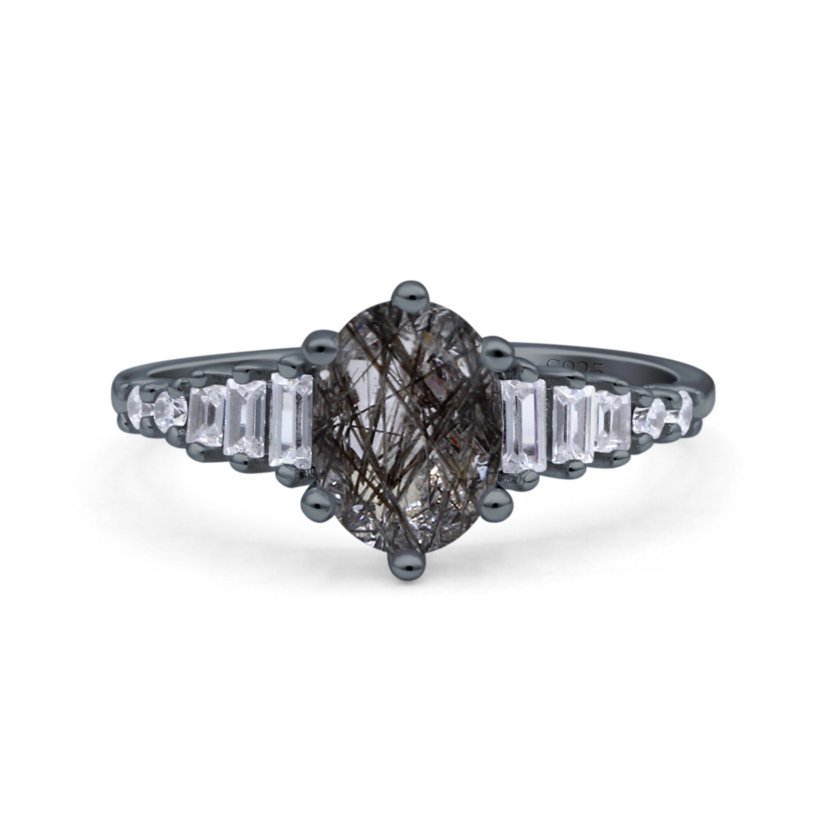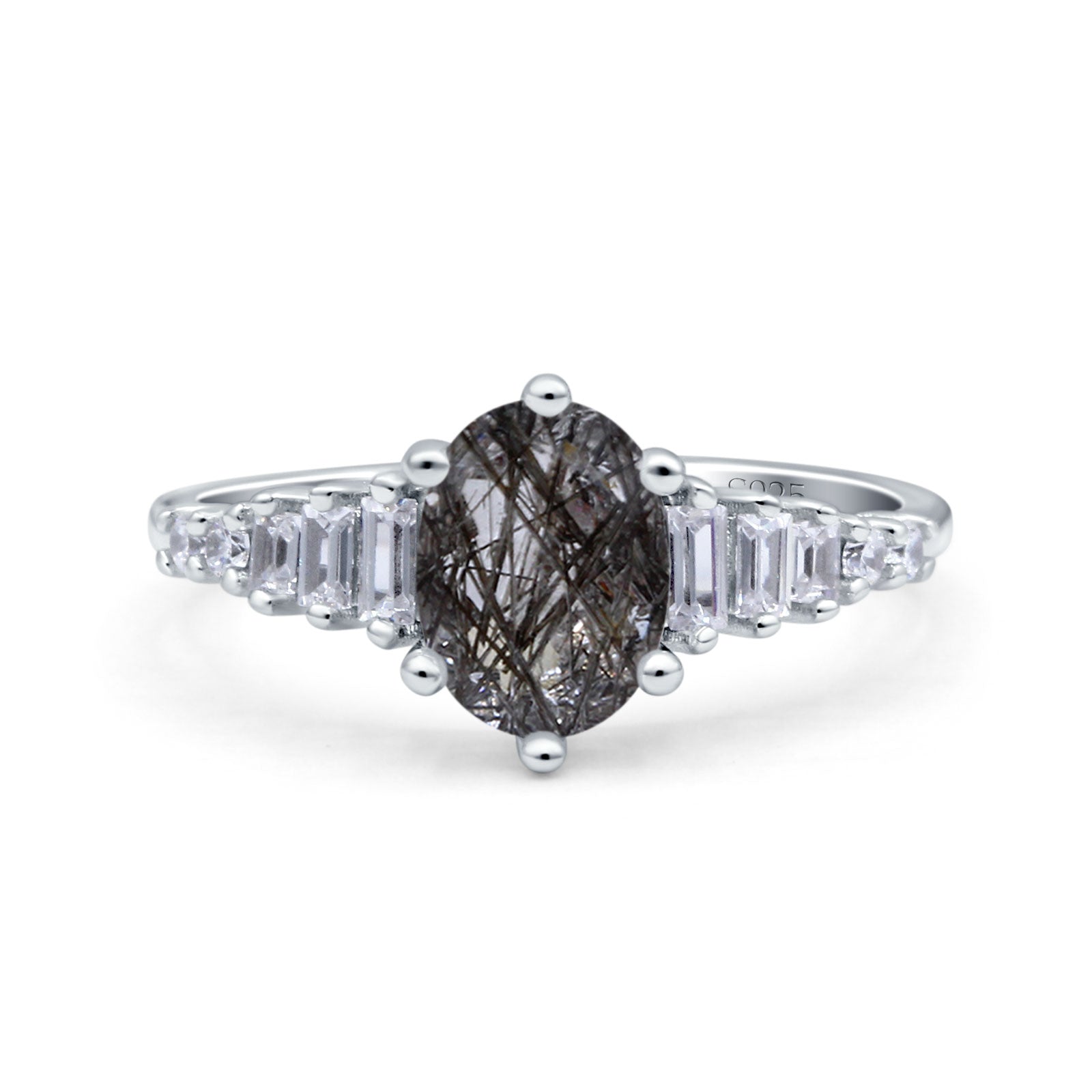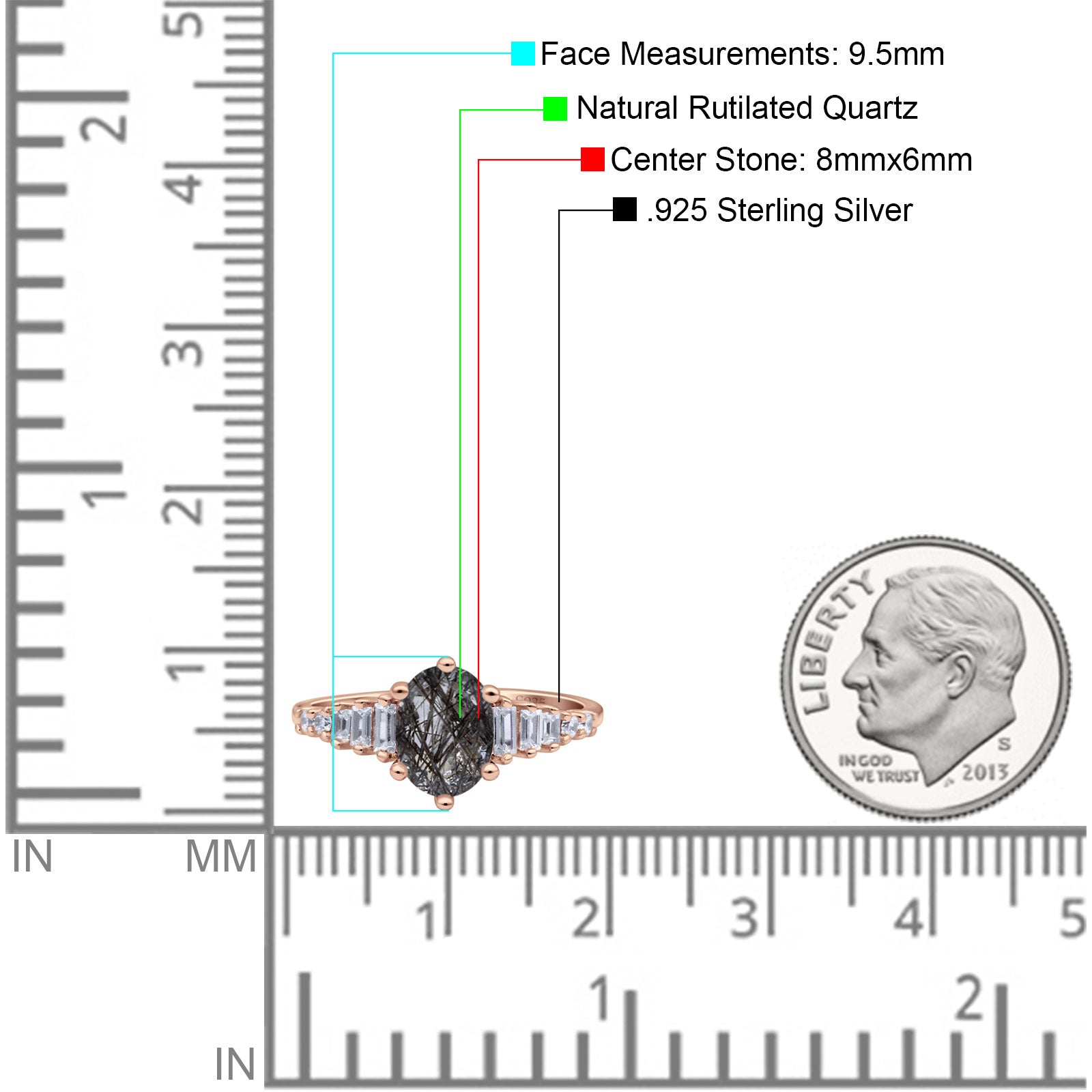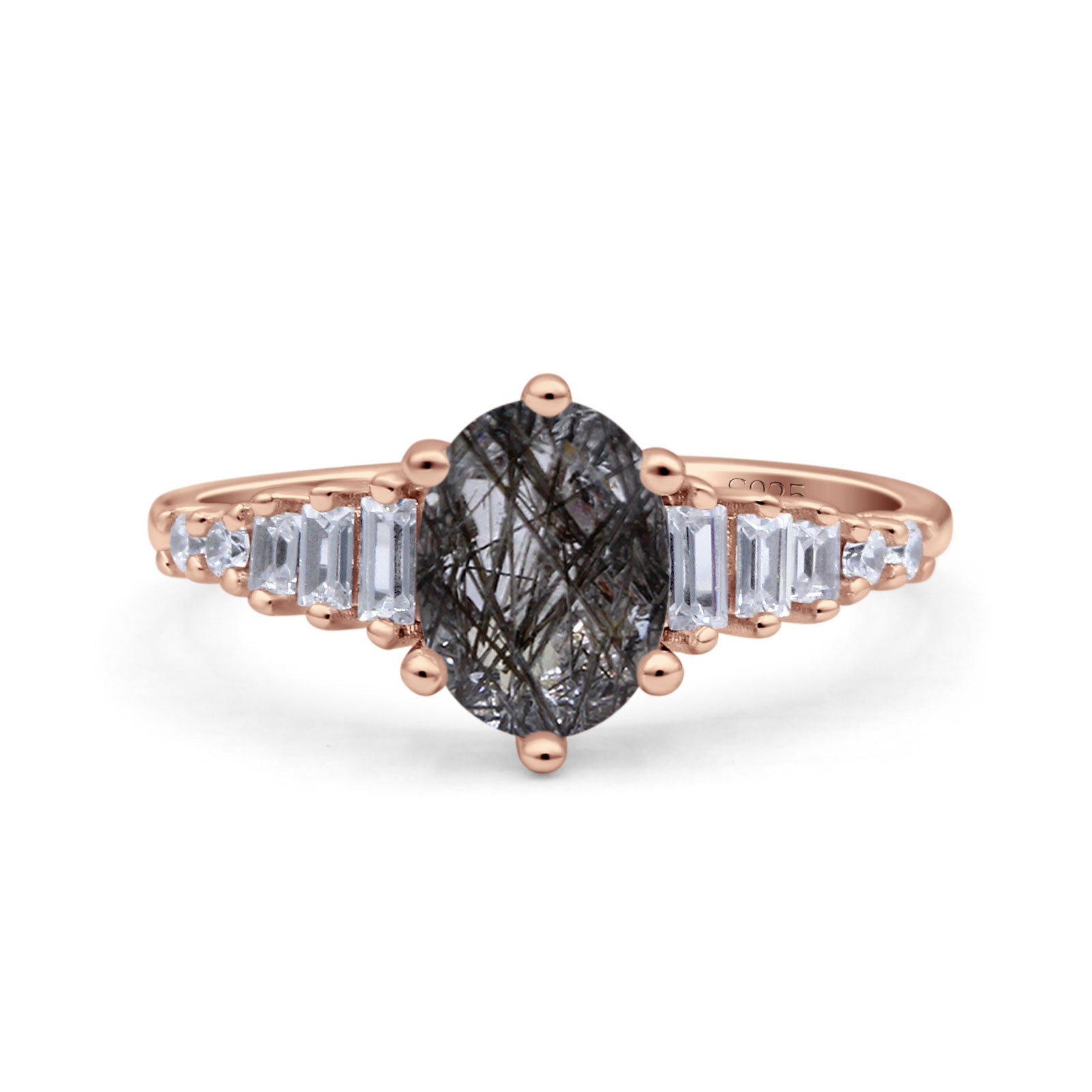 Oval Natural Rutilated Quartz Tapered Baguette Ring 925 Sterling Silver