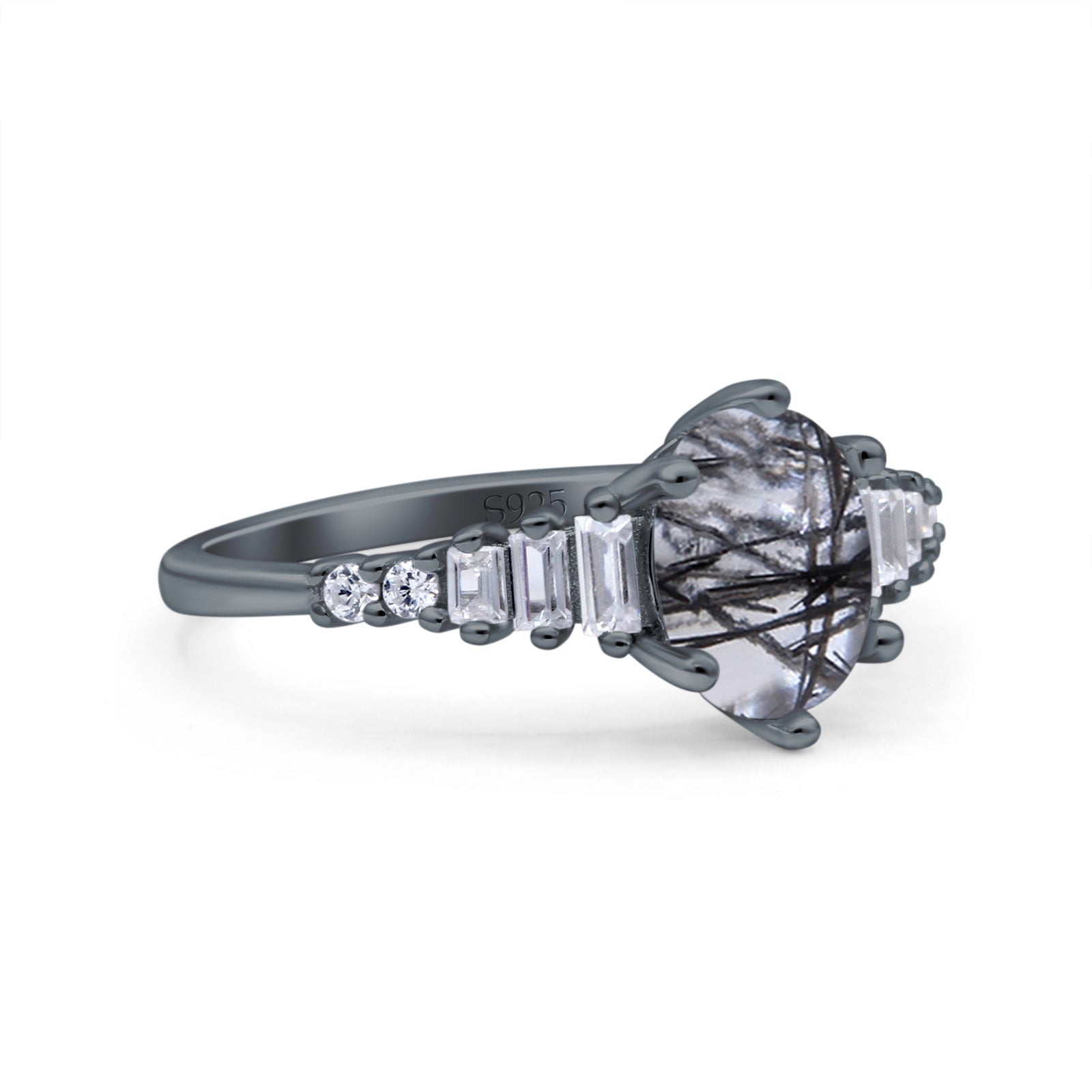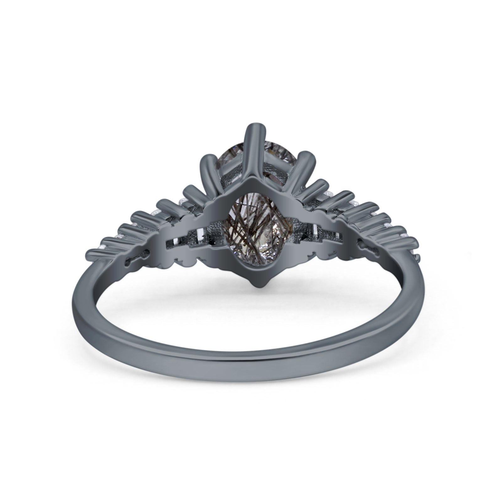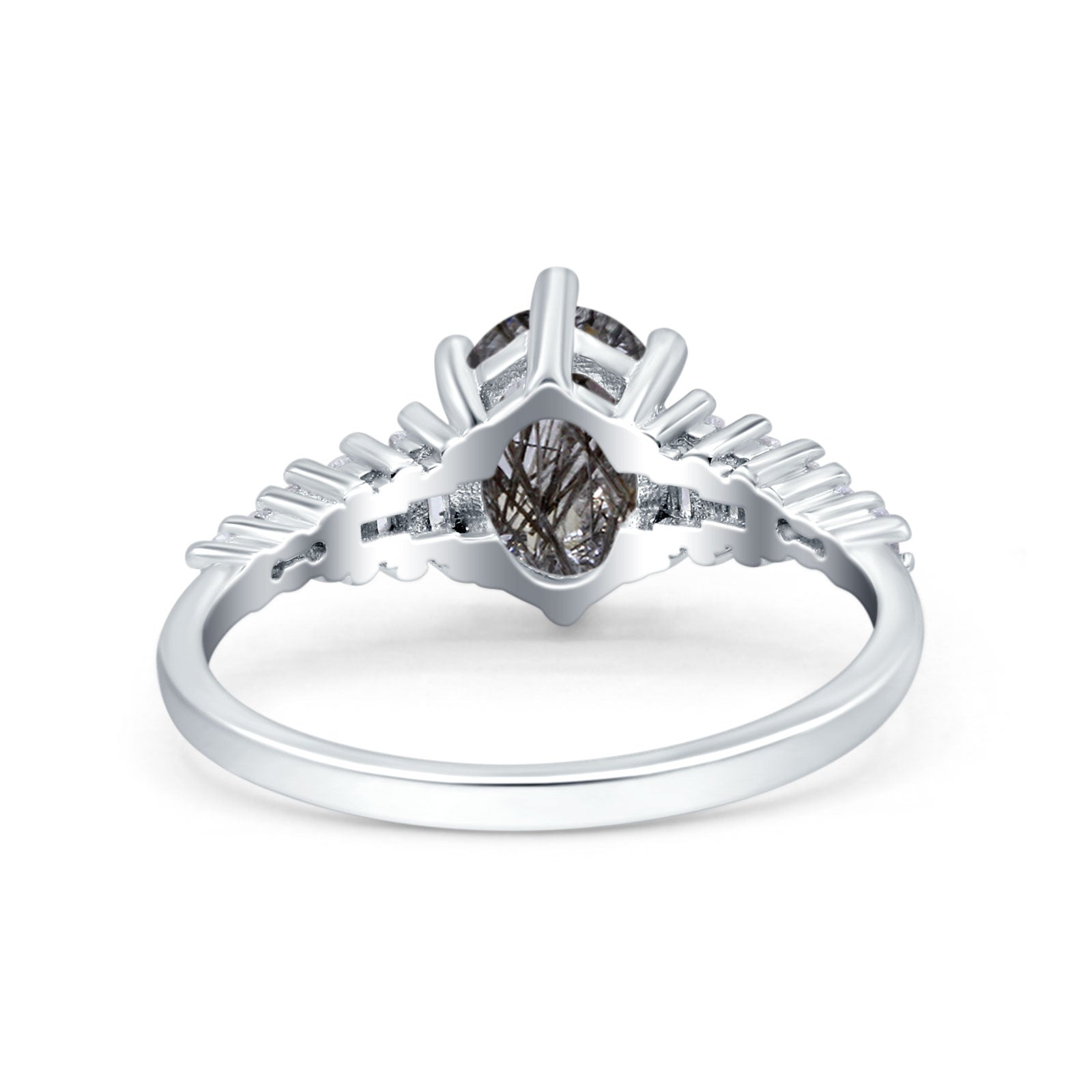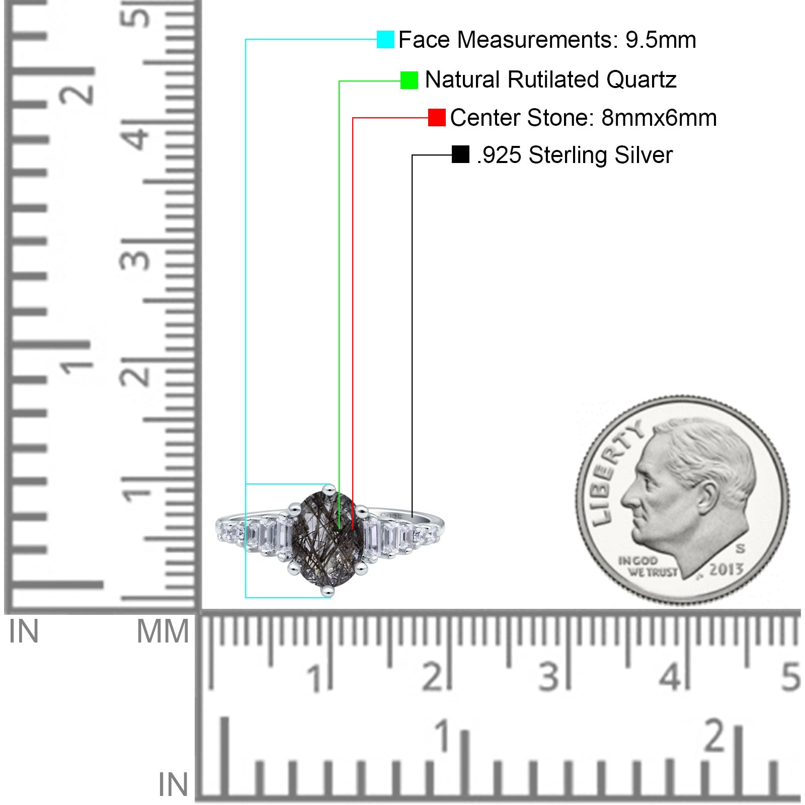 Oval Natural Rutilated Quartz Tapered Baguette Ring 925 Sterling Silver