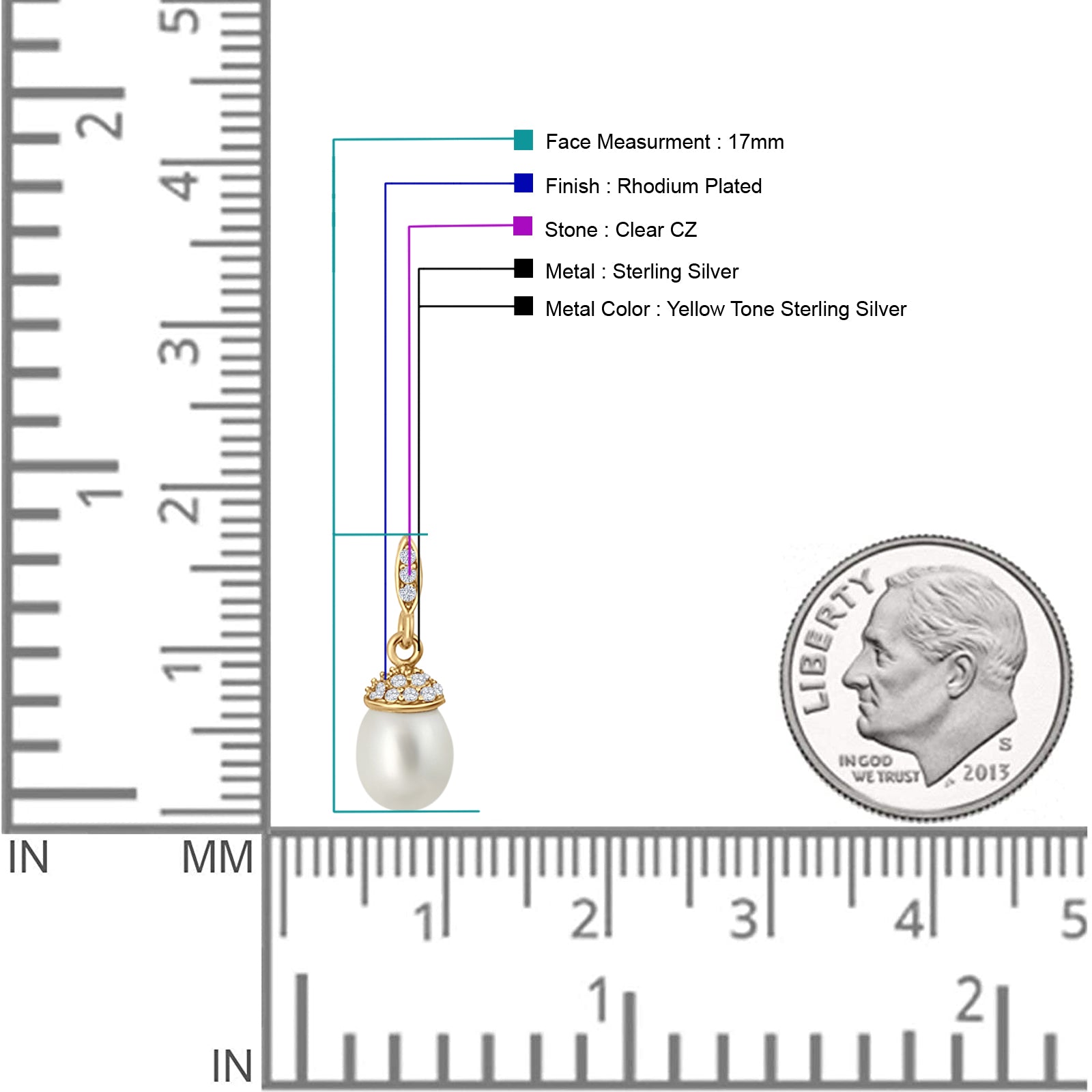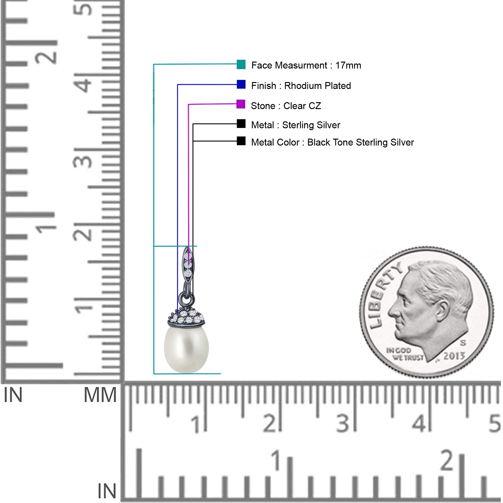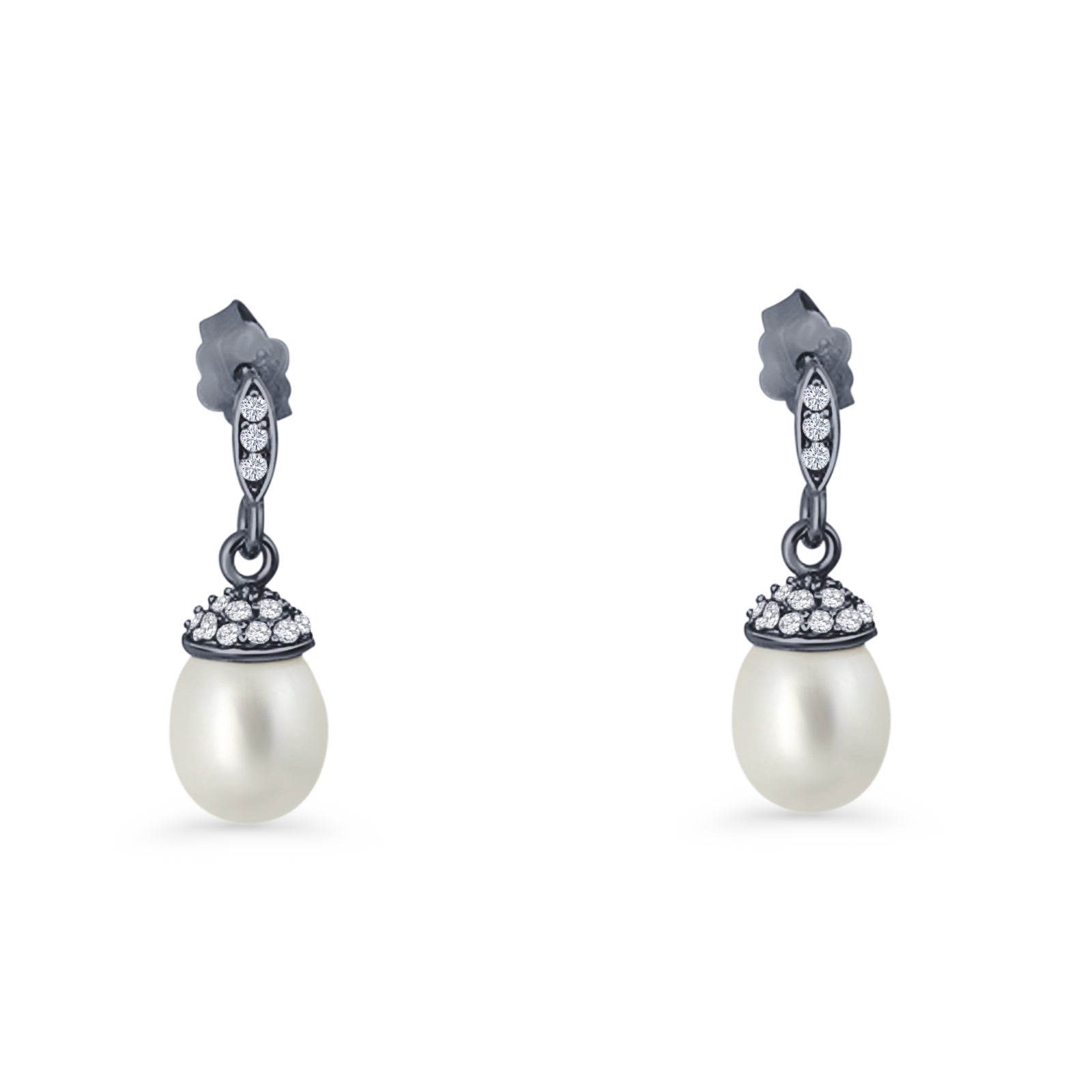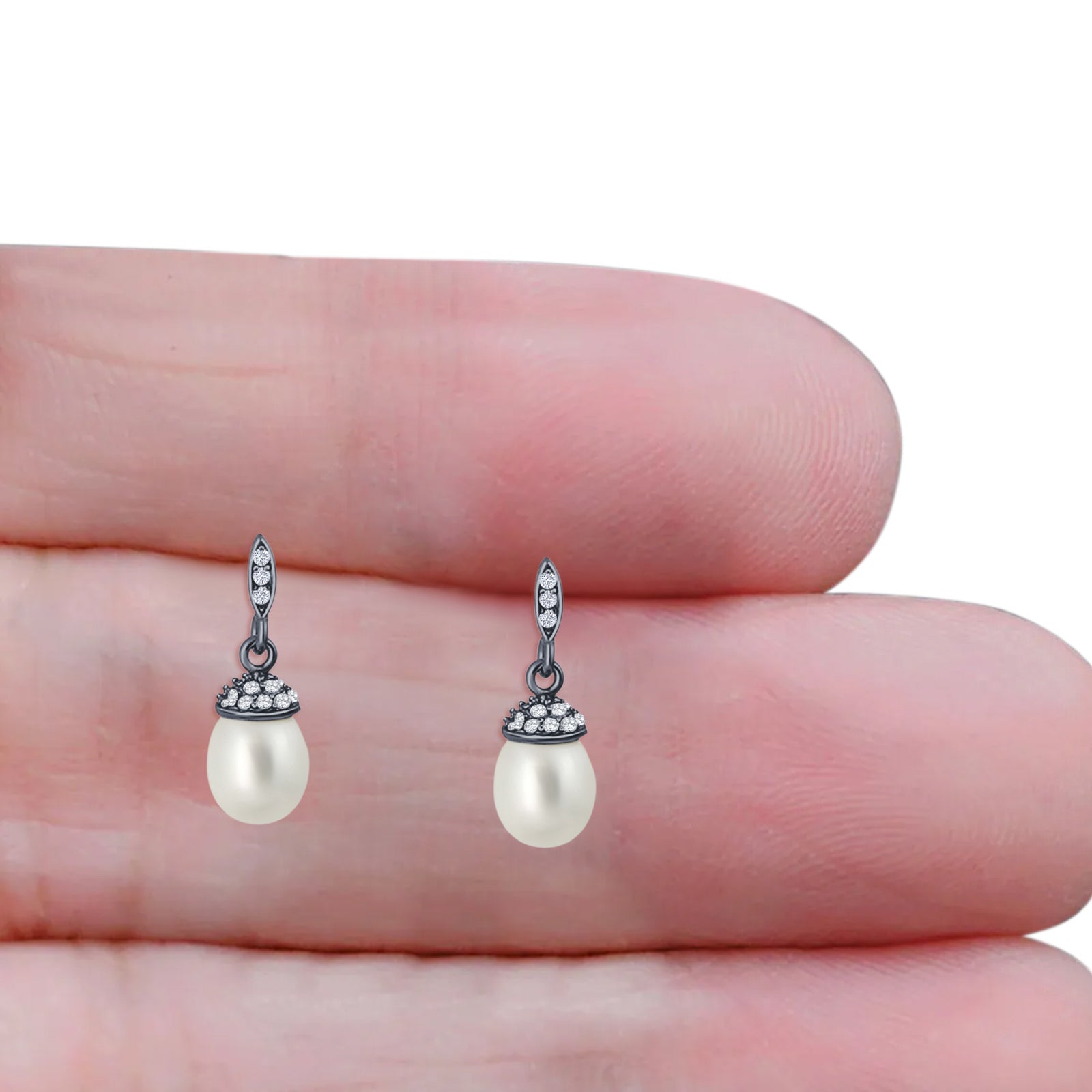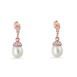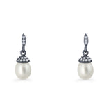 Oval Pearl 17mm Cluster Cubic Zirconia Charm Stud Earrings 925 Sterling Silver