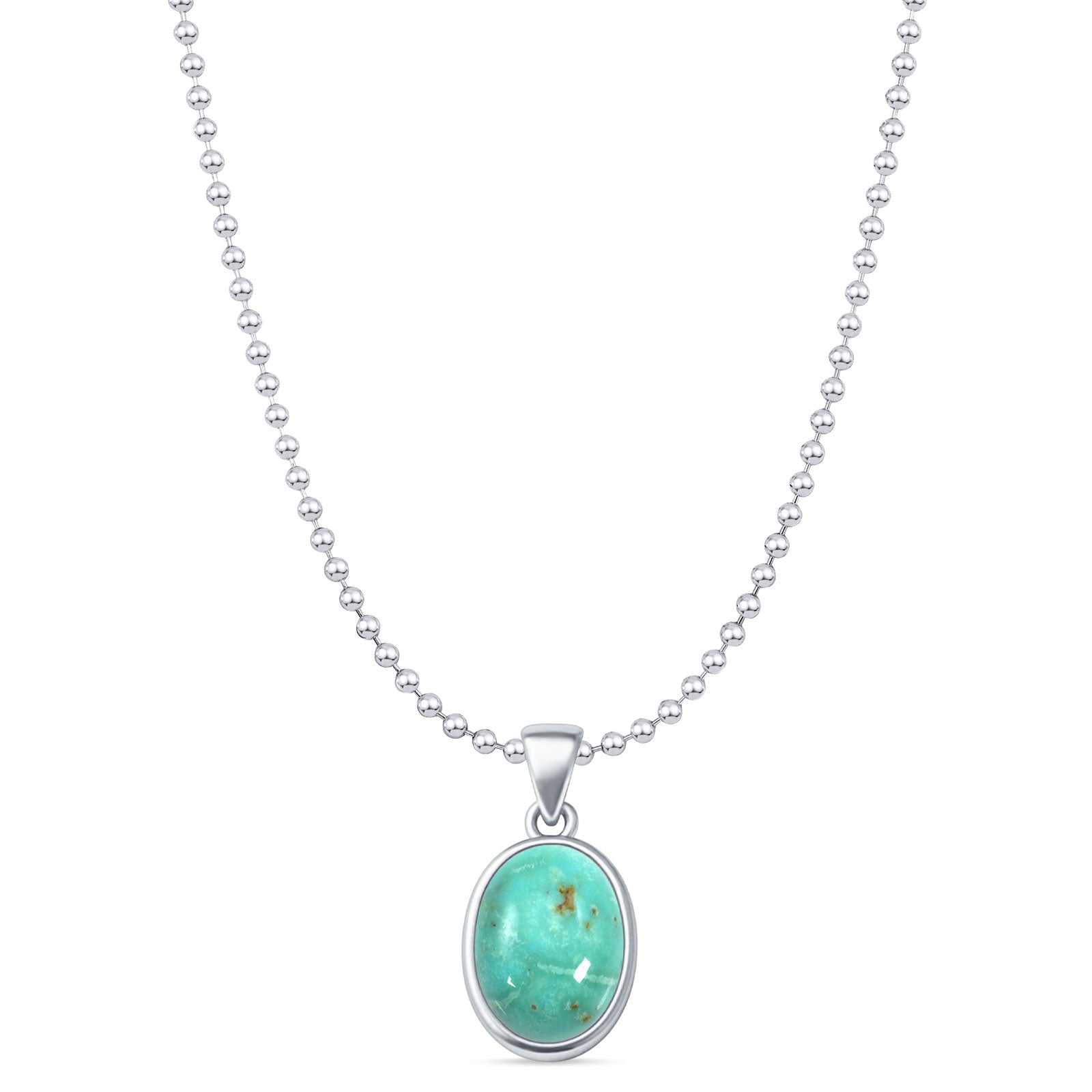 Oval Turquoise Solitaire Pendant Bead Chain Necklace 925 Sterling Silver