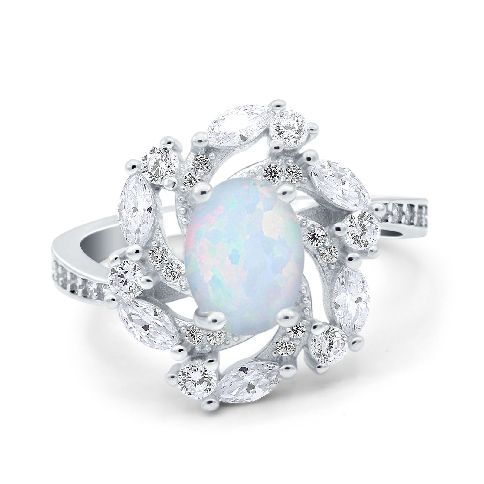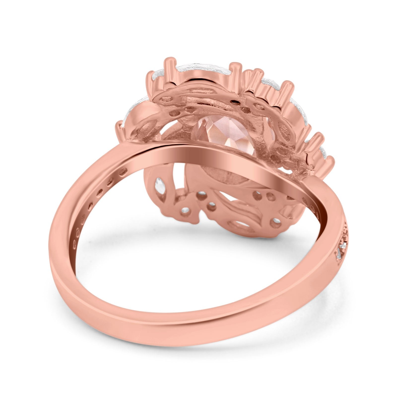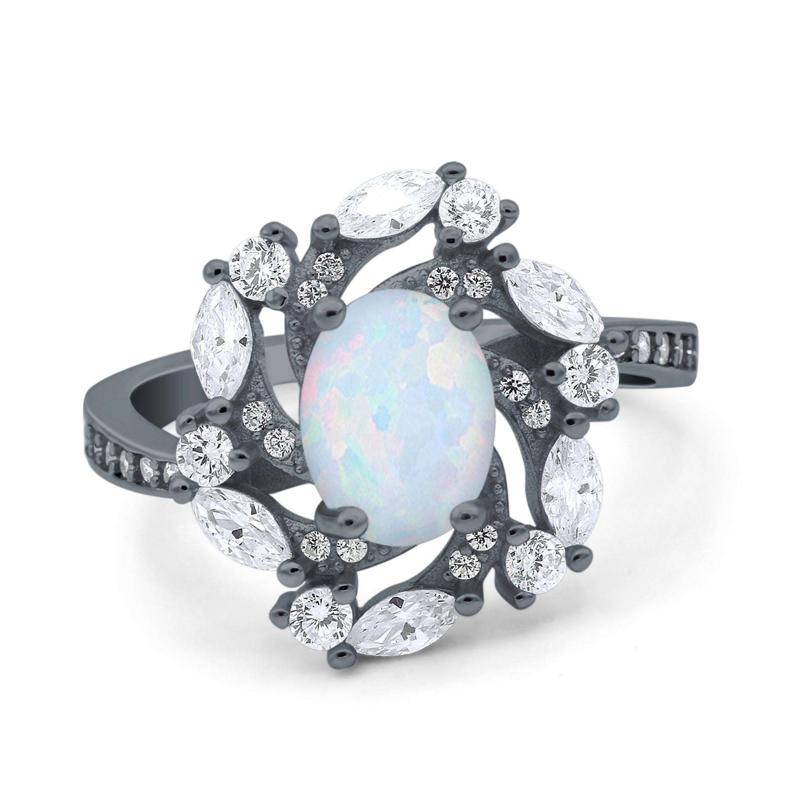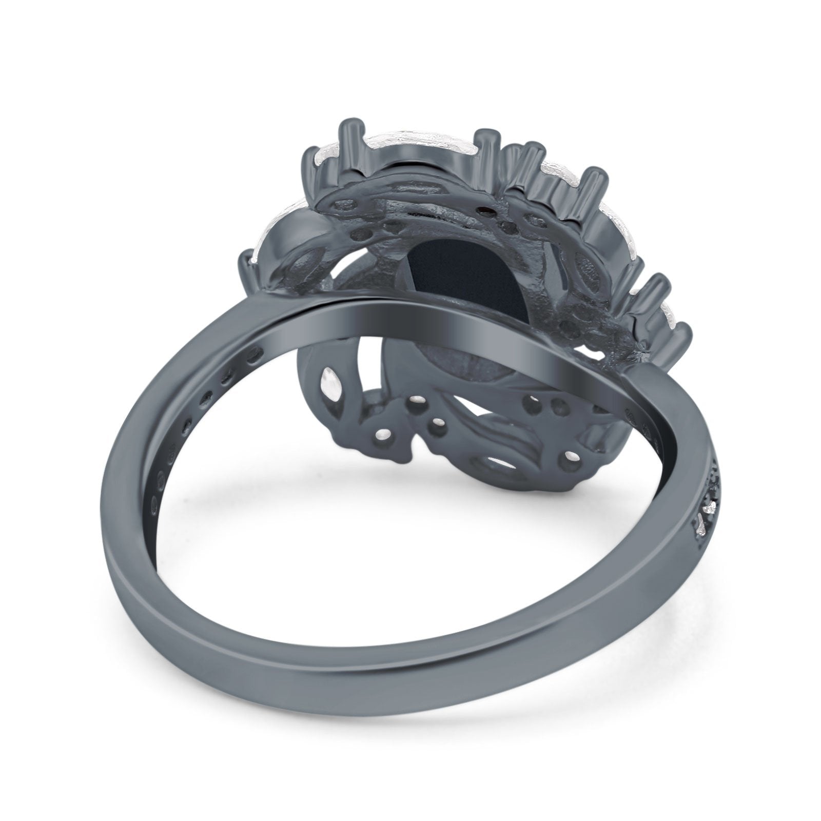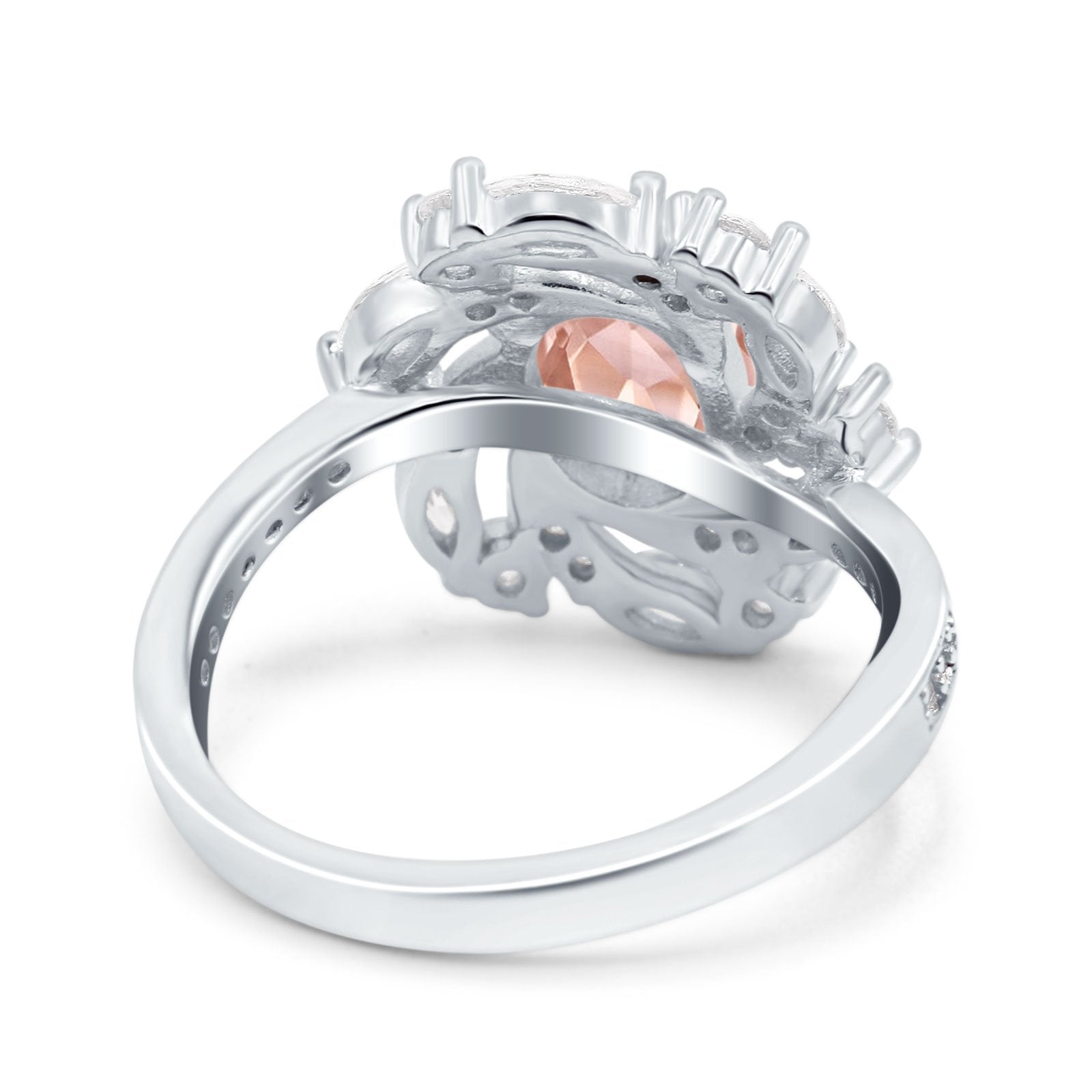 Oval Vintage Art Deco Engagement Ring Simulated Cubic Zirconia 925 Sterling Silver