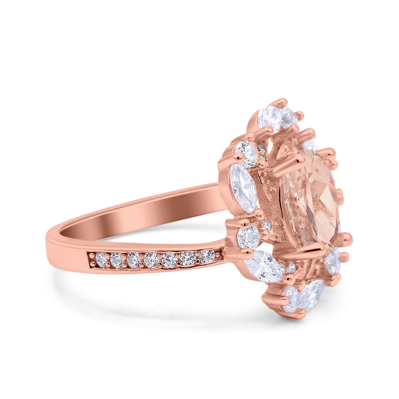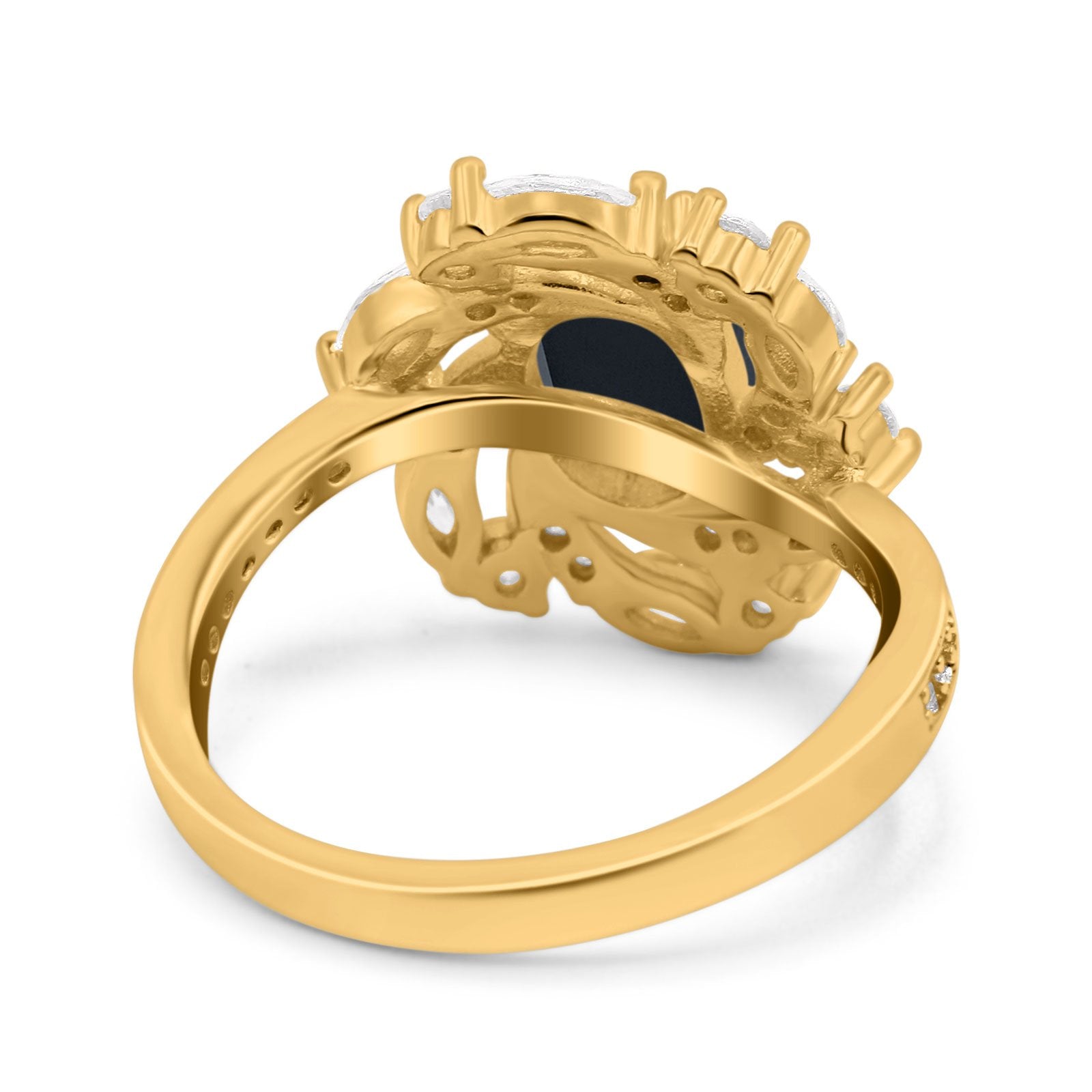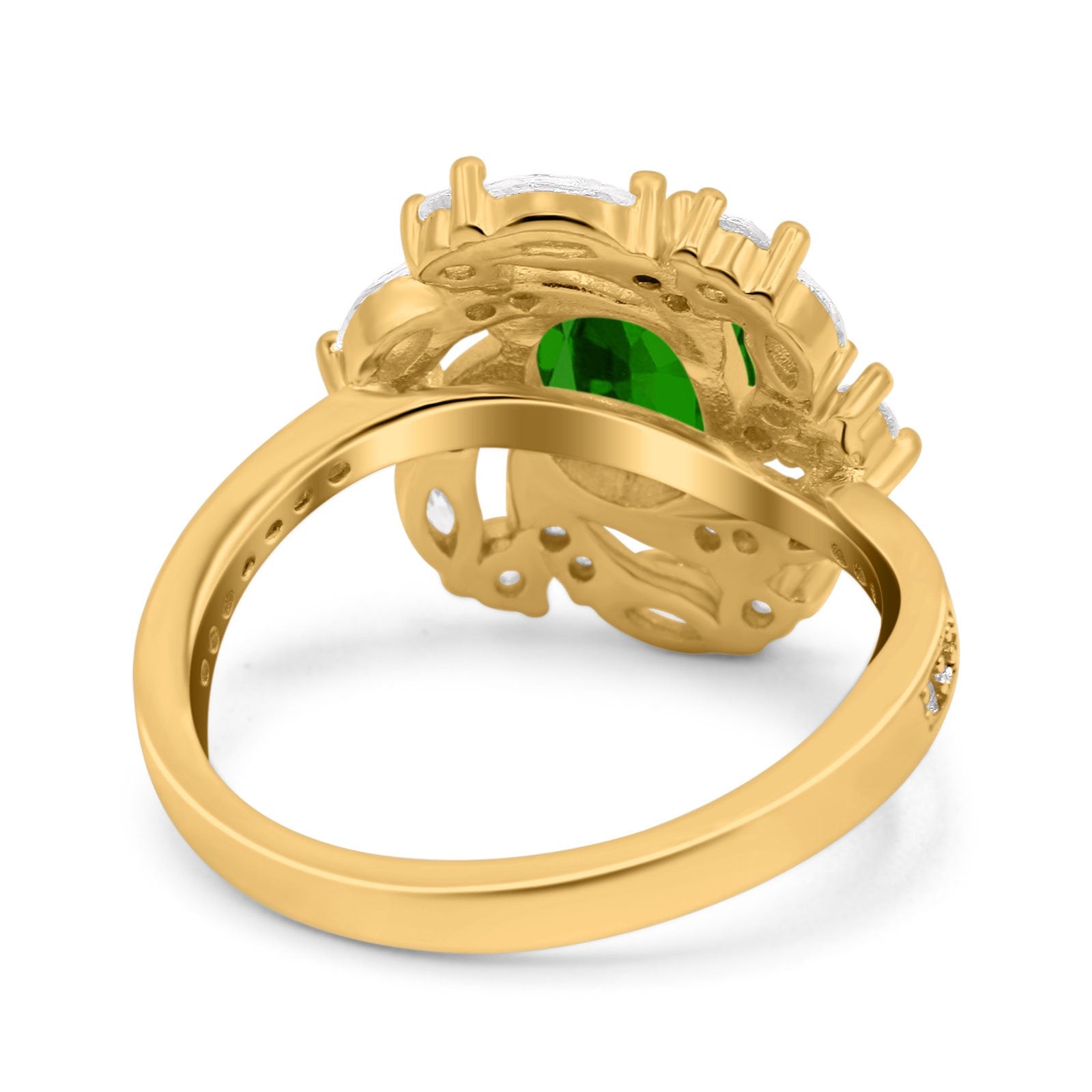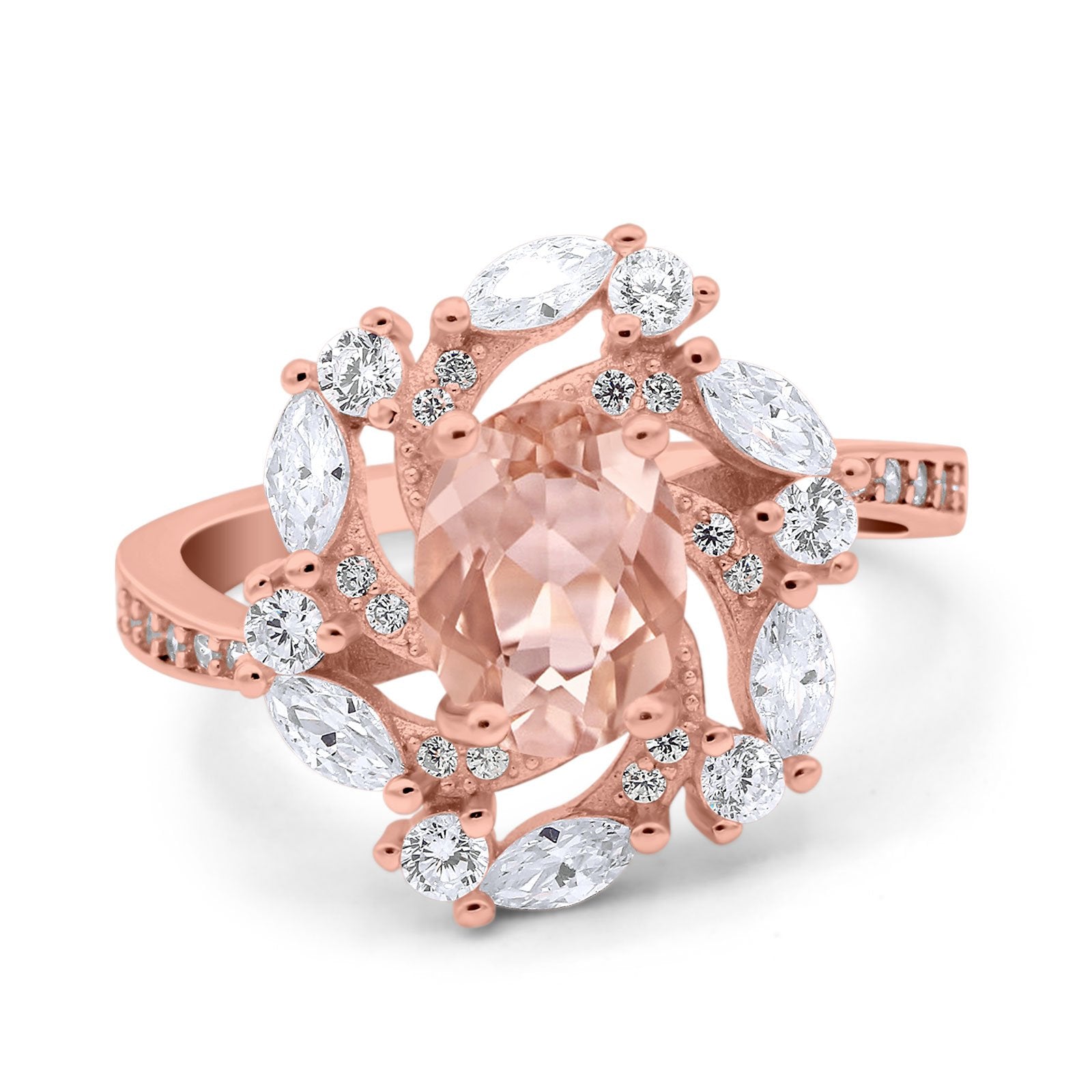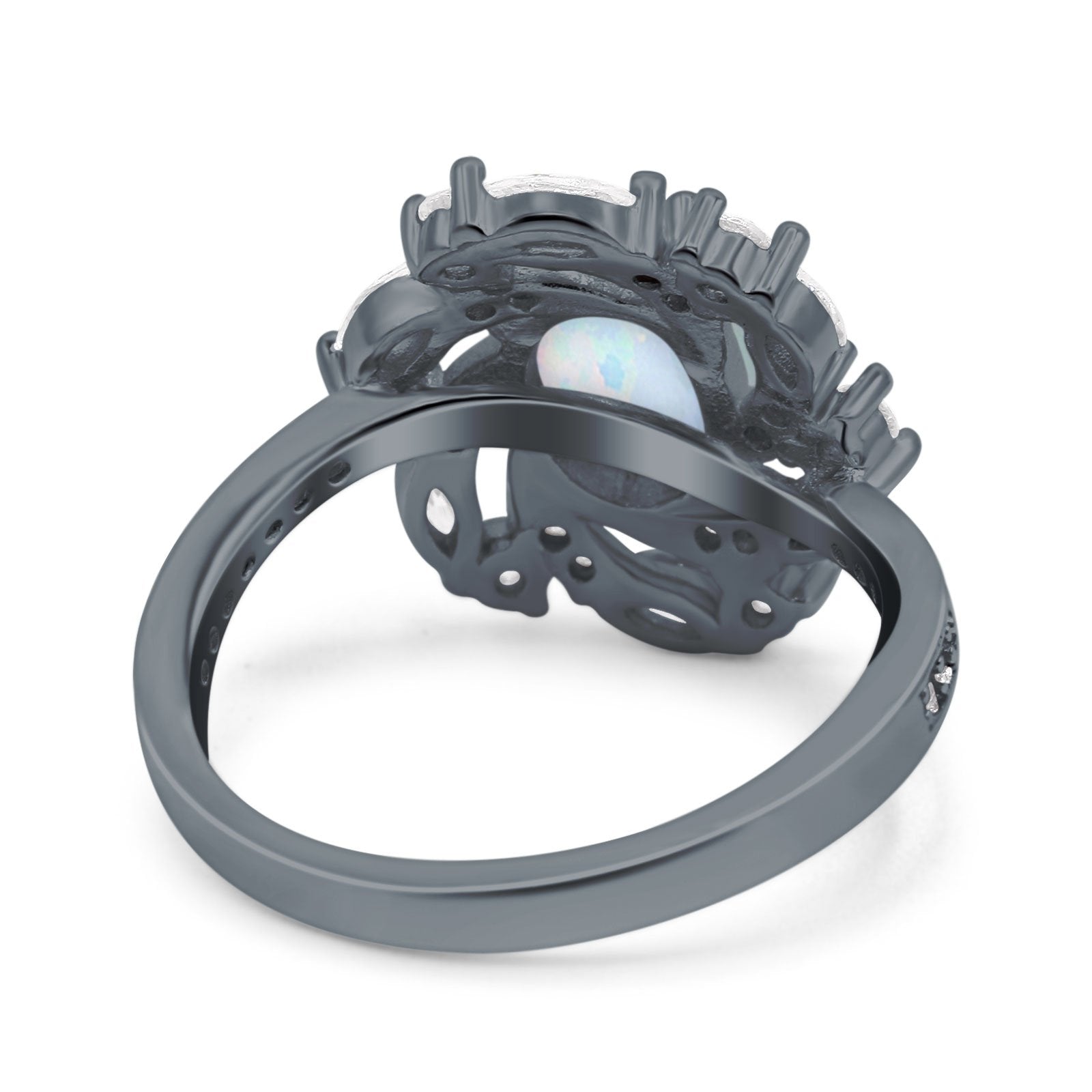 Oval Vintage Art Deco Engagement Ring Simulated Cubic Zirconia 925 Sterling Silver