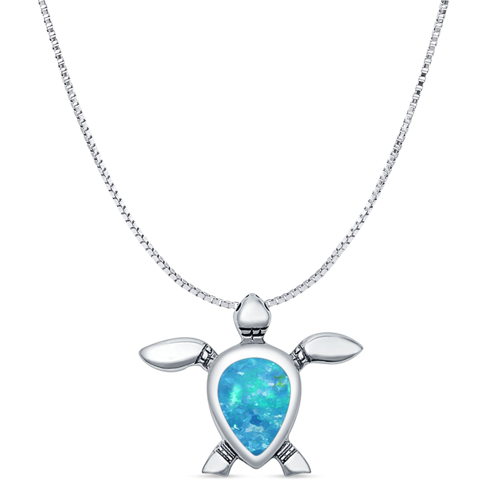 Style: Lab Created Blue Opal Turtle Pendant Necklace