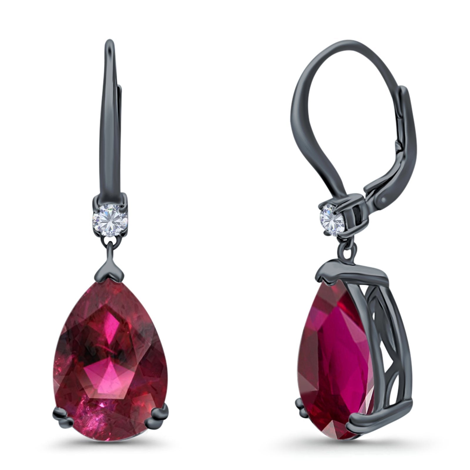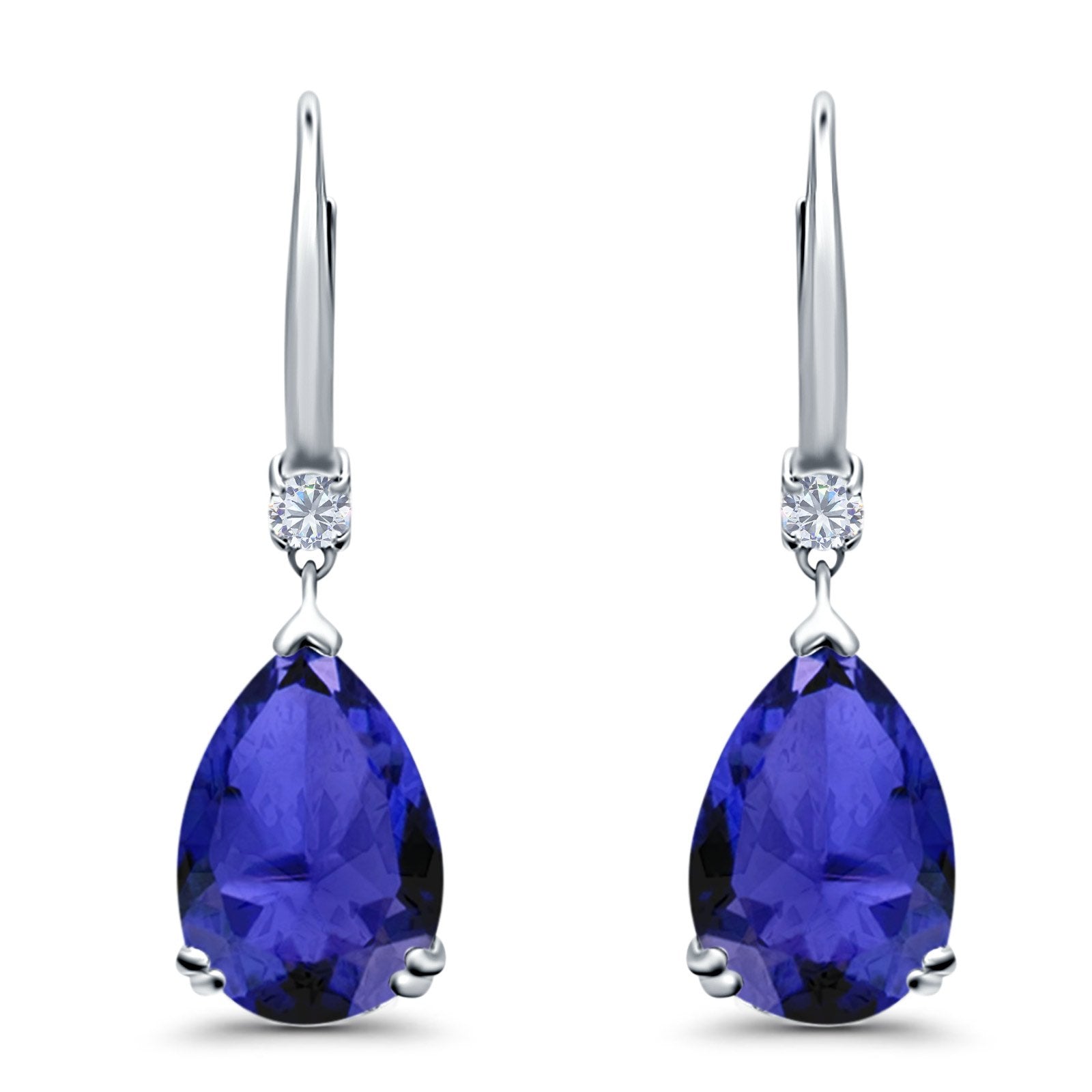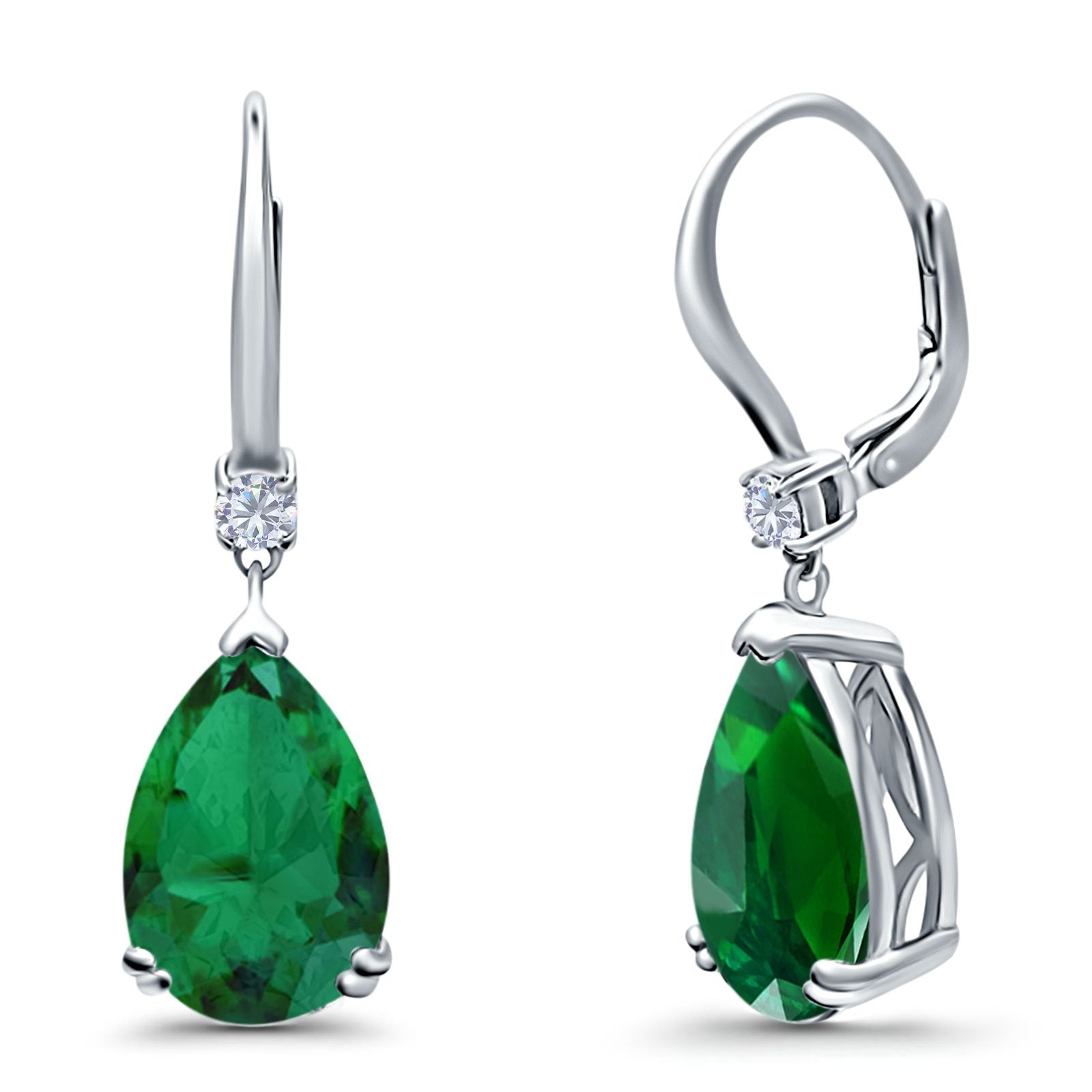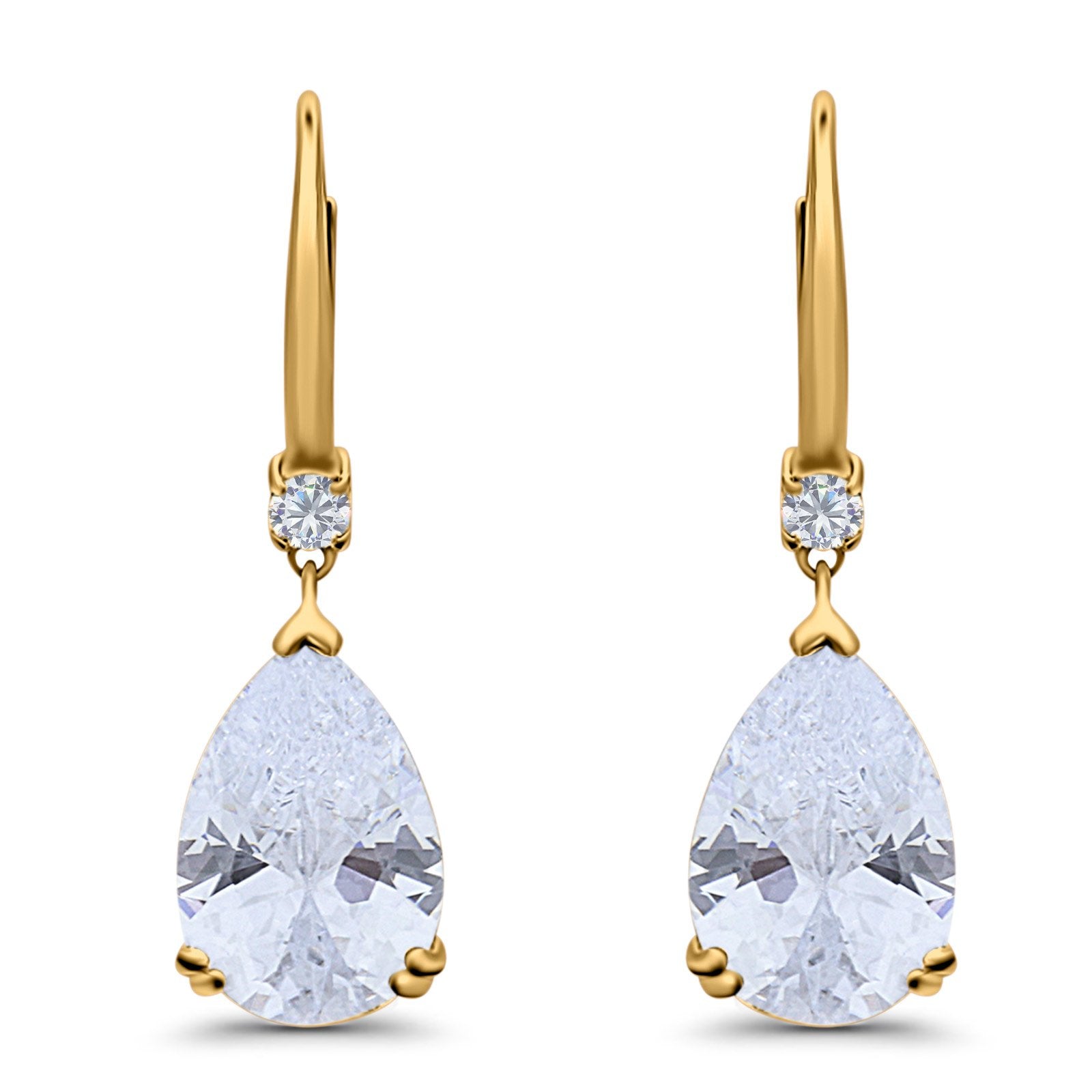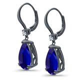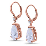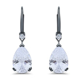 Pear Shape Dangling Leverback Earrings Wedding Simulated Cubic Zirconia 925 Sterling Silver (22mm)