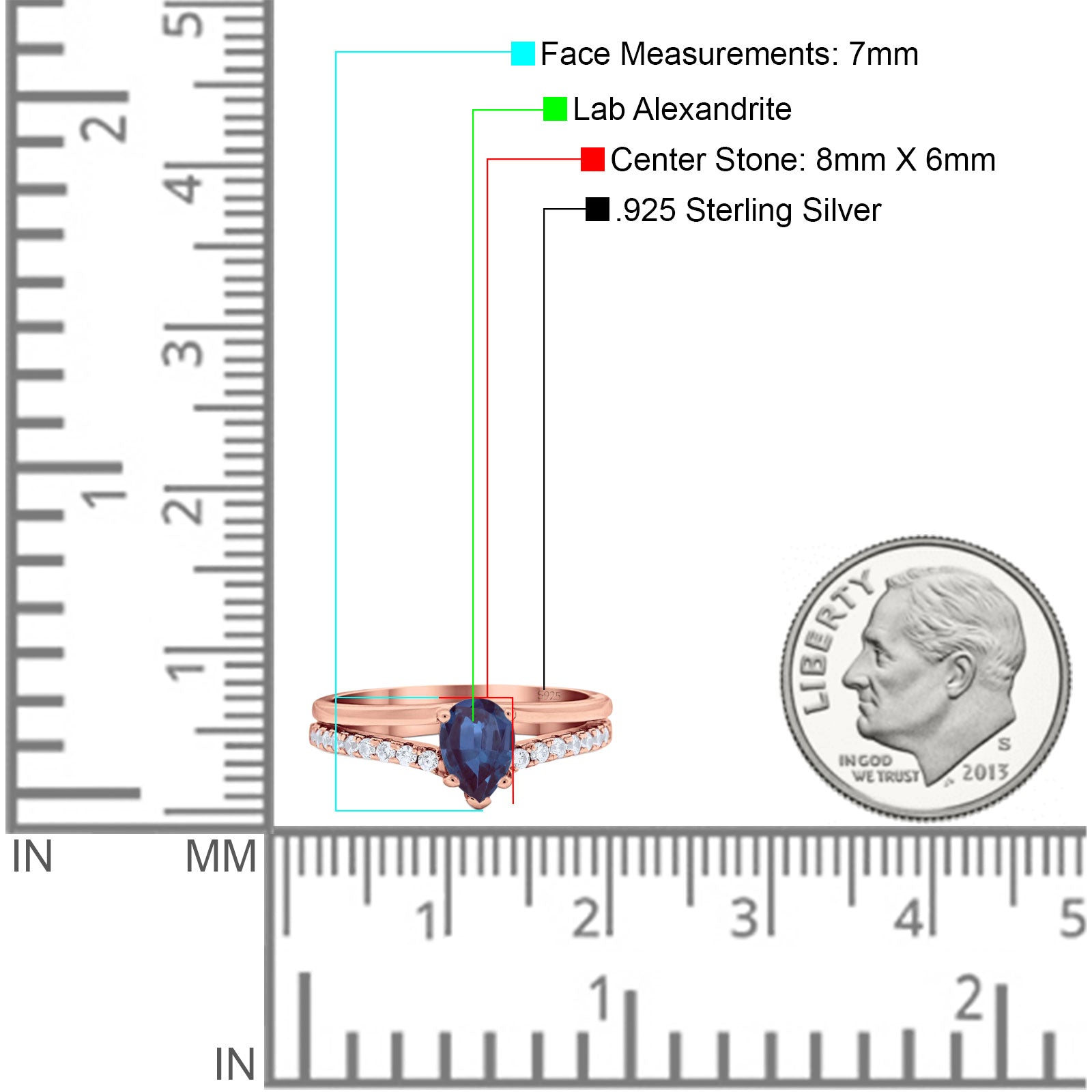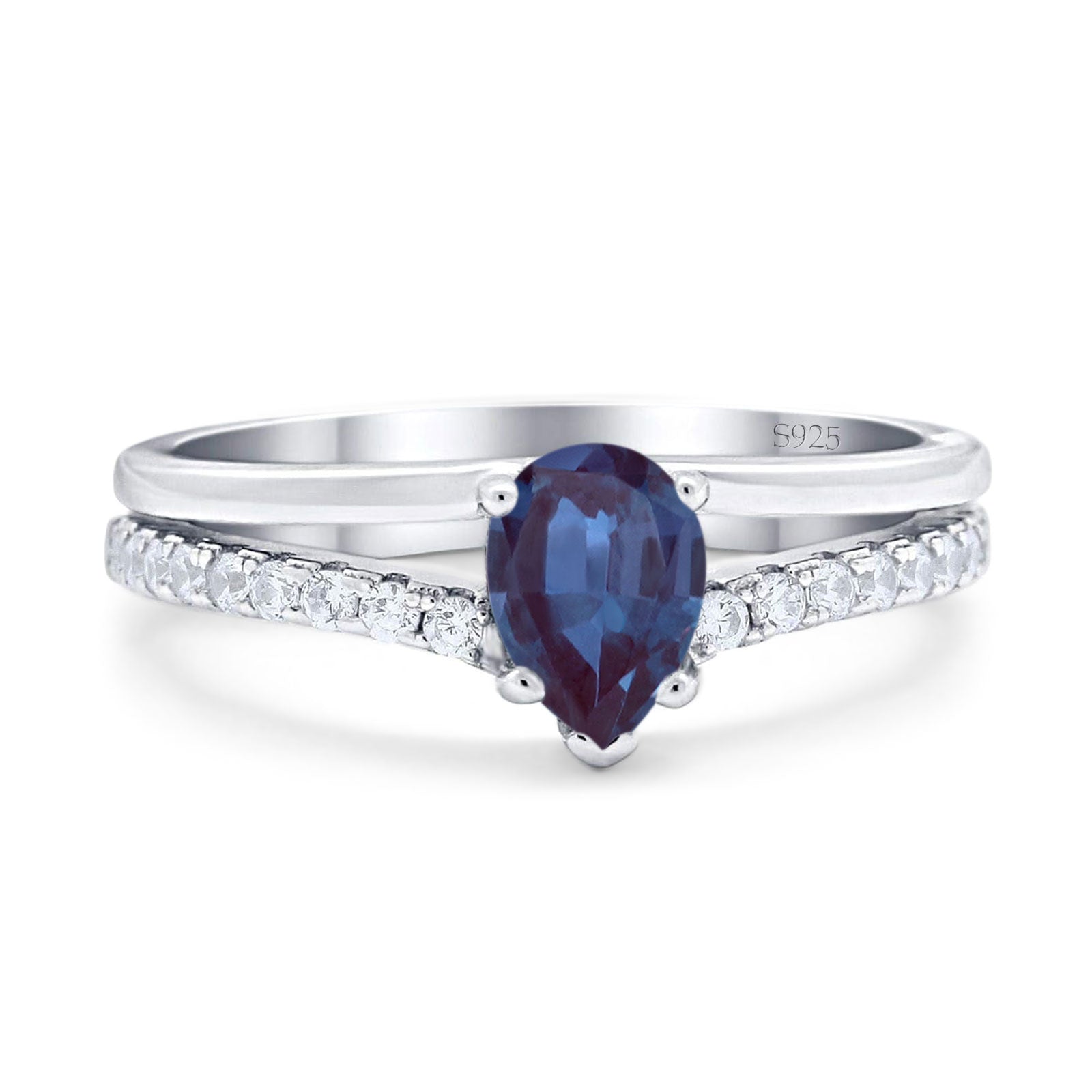 Pear Teardrop Lab Alexandrite Wedding Ring 925 Sterling Silver