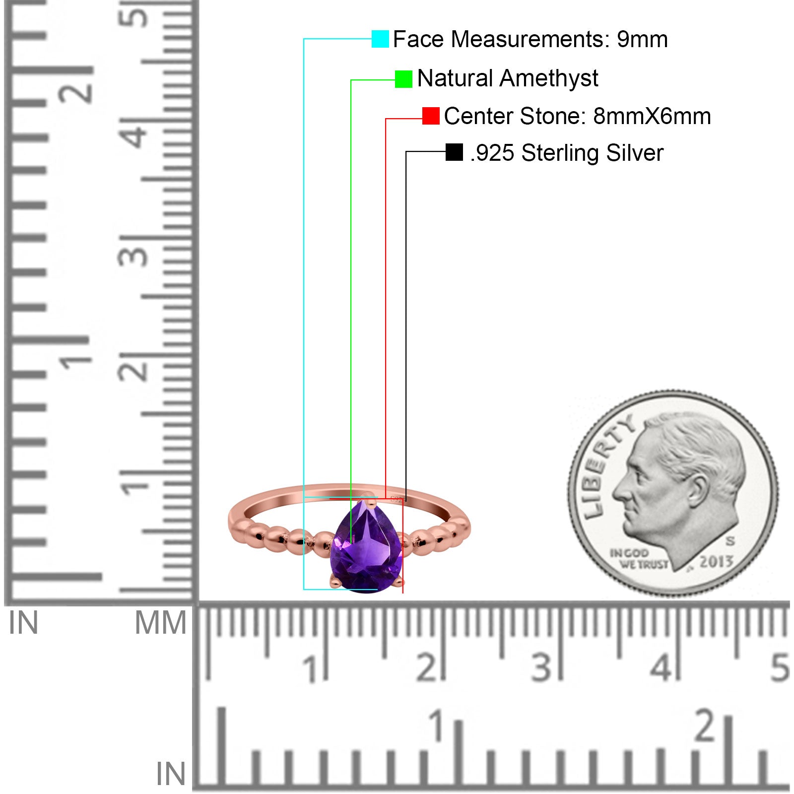 Metal Purity: 92.5% Sterling.