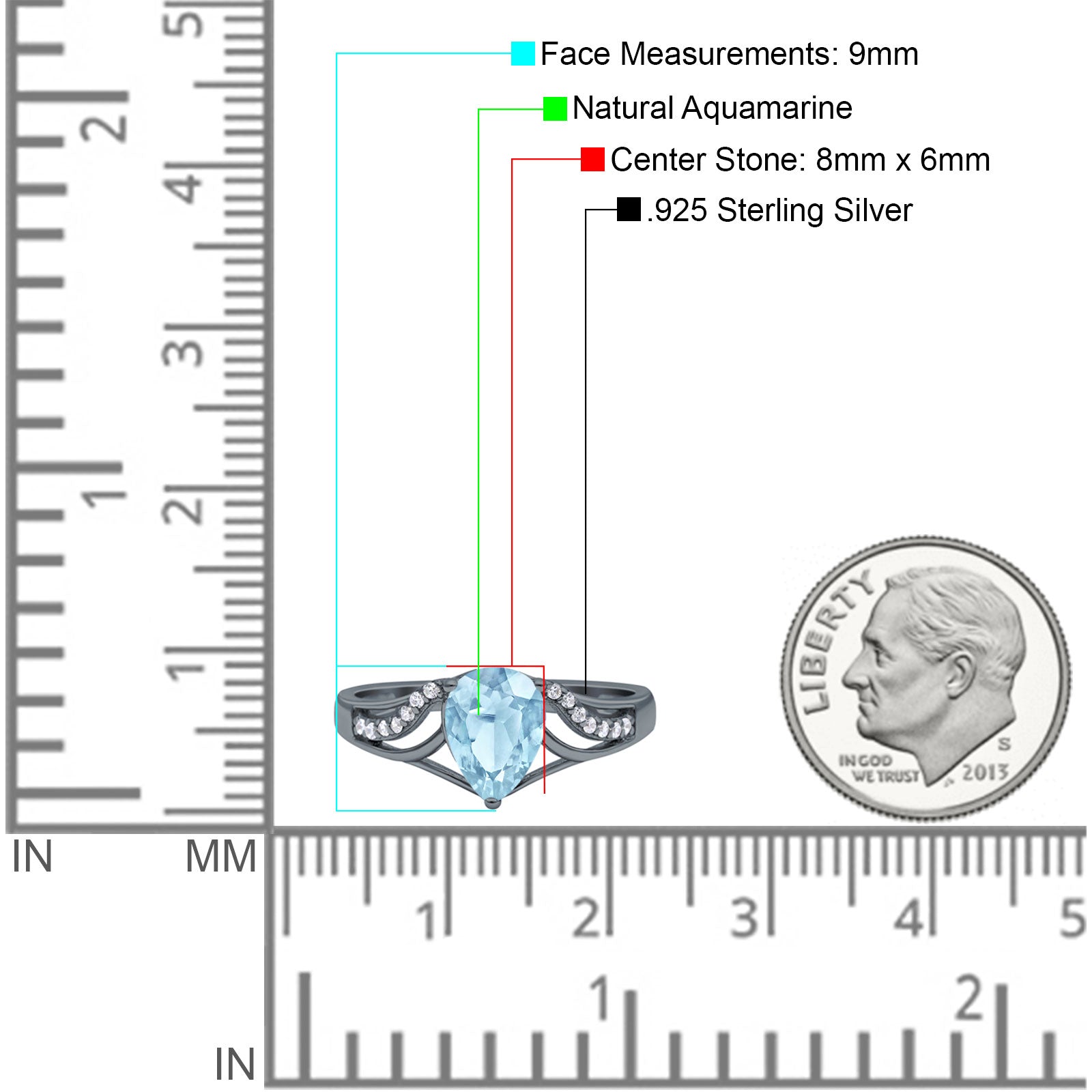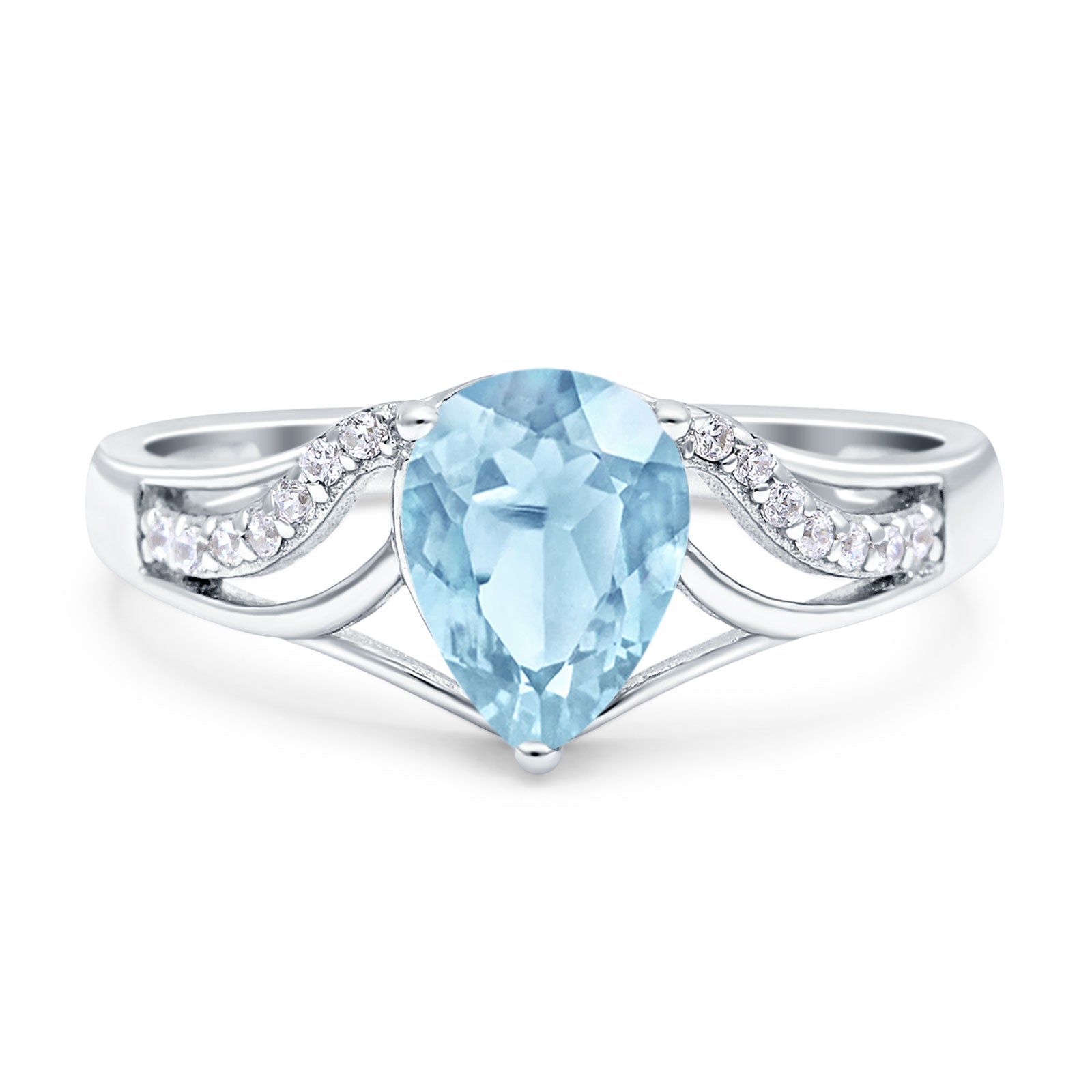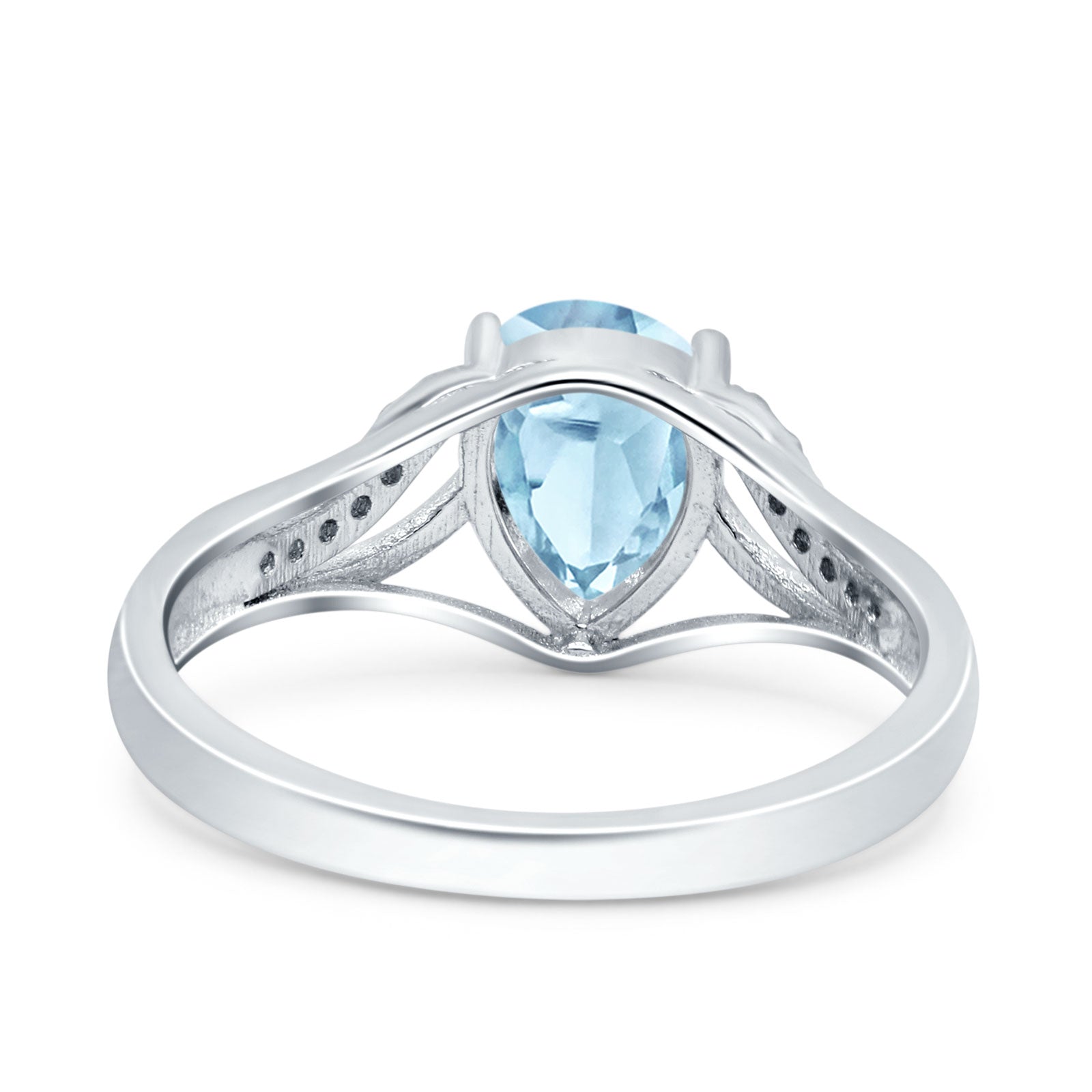 Pear Teardrop Natural Aquamarine Art Deco Ring 925 Sterling Silver