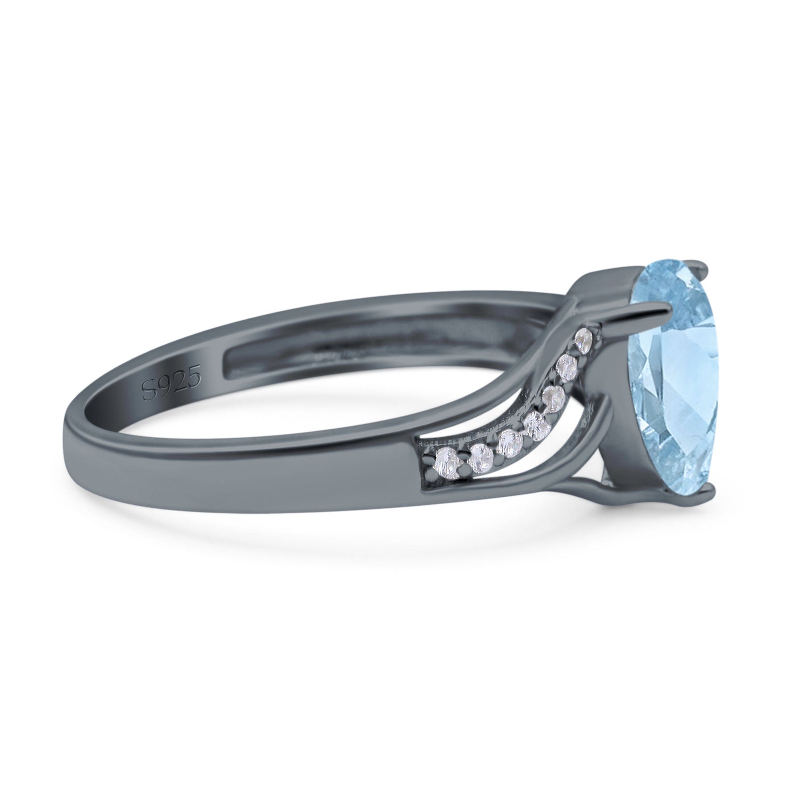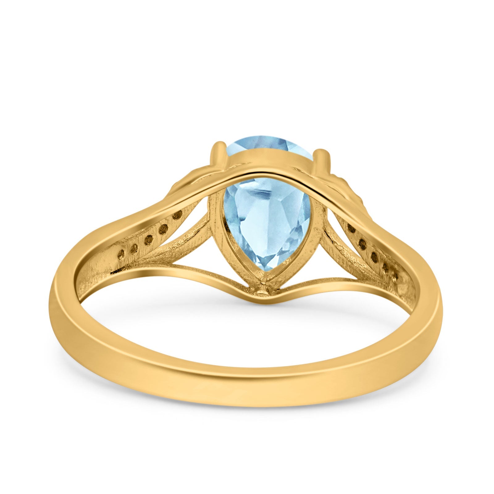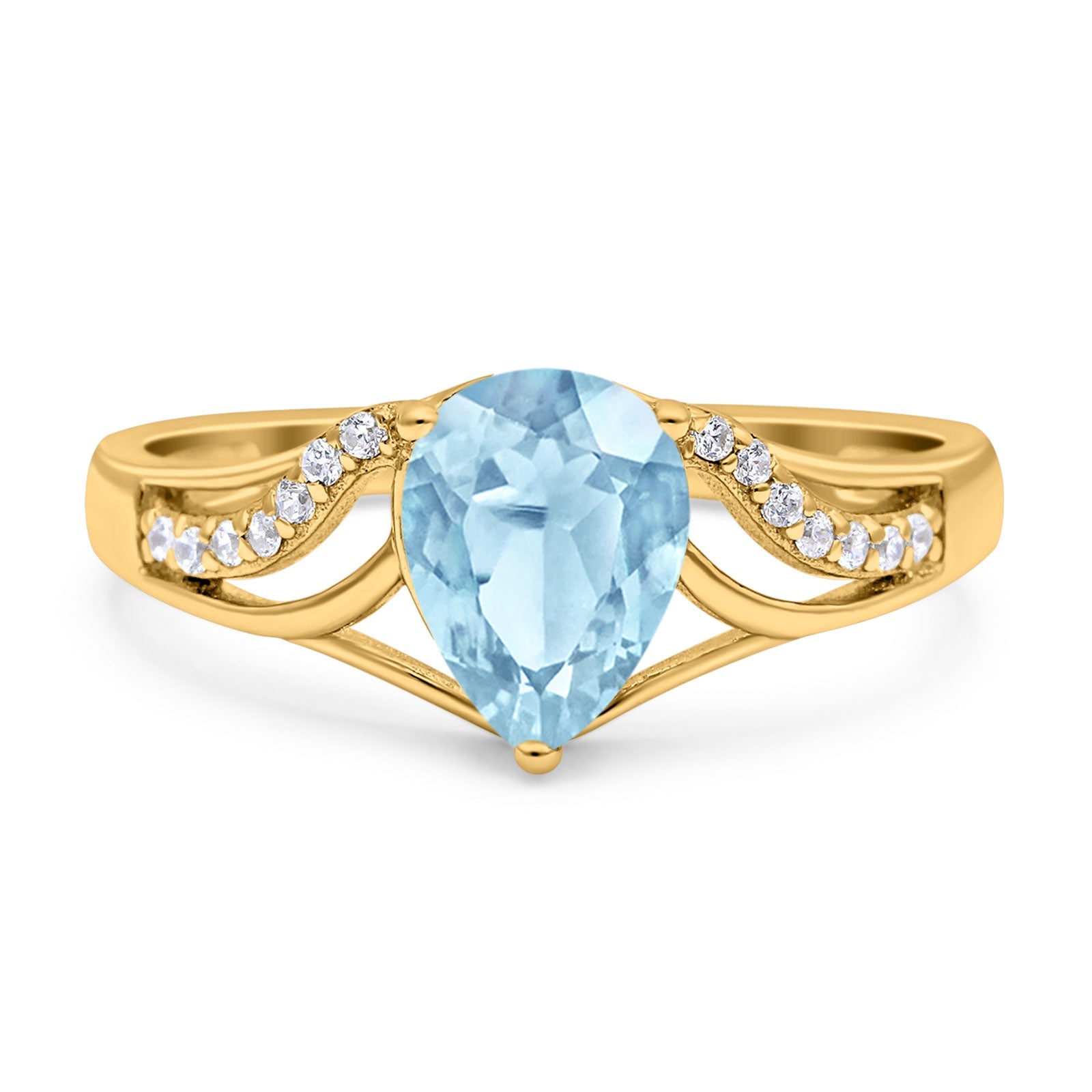 Pear Teardrop Natural Aquamarine Art Deco Ring 925 Sterling Silver