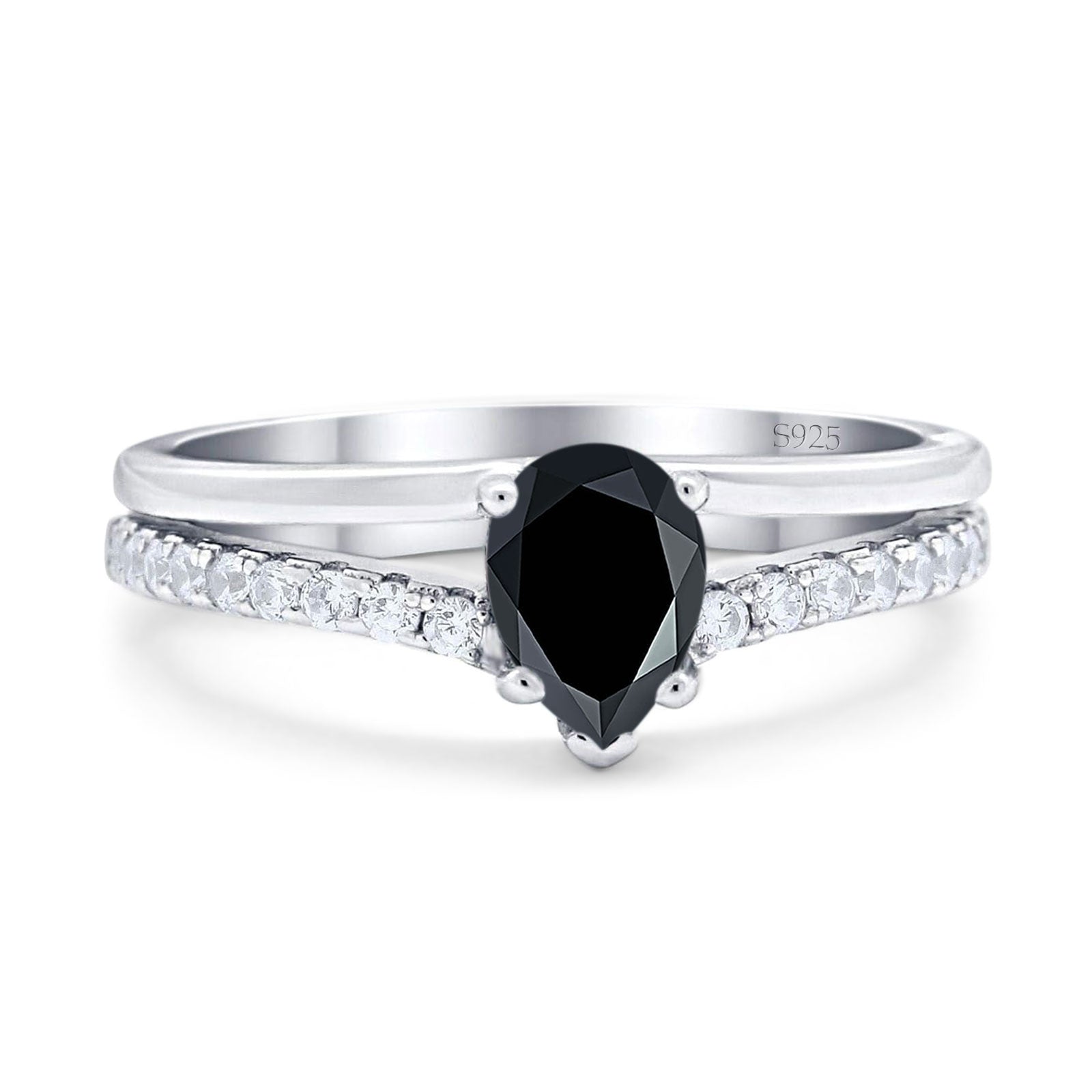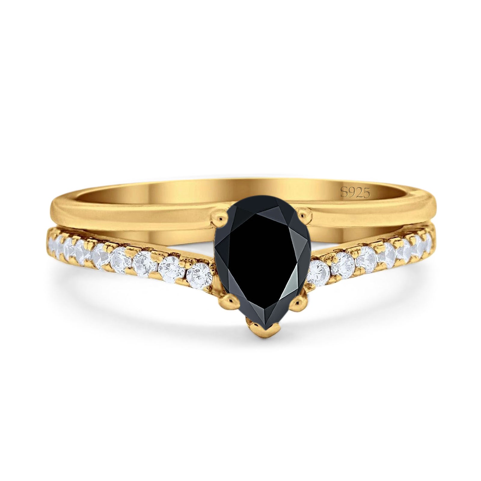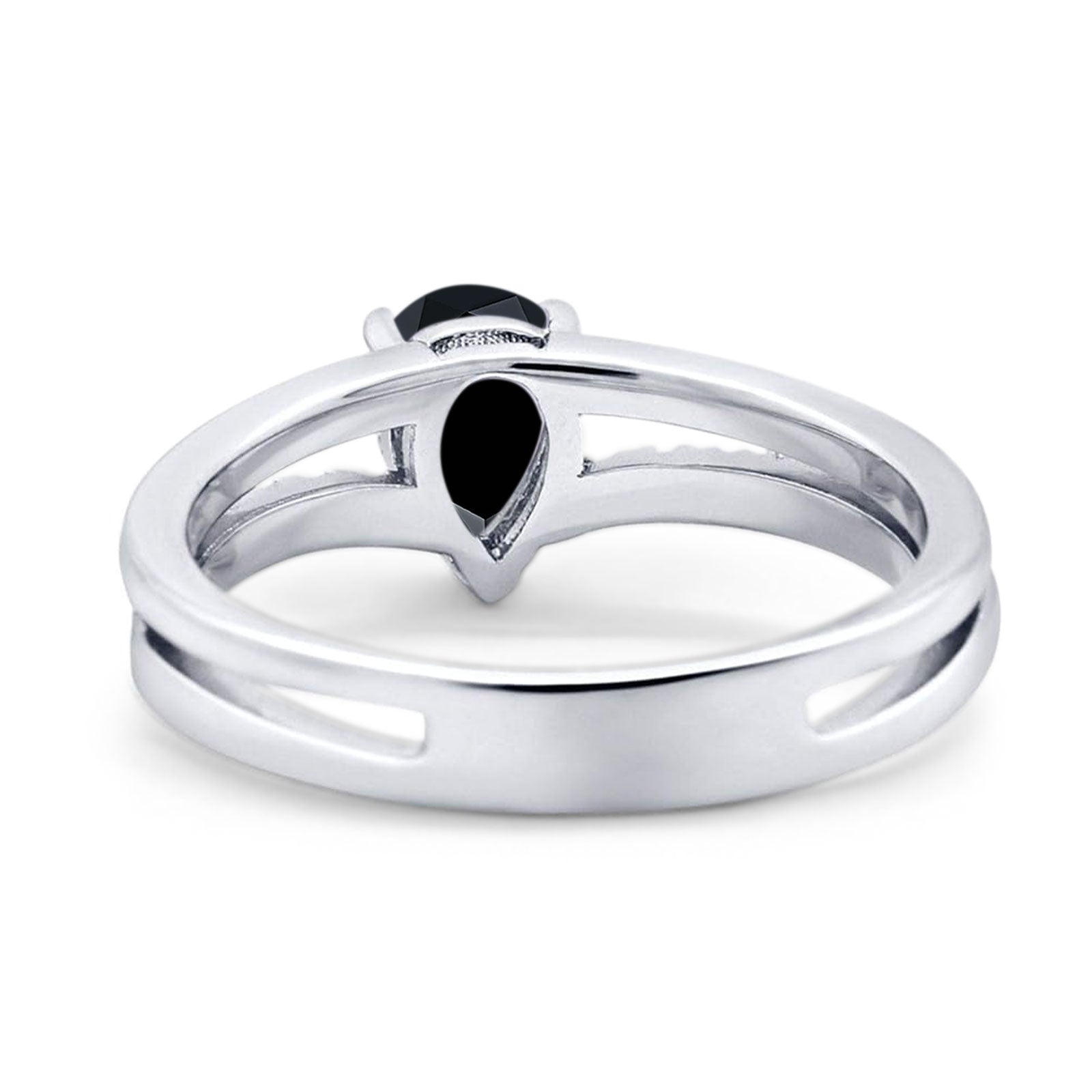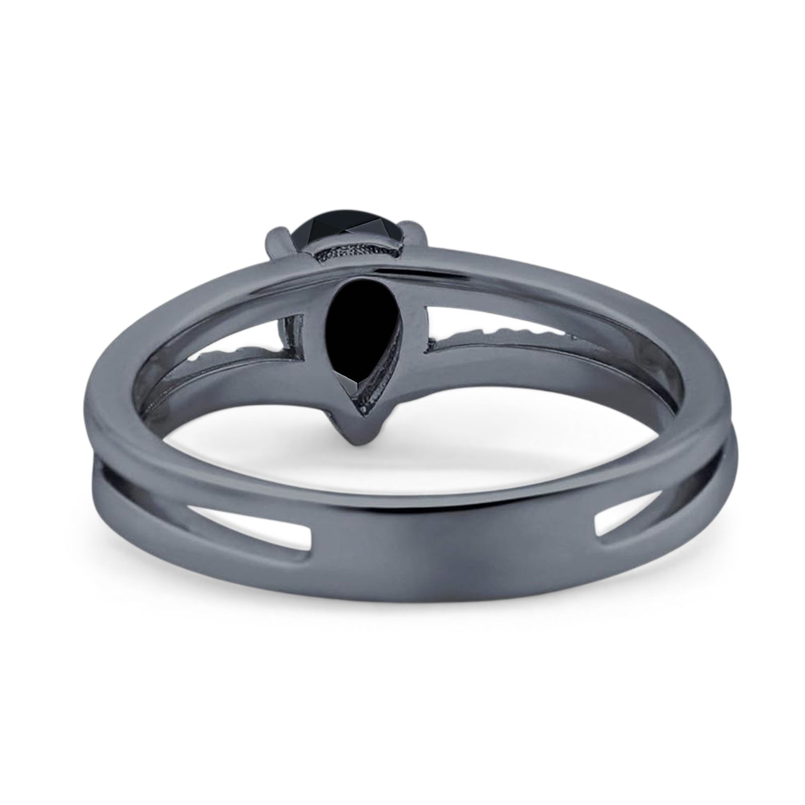 Pear Teardrop Natural Black Onyx Wedding Ring 925 Sterling Silver