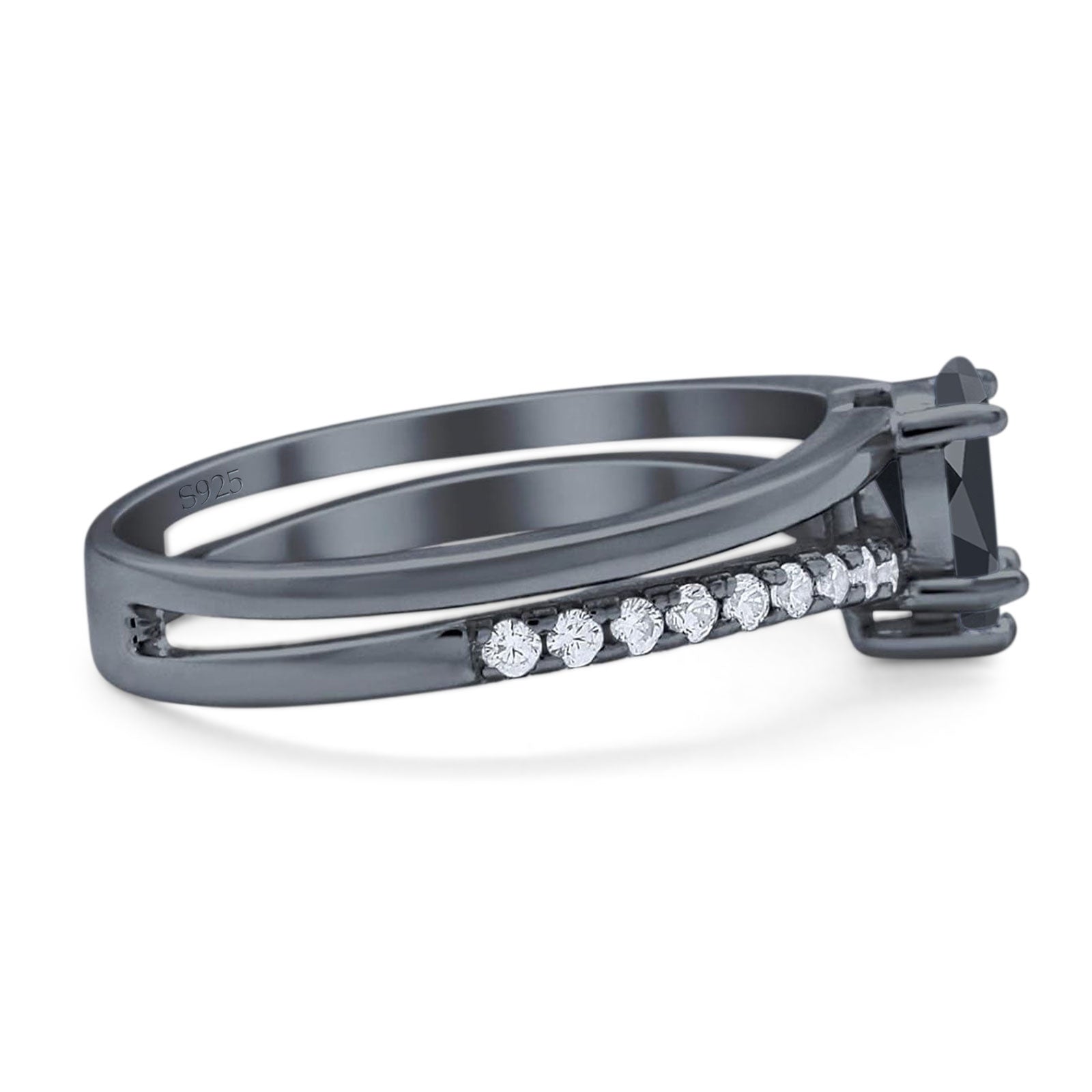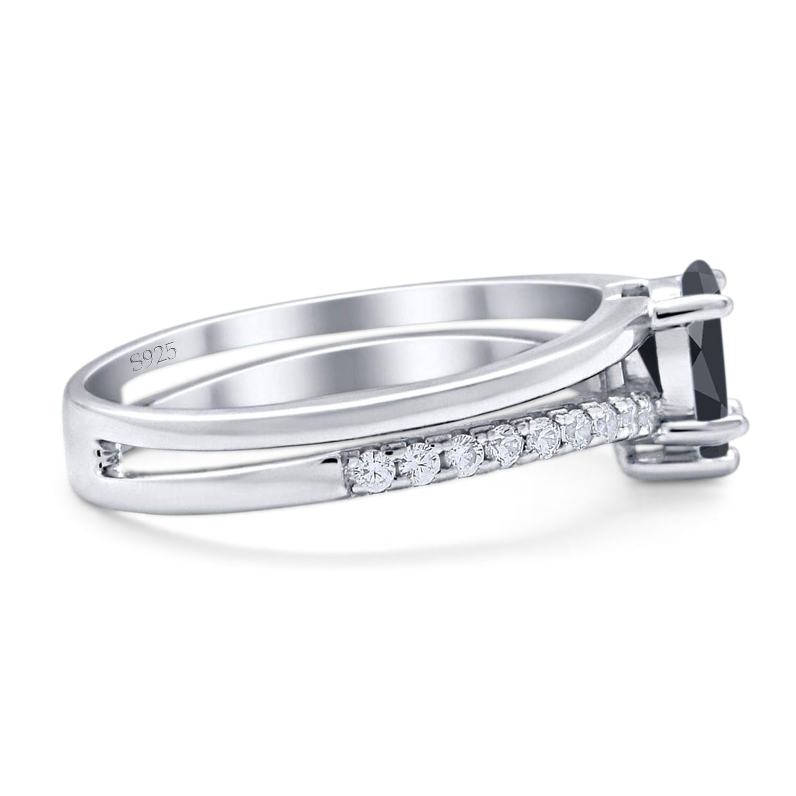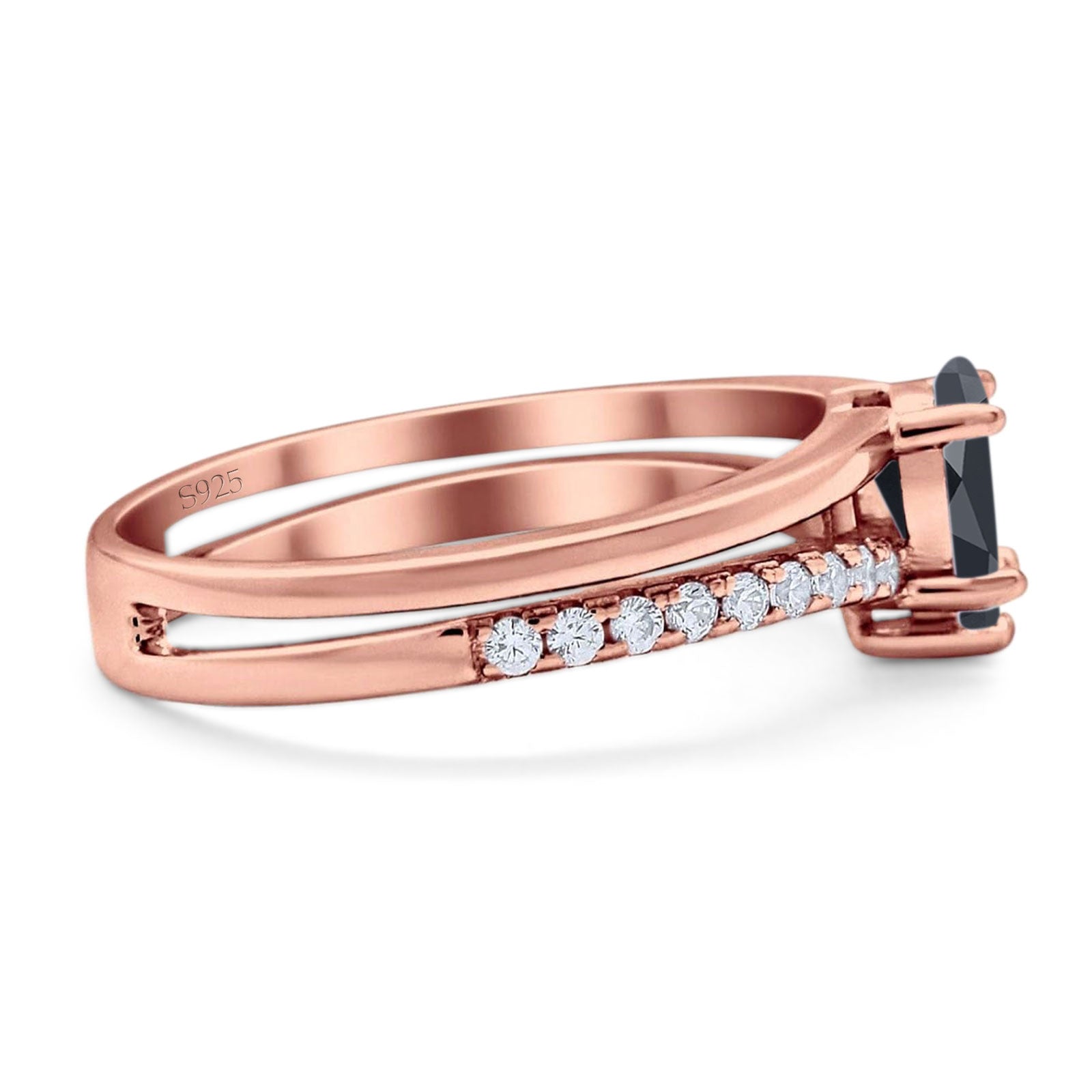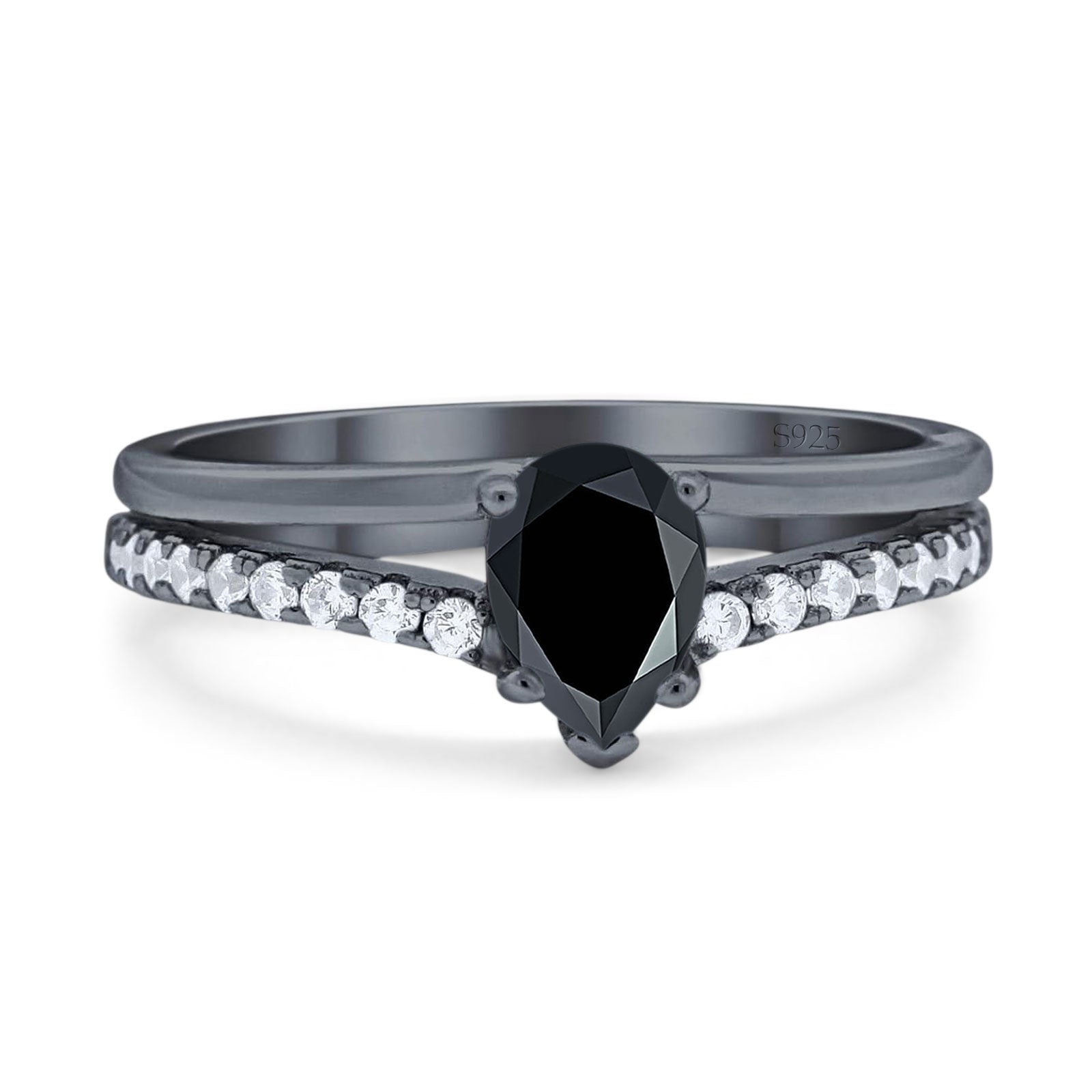 Pear Teardrop Natural Black Onyx Wedding Ring 925 Sterling Silver