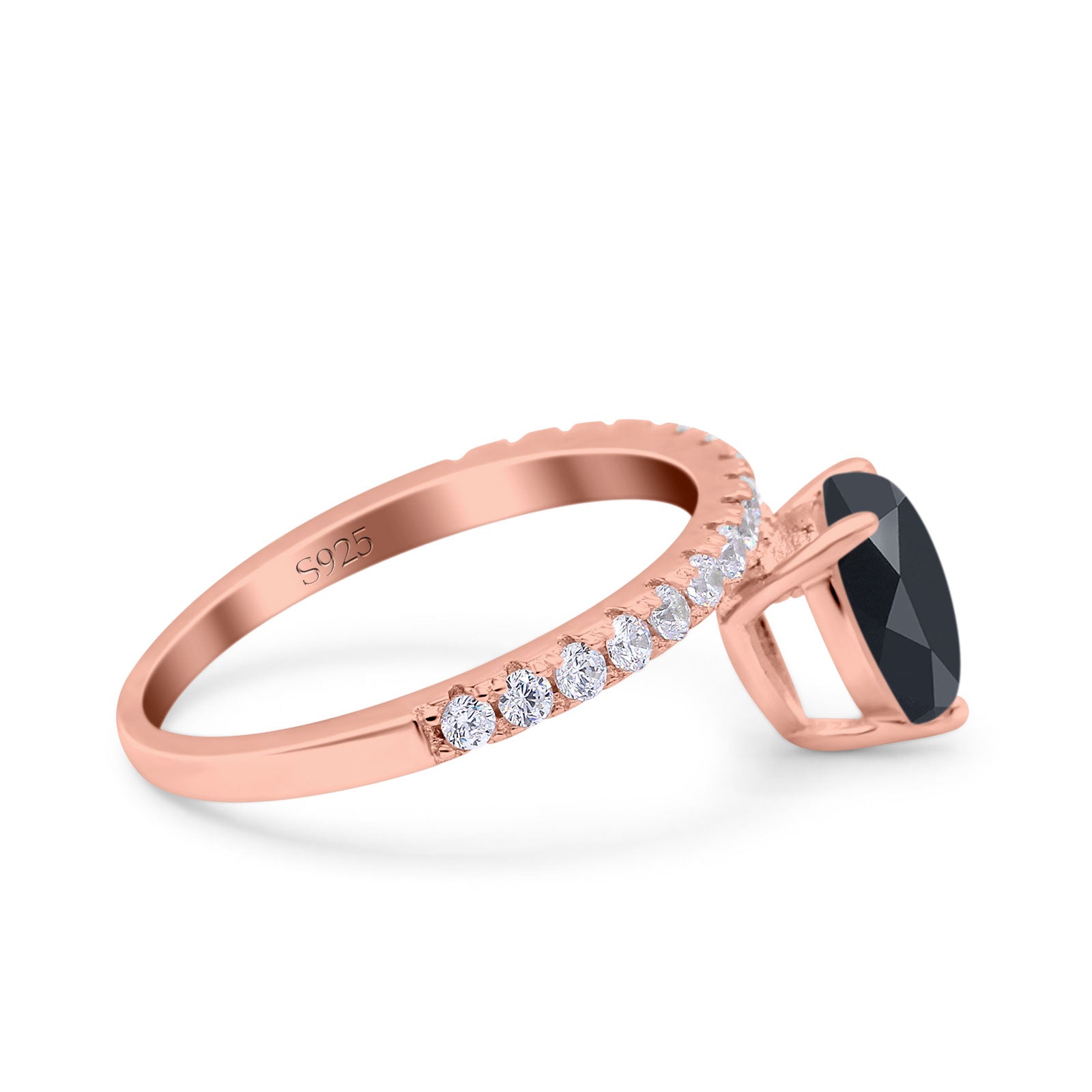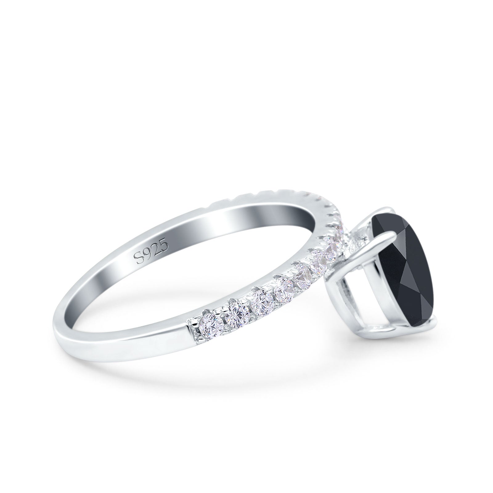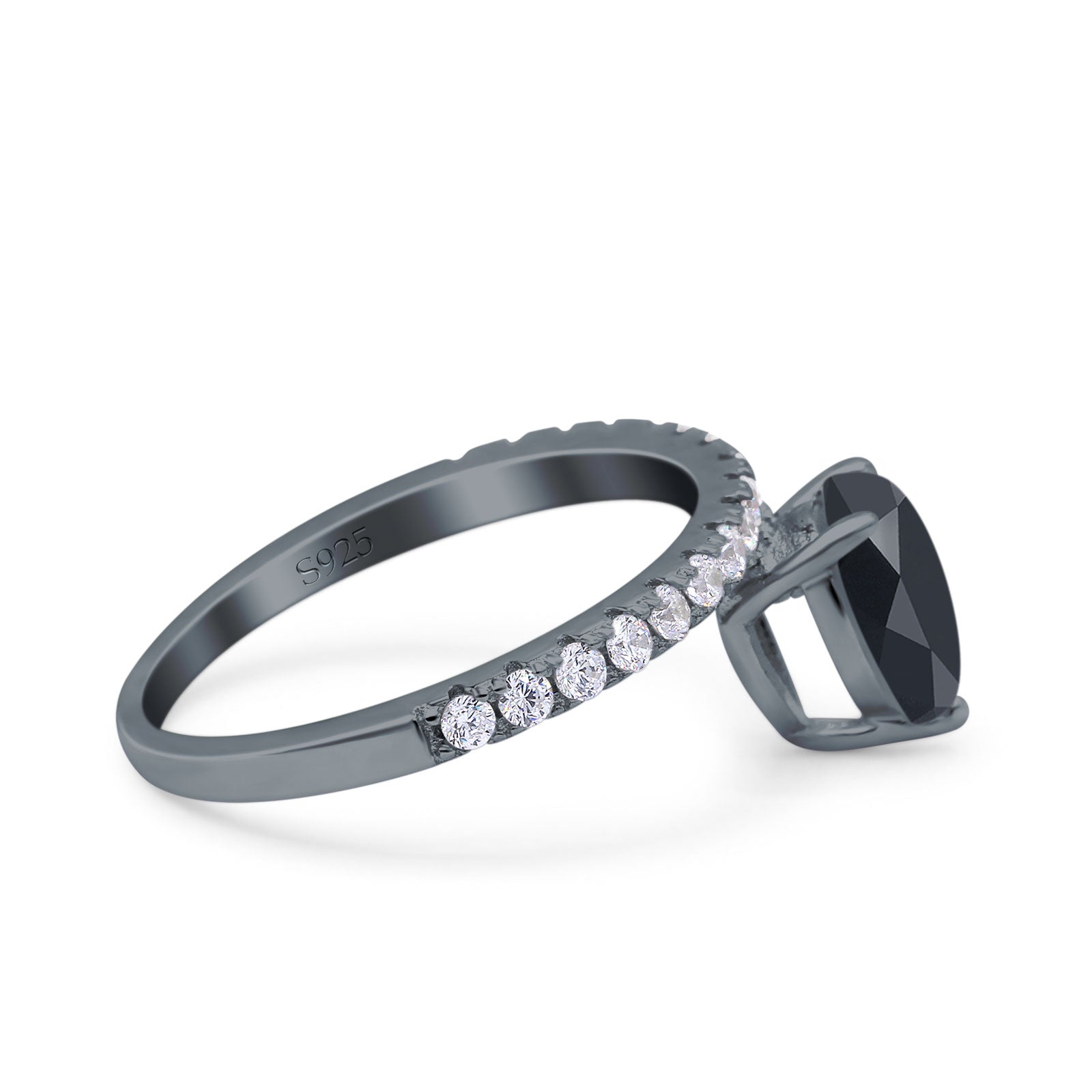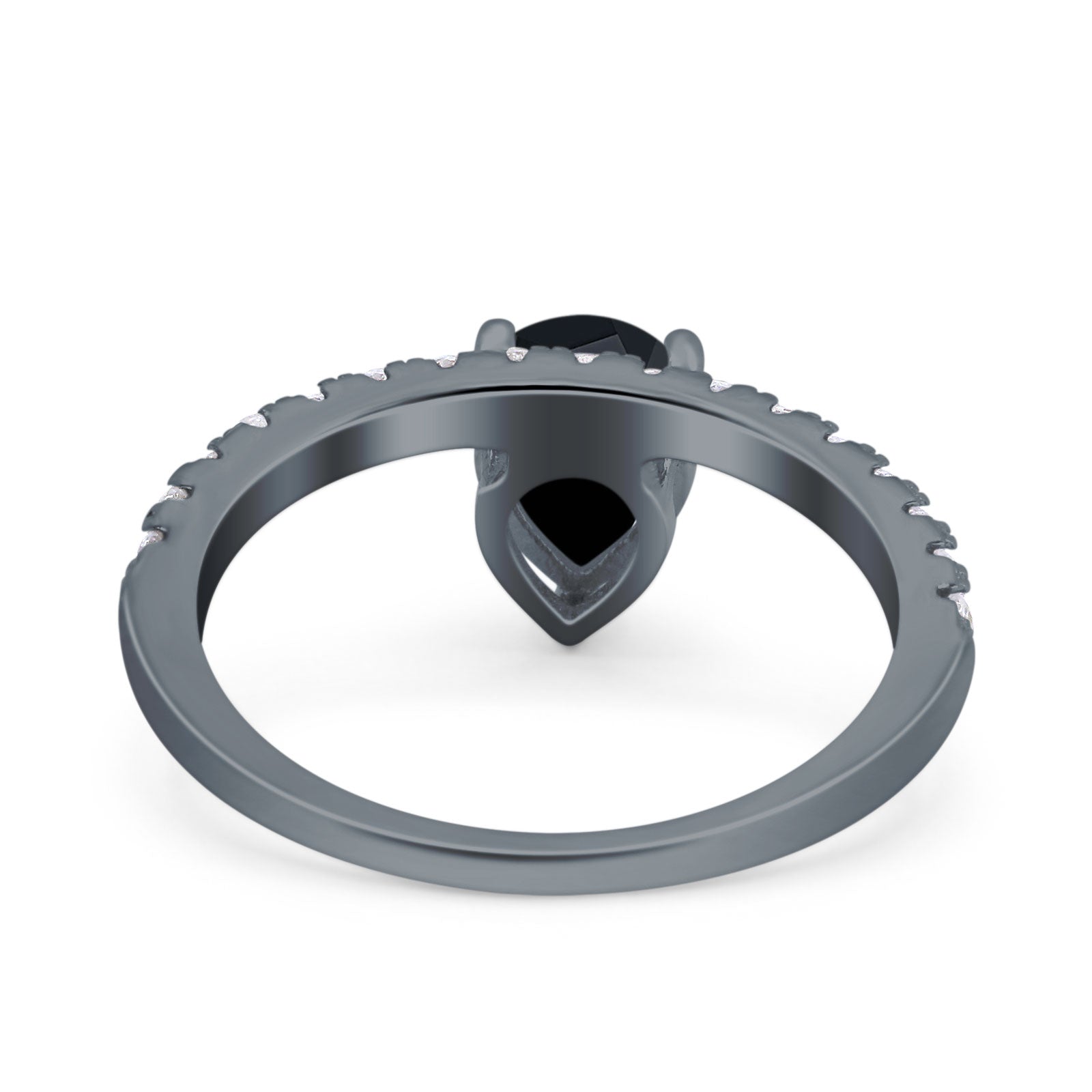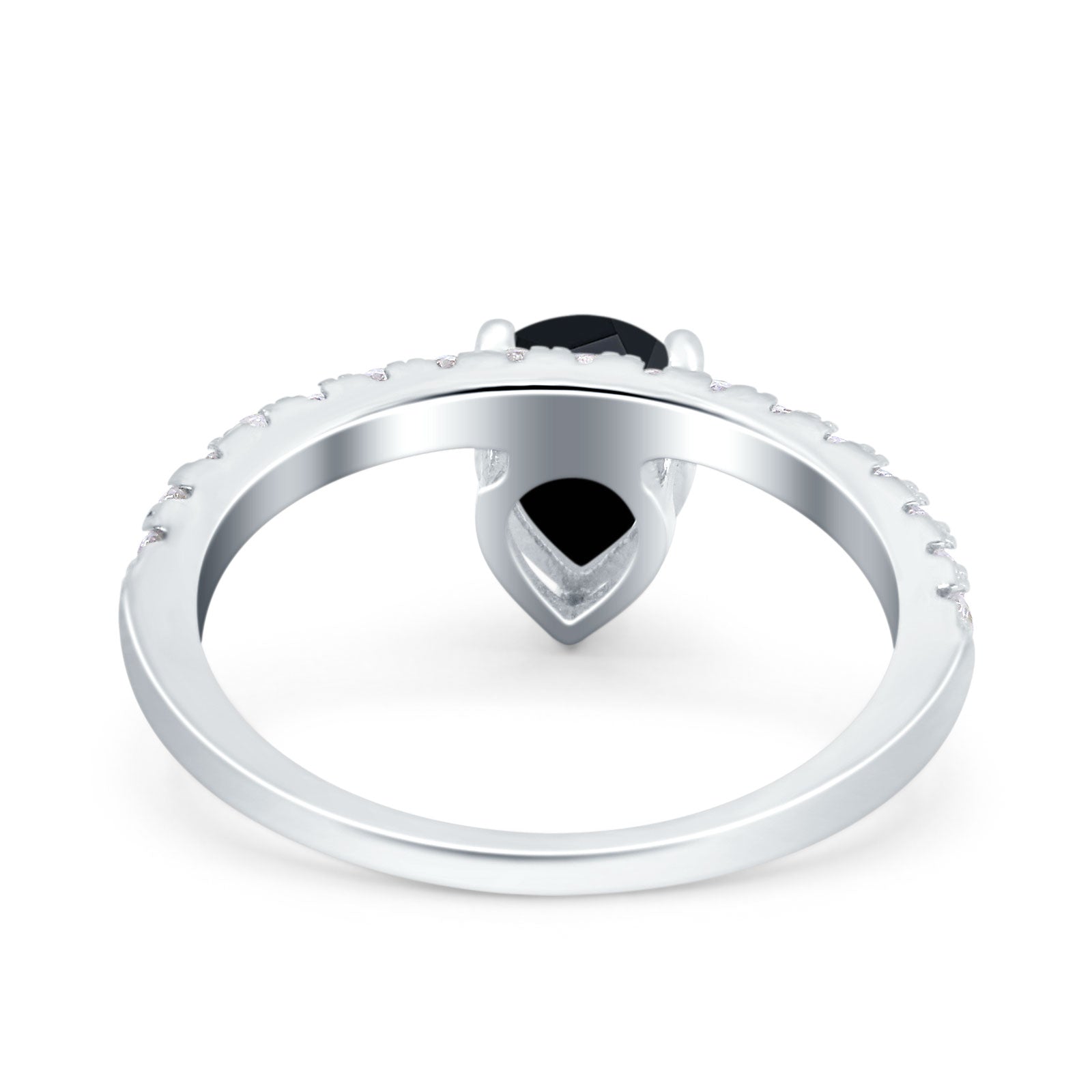 Pear Teardrop Natural Black Onyx Wedding Ring 925 Sterling Silver