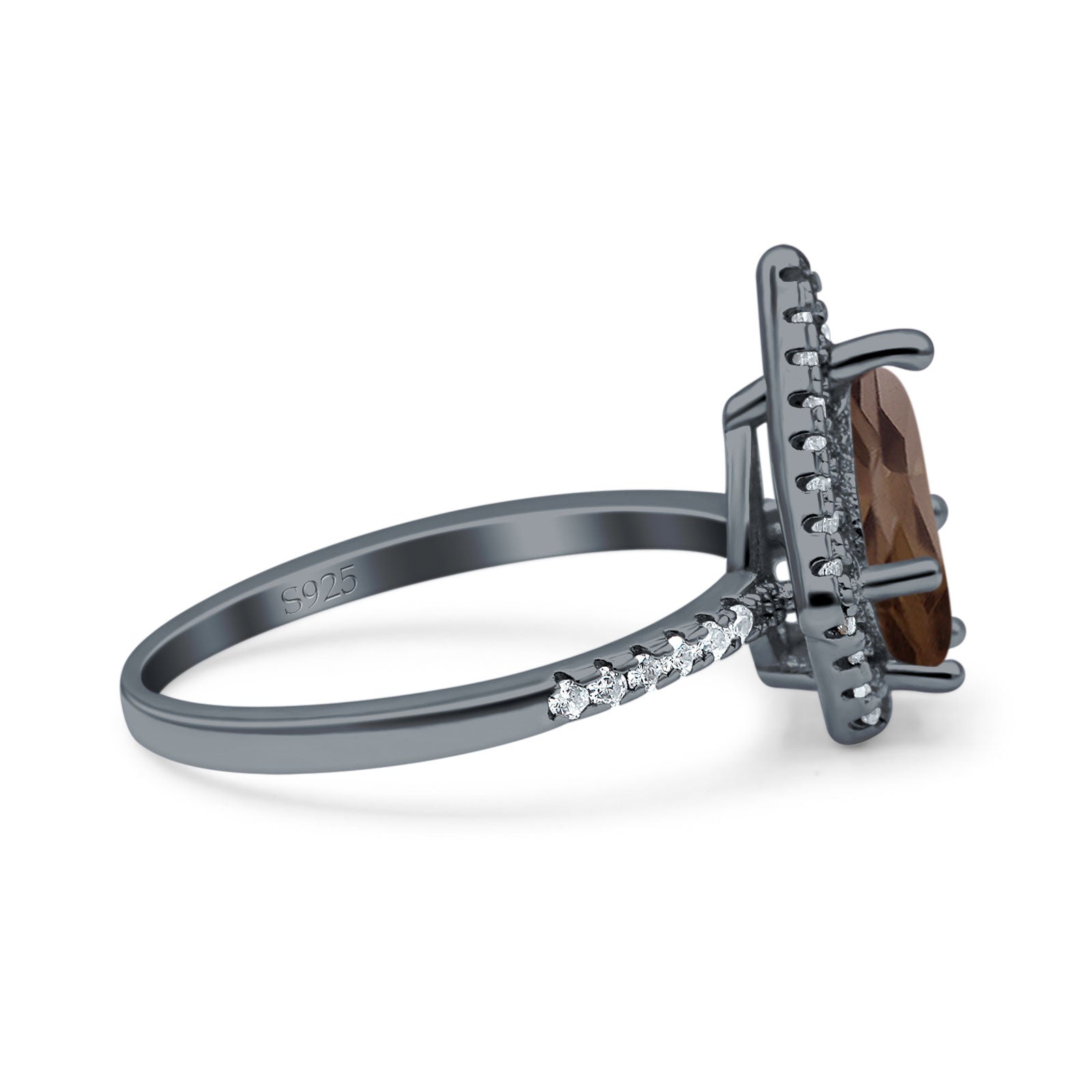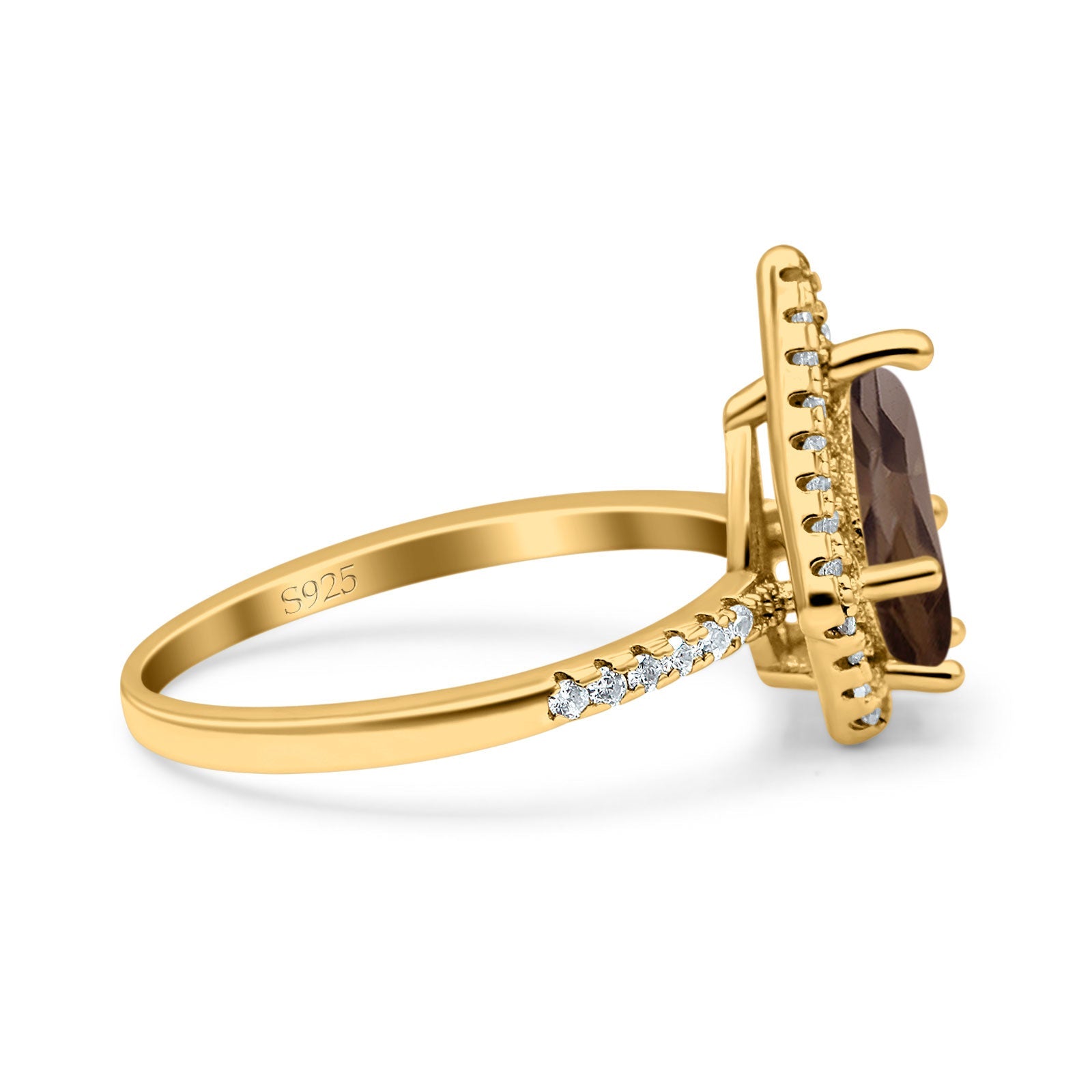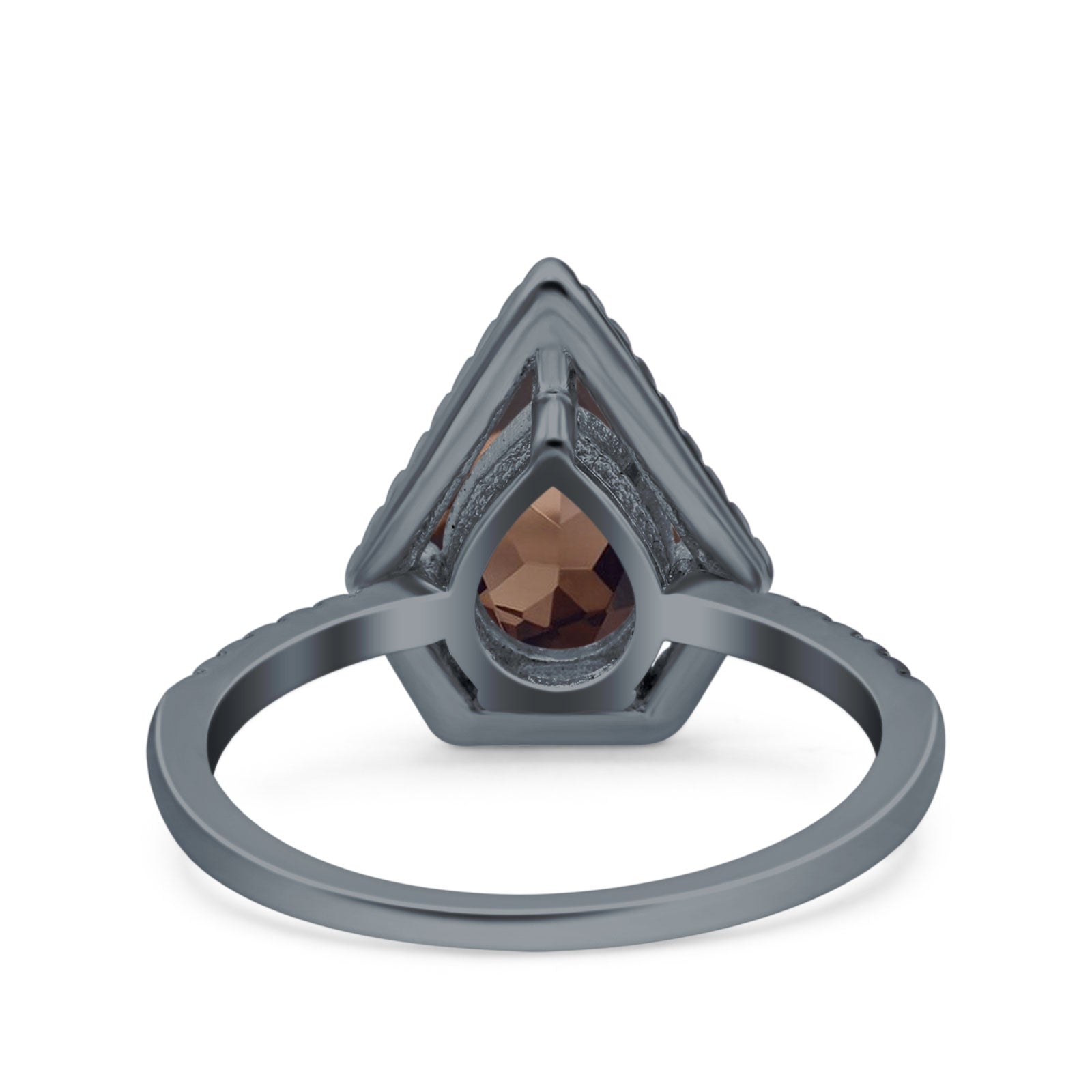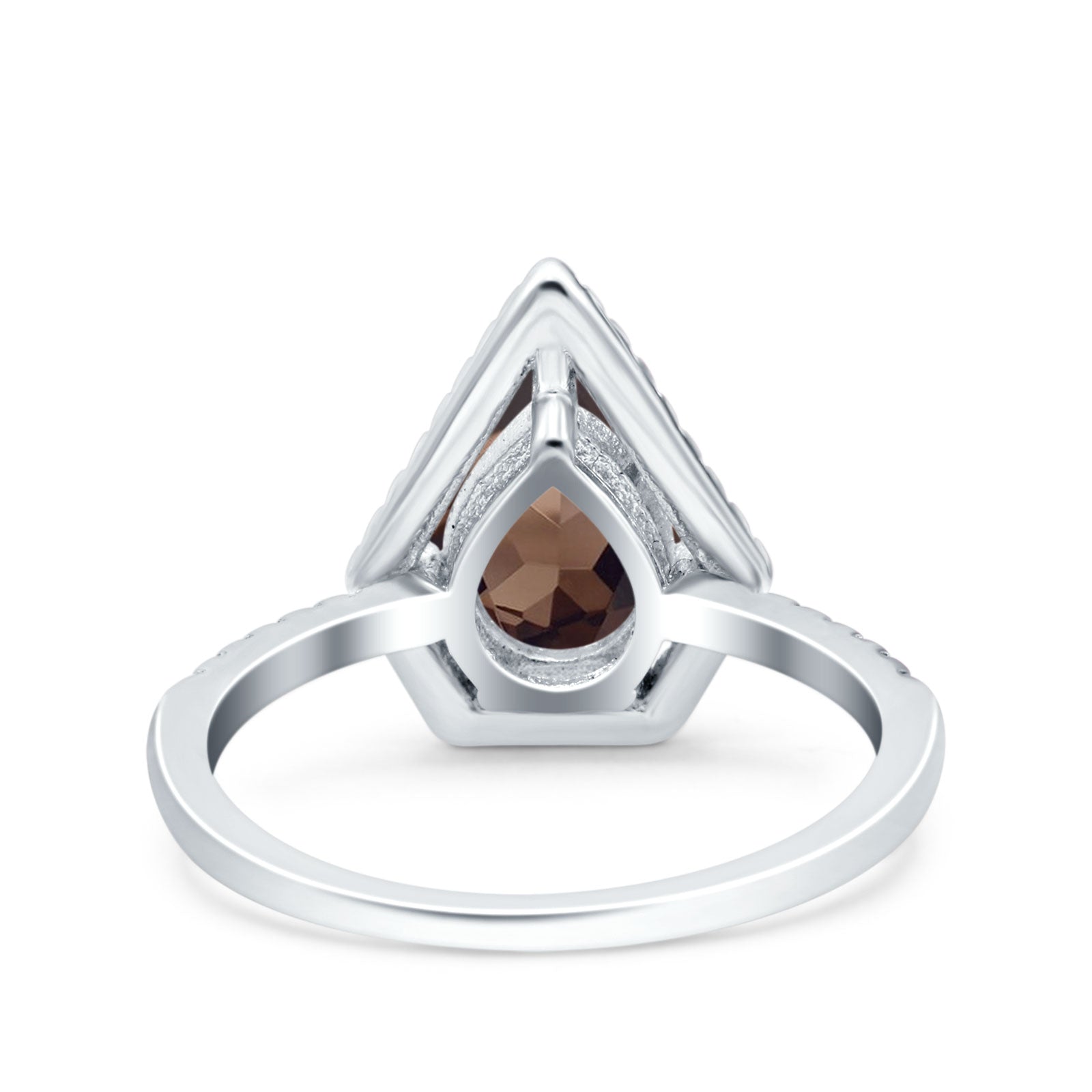 Pear Teardrop Natural Chocolate Smoky Quartz Pentagon Shaped Ring 925 Sterling Silver