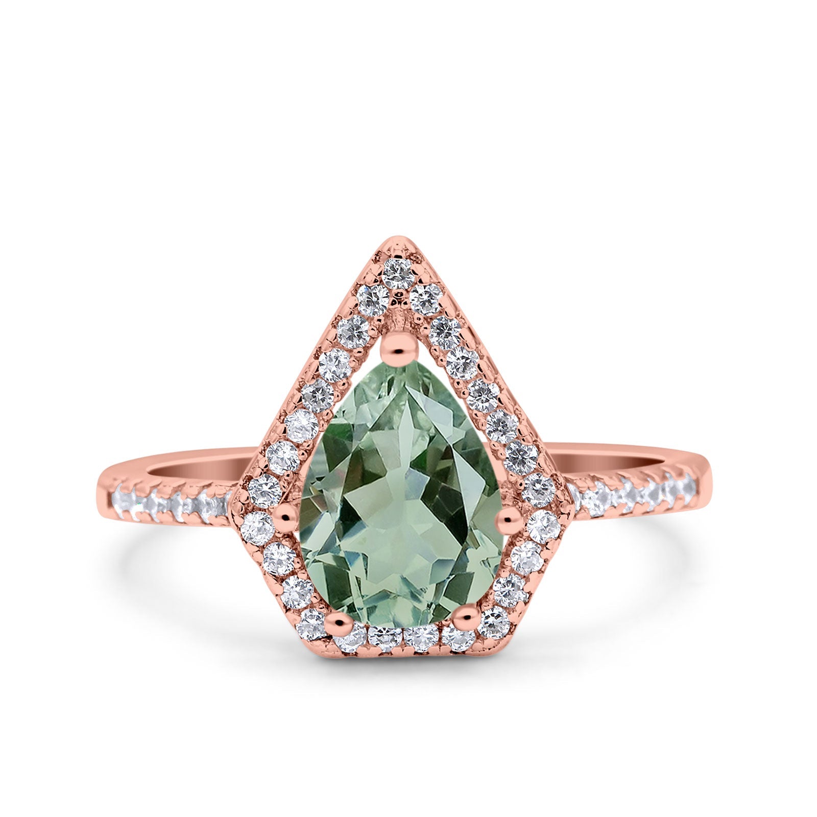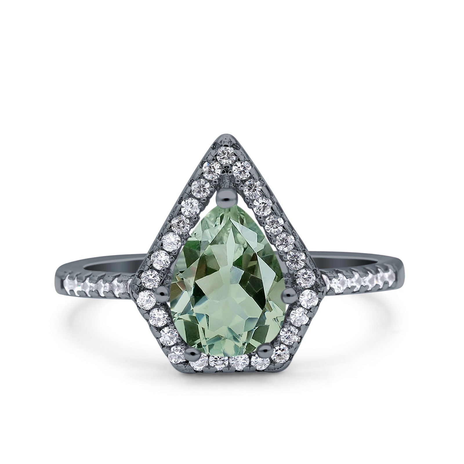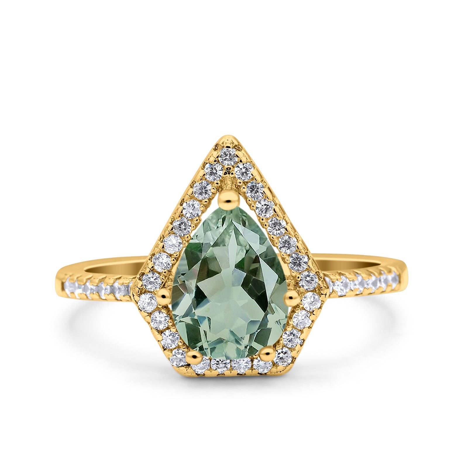 Pear Teardrop Natural Green Amethyst Prasiolite Pentagon Shaped Ring 925 Sterling Silver