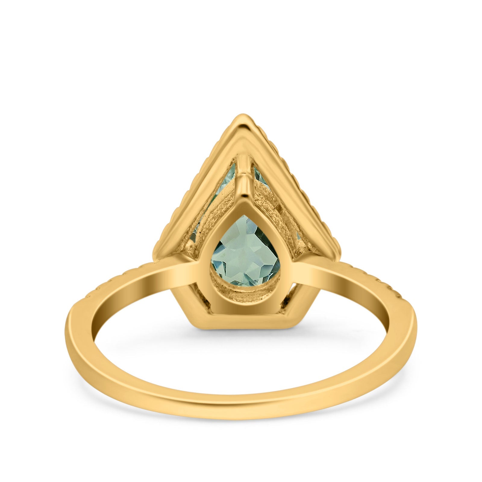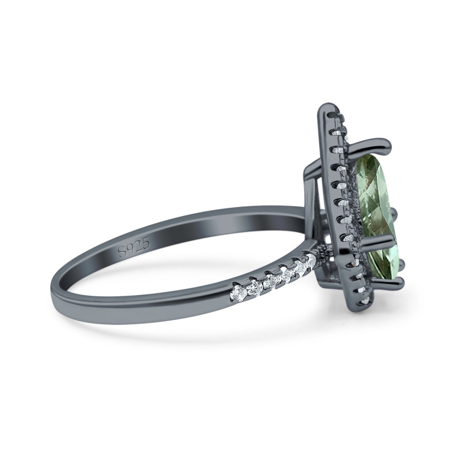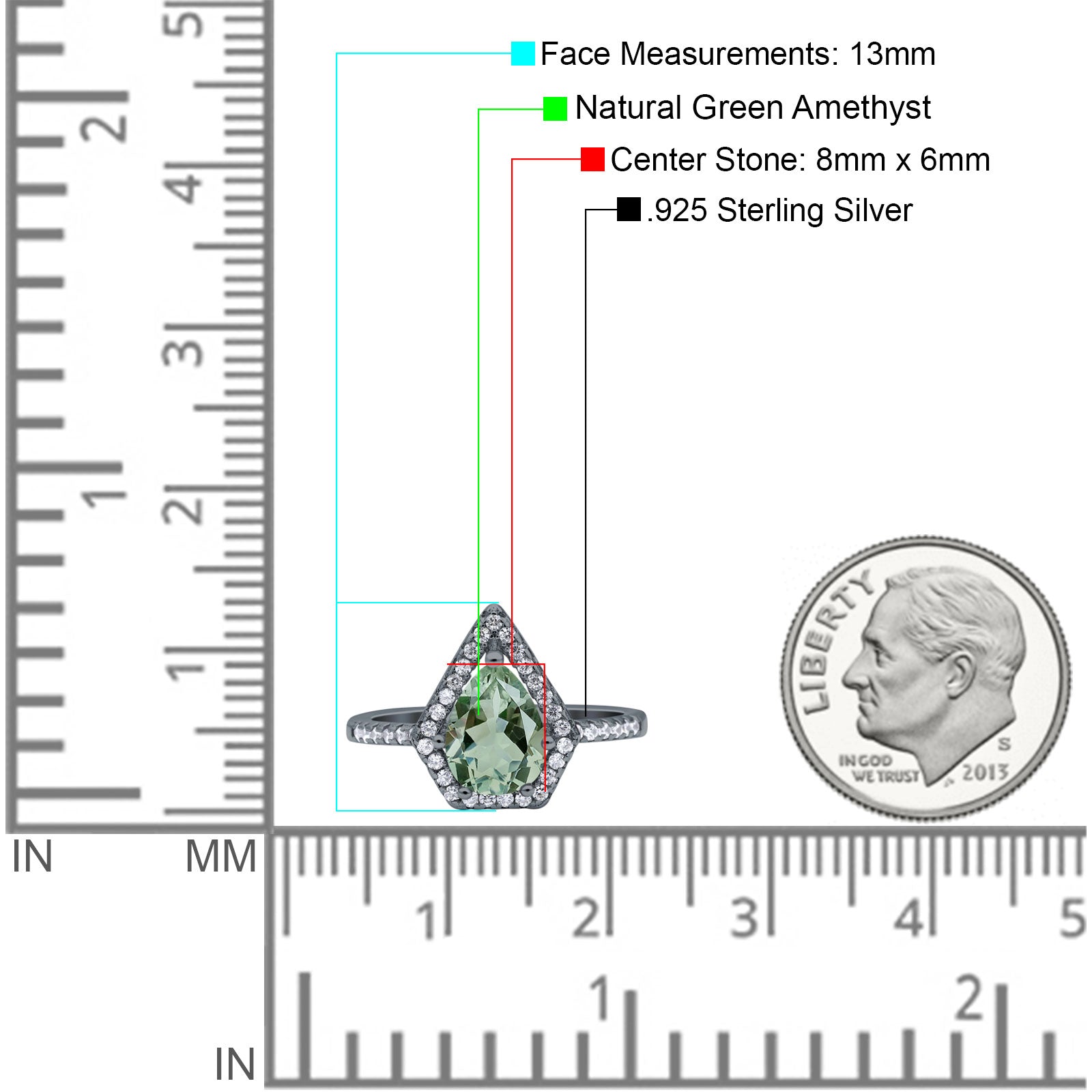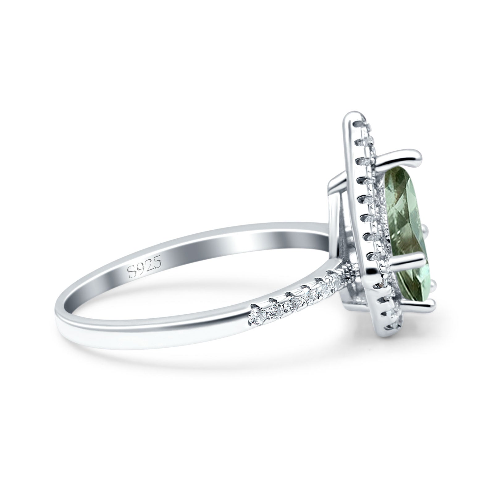 Pear Teardrop Natural Green Amethyst Prasiolite Pentagon Shaped Ring 925 Sterling Silver