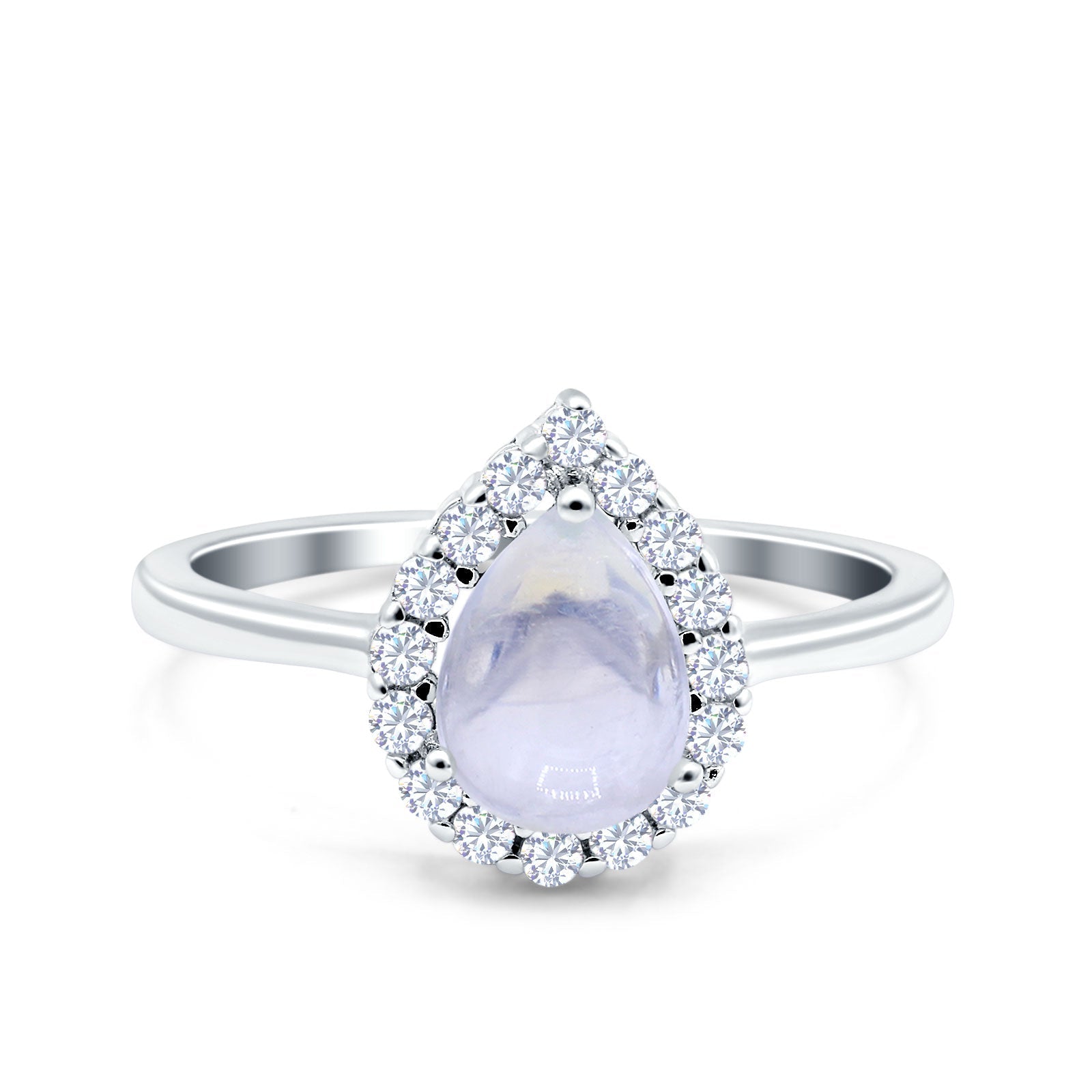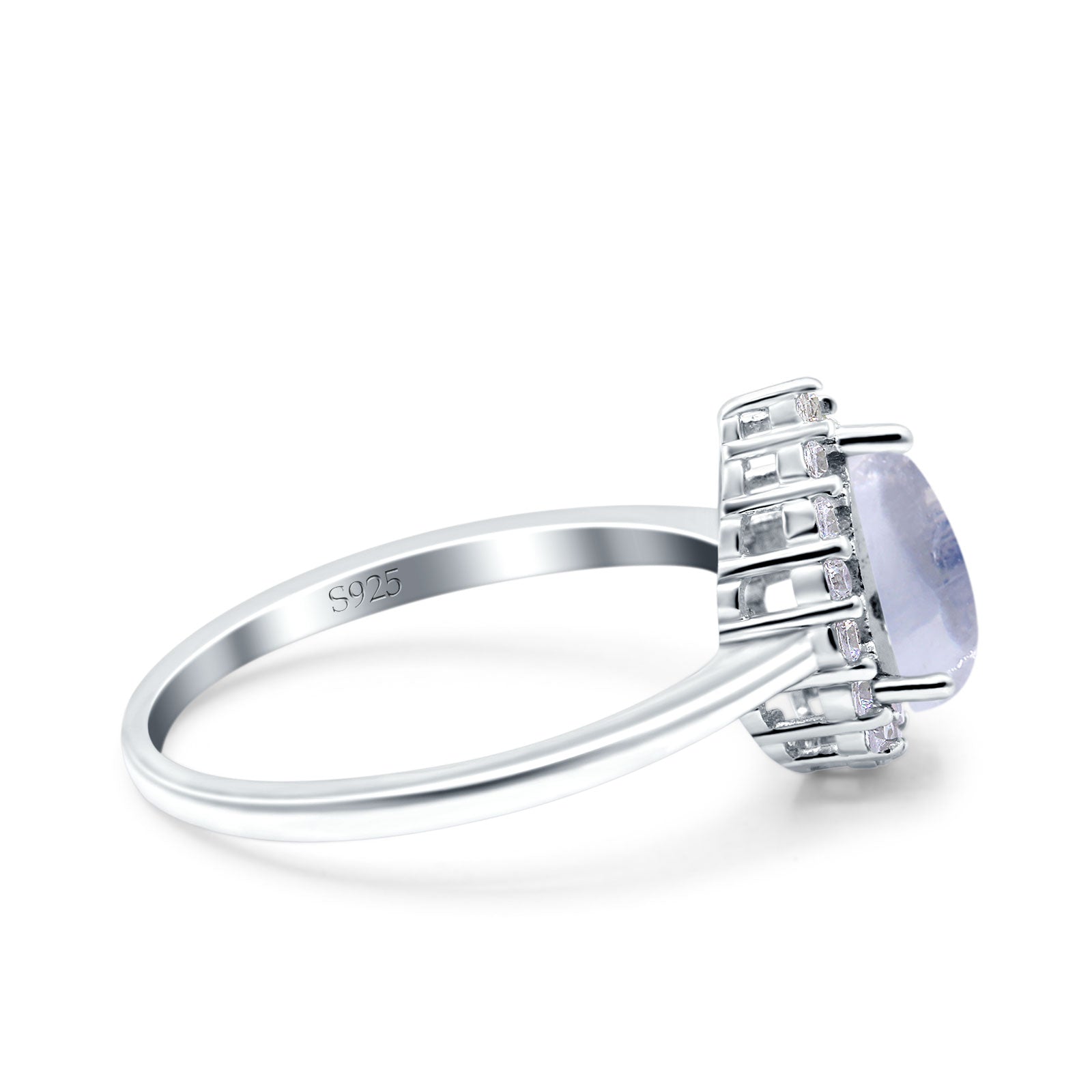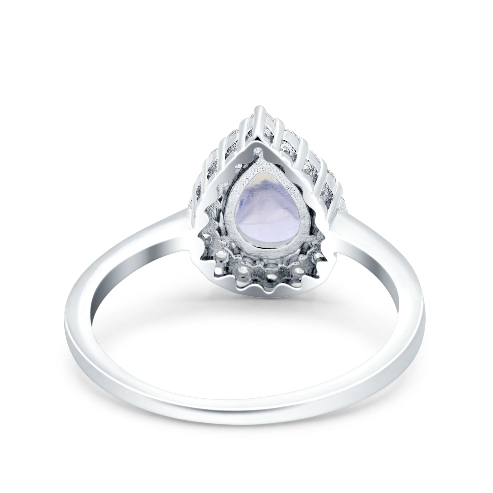 Pear Teardrop Natural Moonstone Halo Ring 925 Sterling Silver