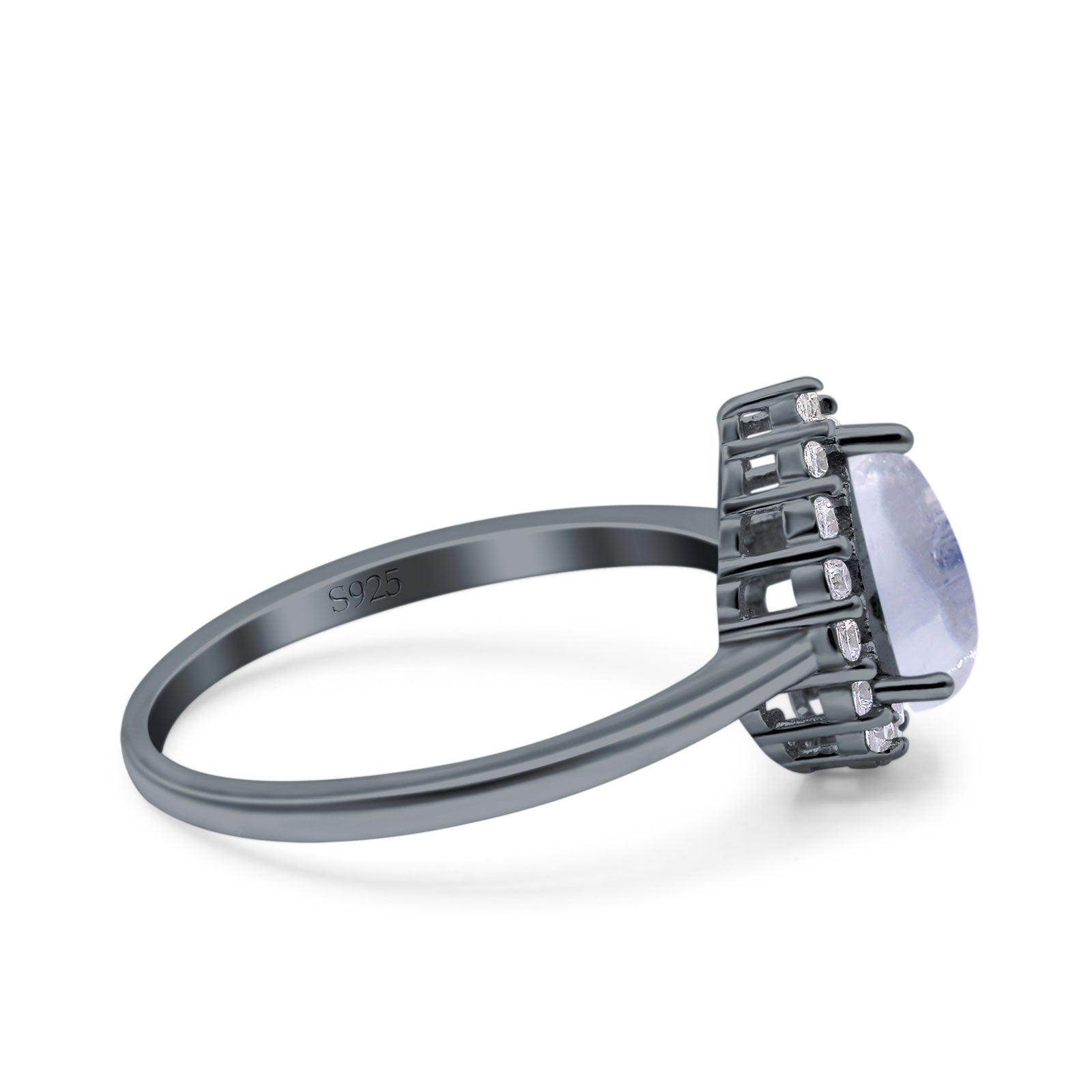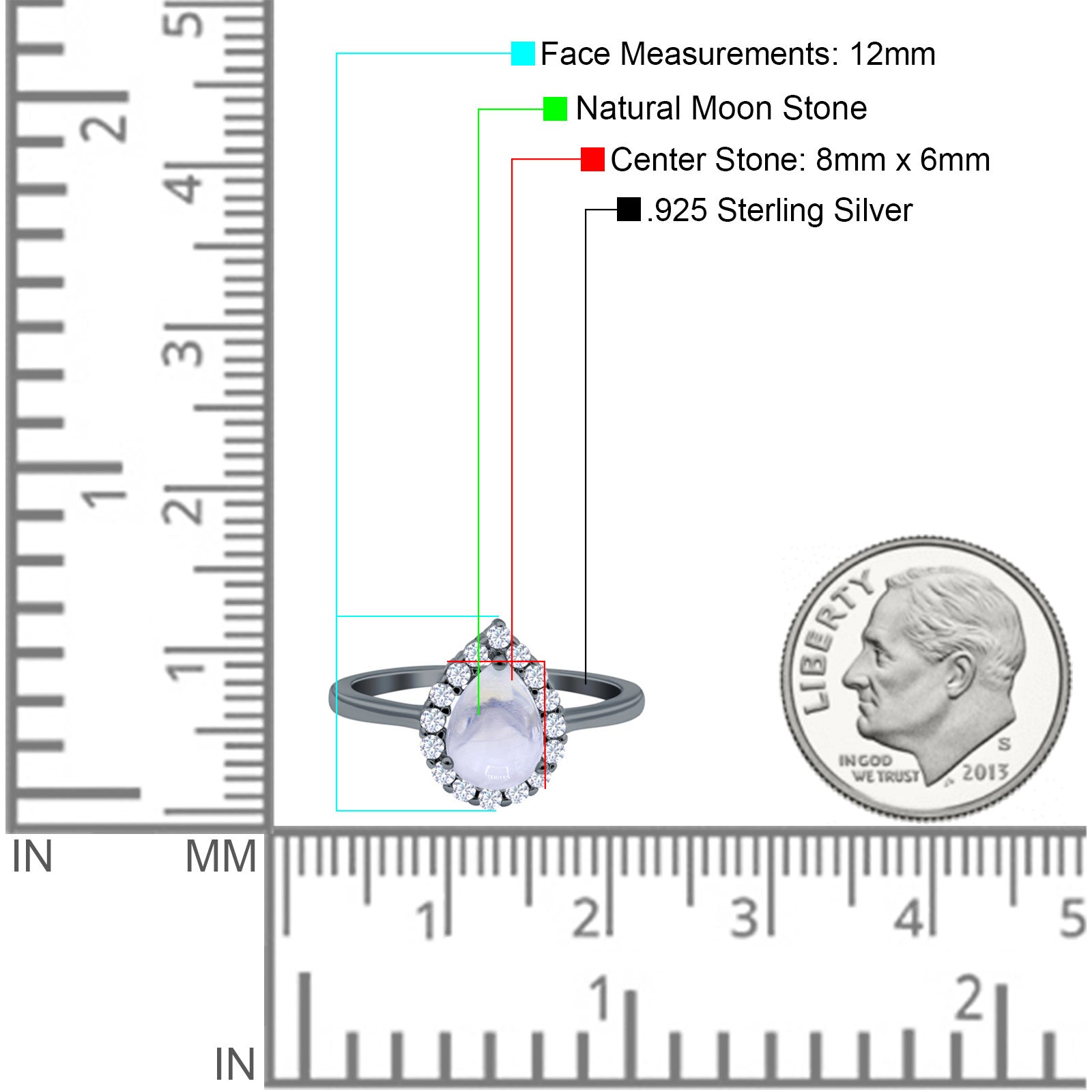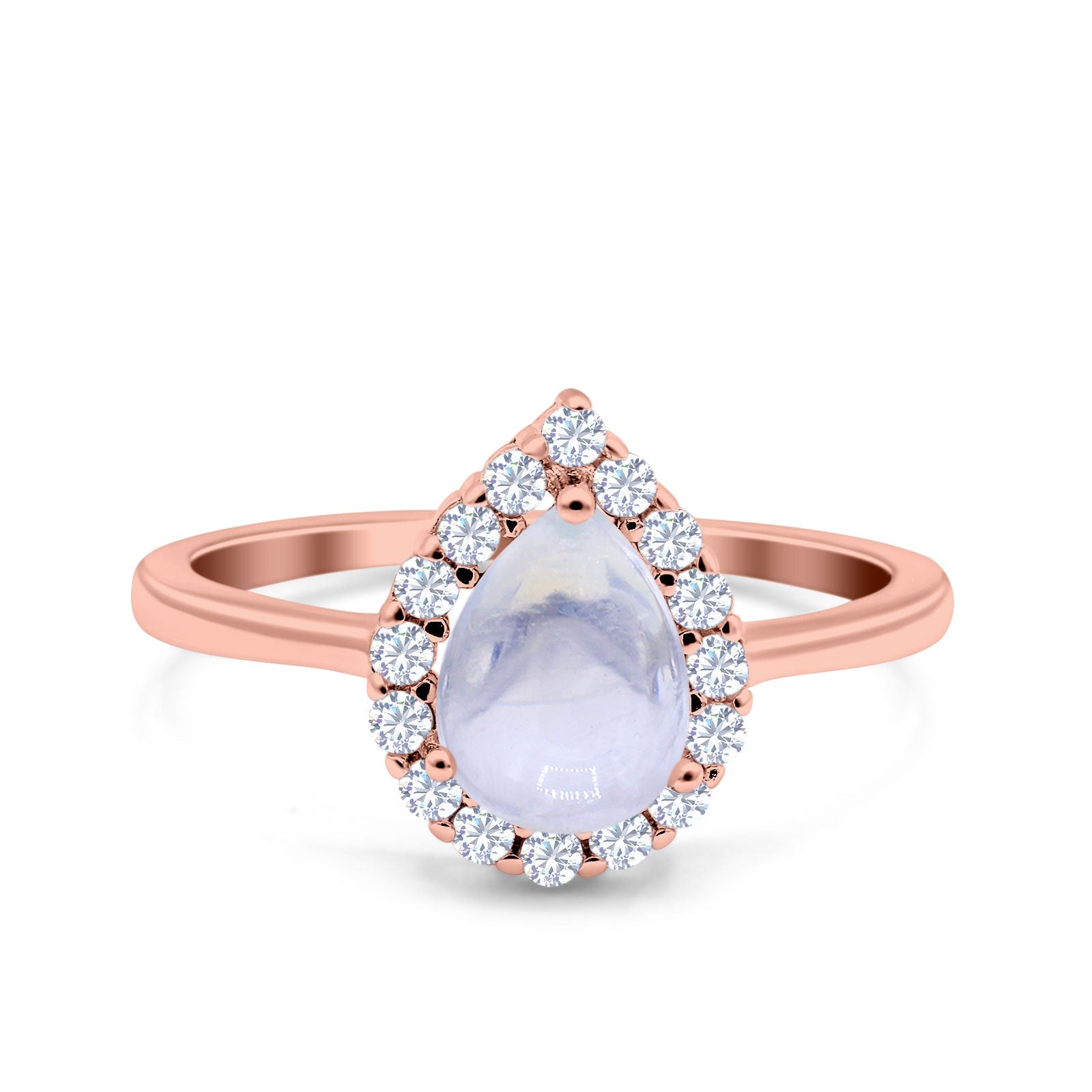 Pear Teardrop Natural Moonstone Halo Ring 925 Sterling Silver