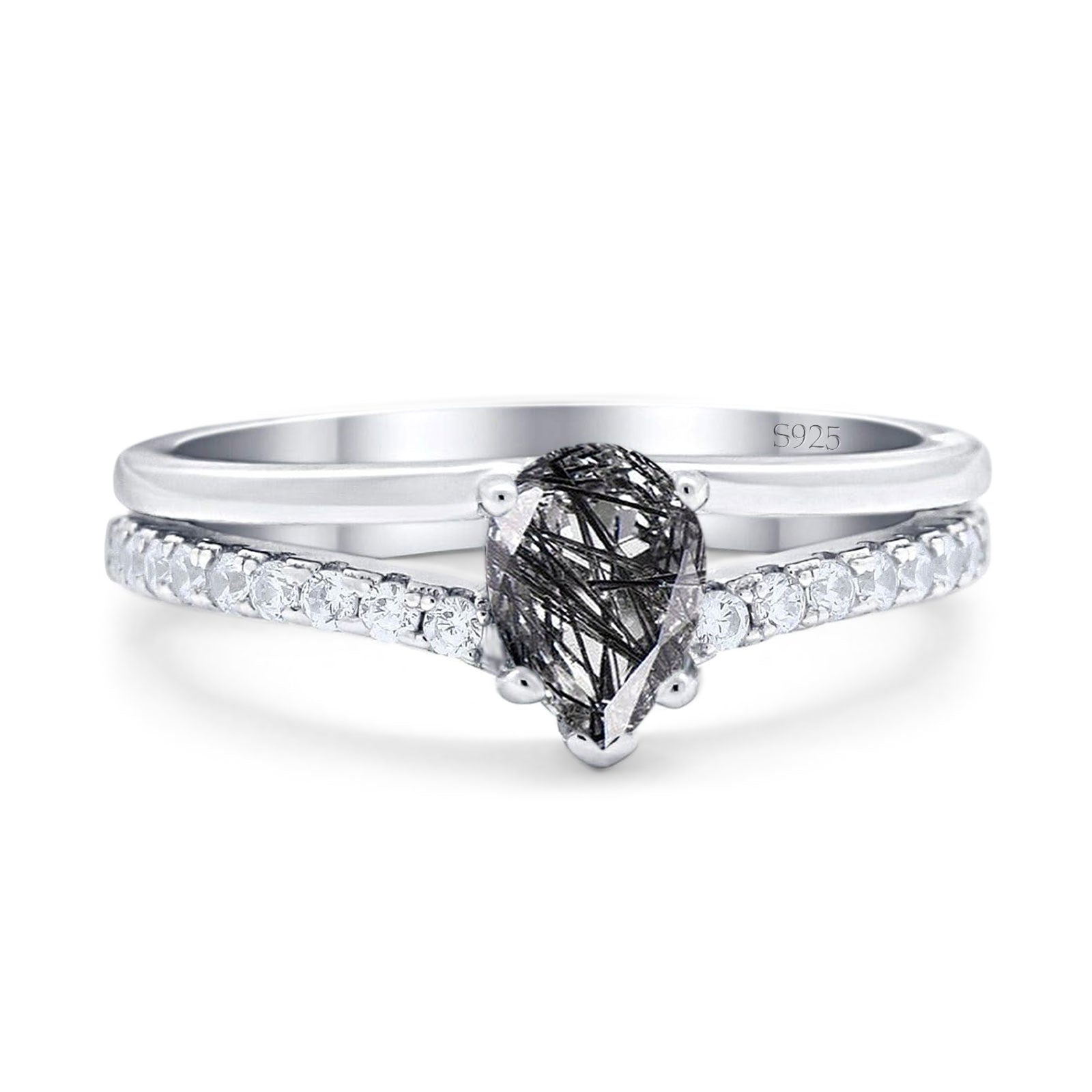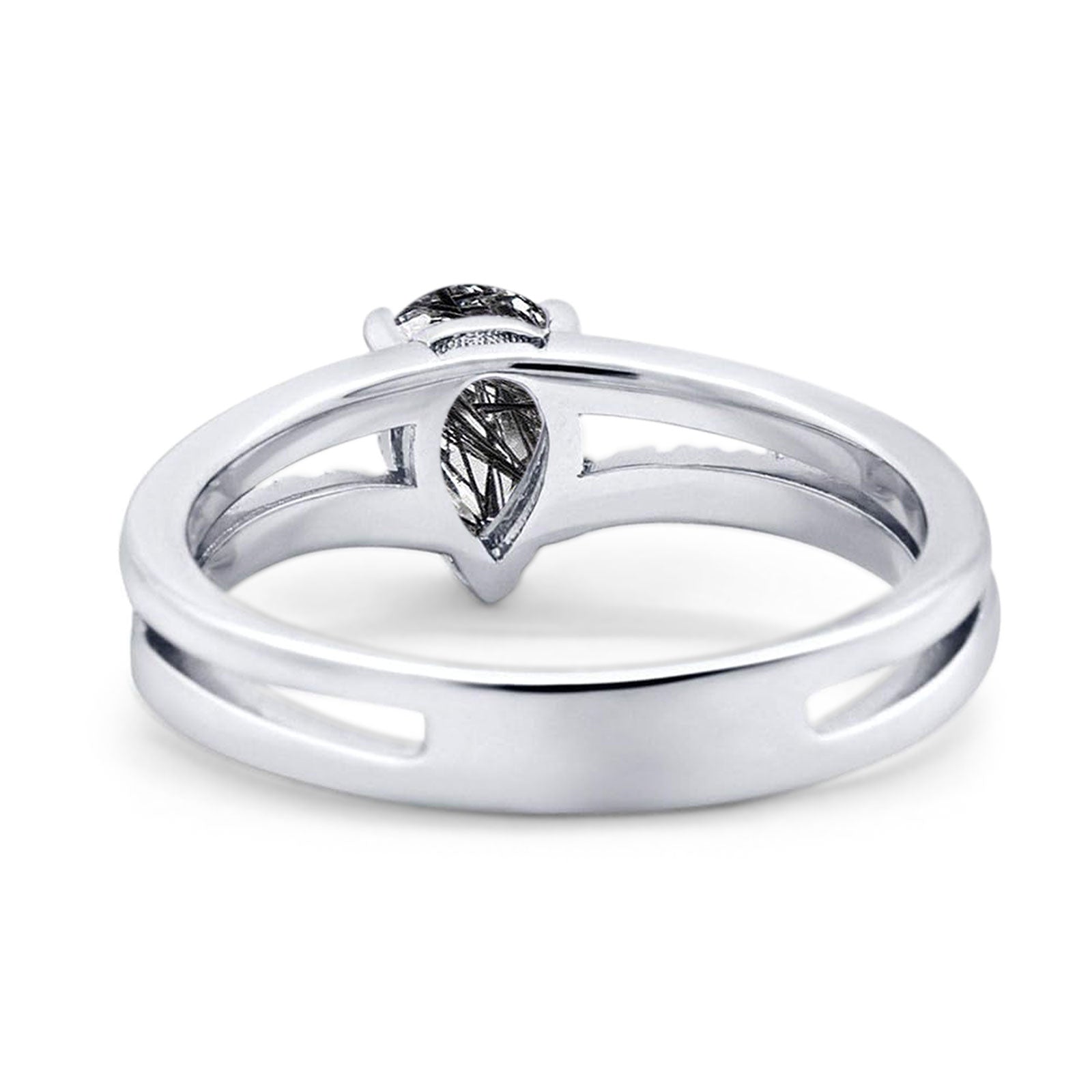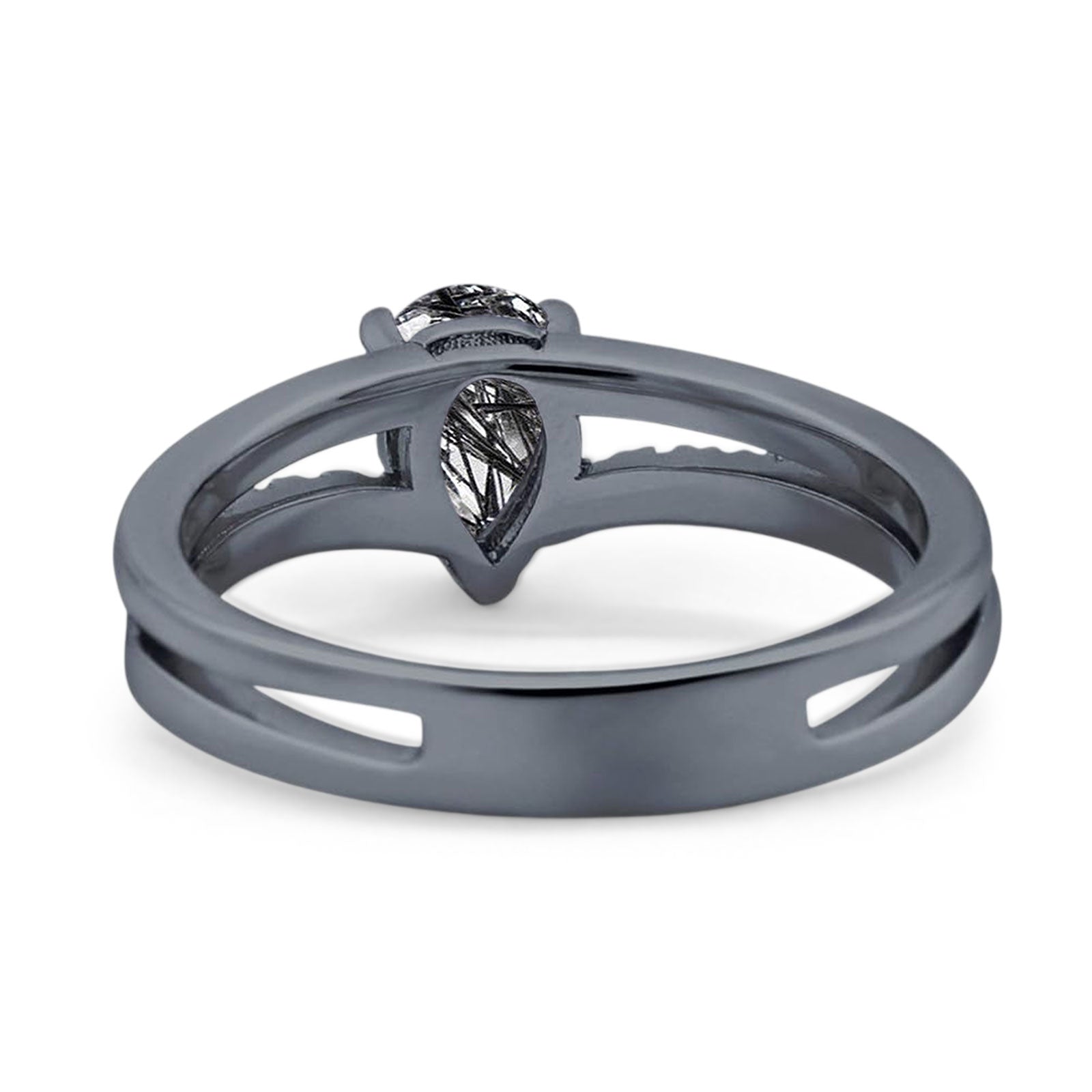 Pear Teardrop Natural Rutilated Quartz Wedding Ring 925 Sterling Silver