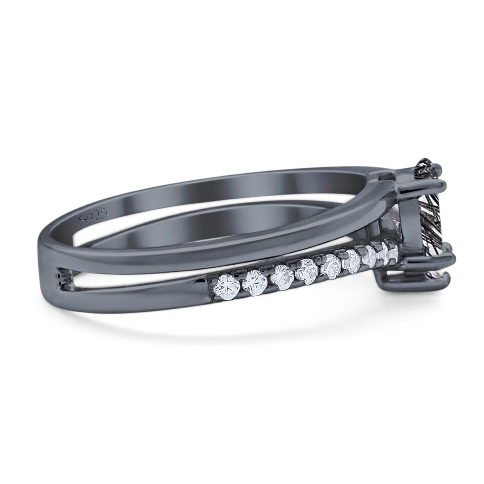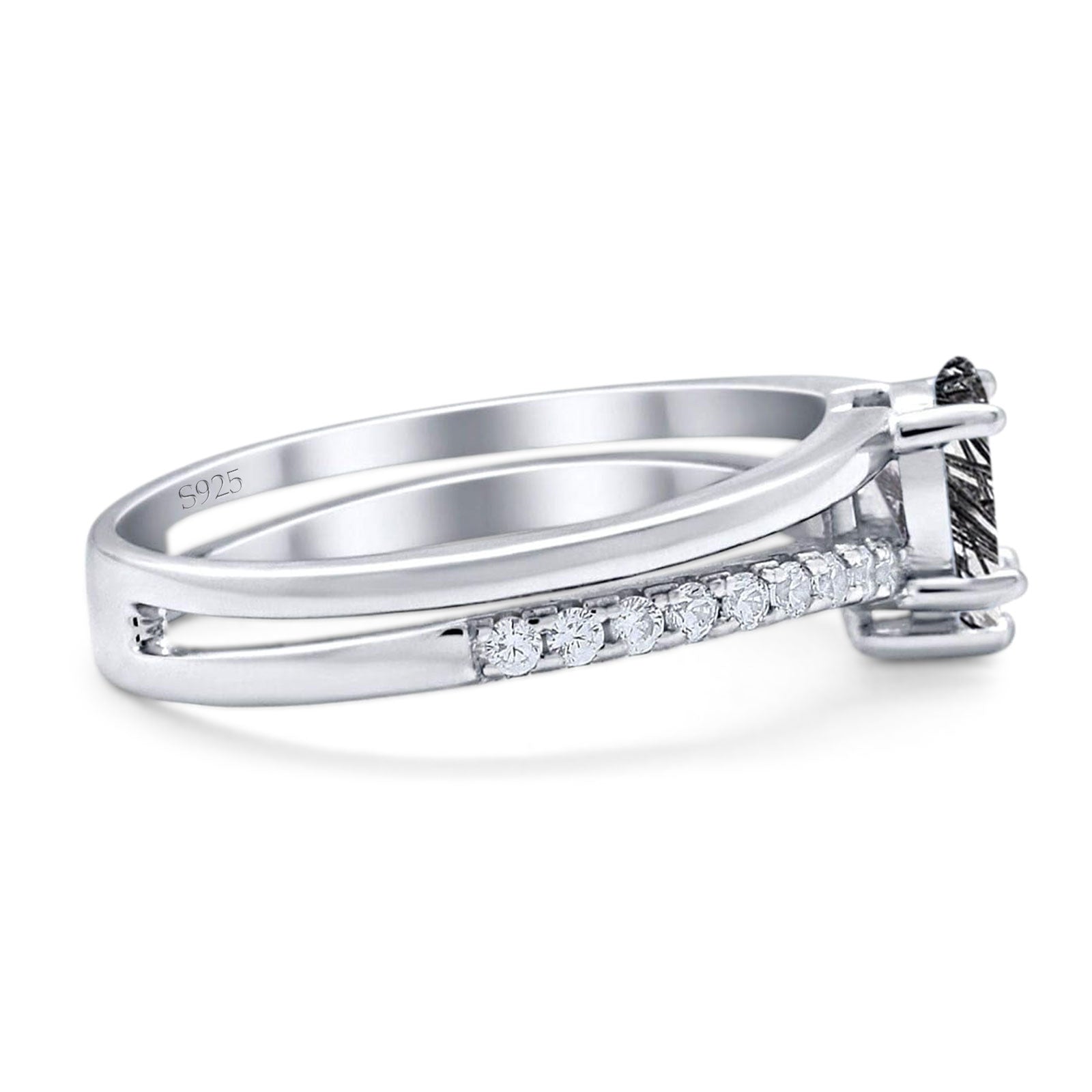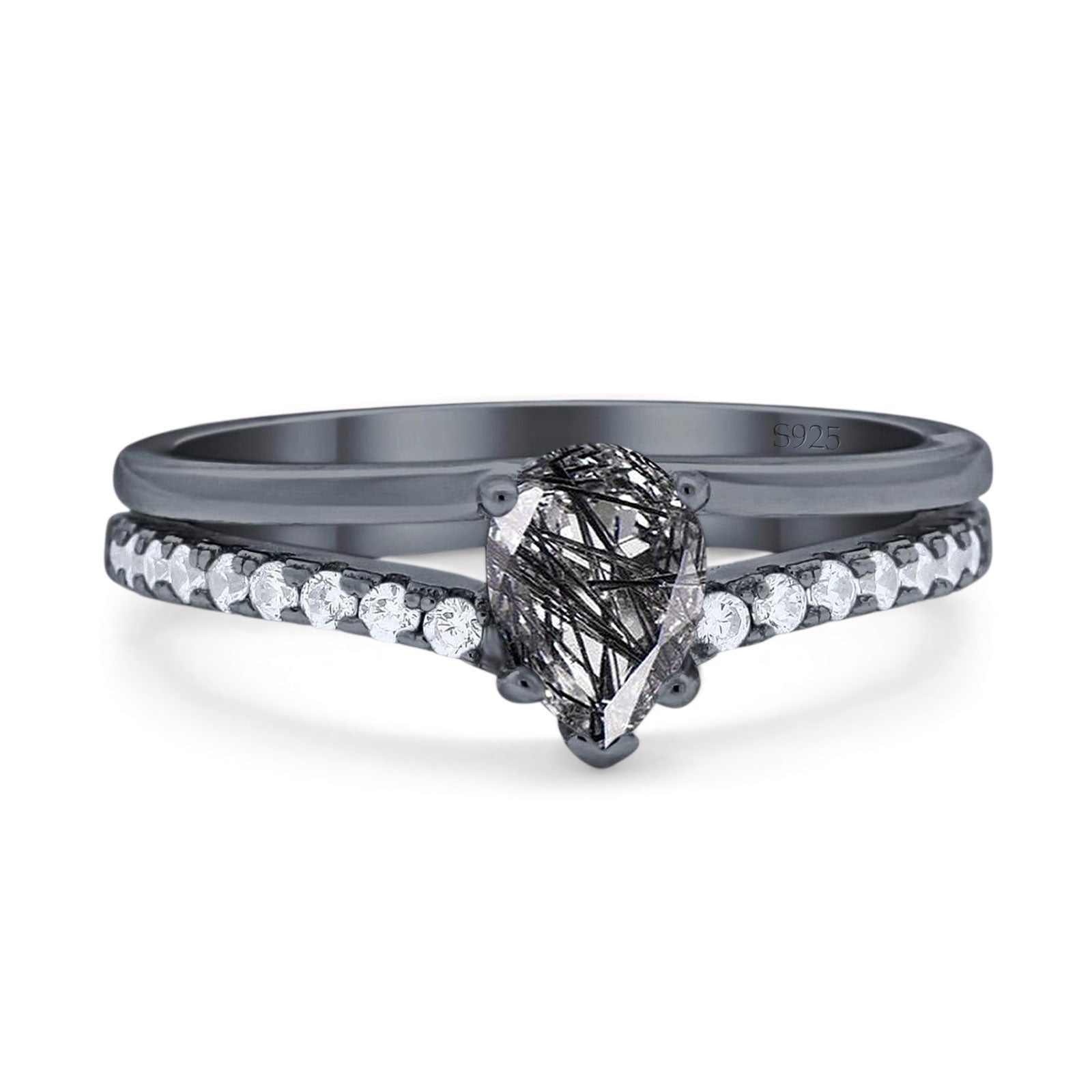 Pear Teardrop Natural Rutilated Quartz Wedding Ring 925 Sterling Silver