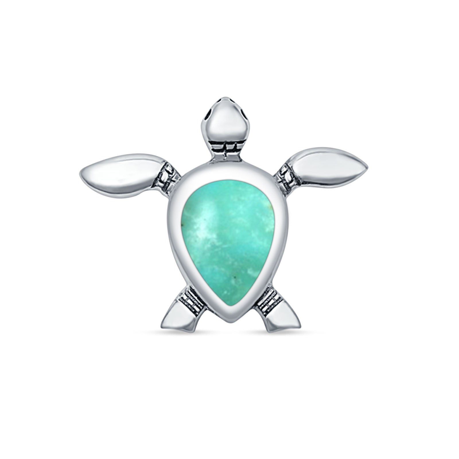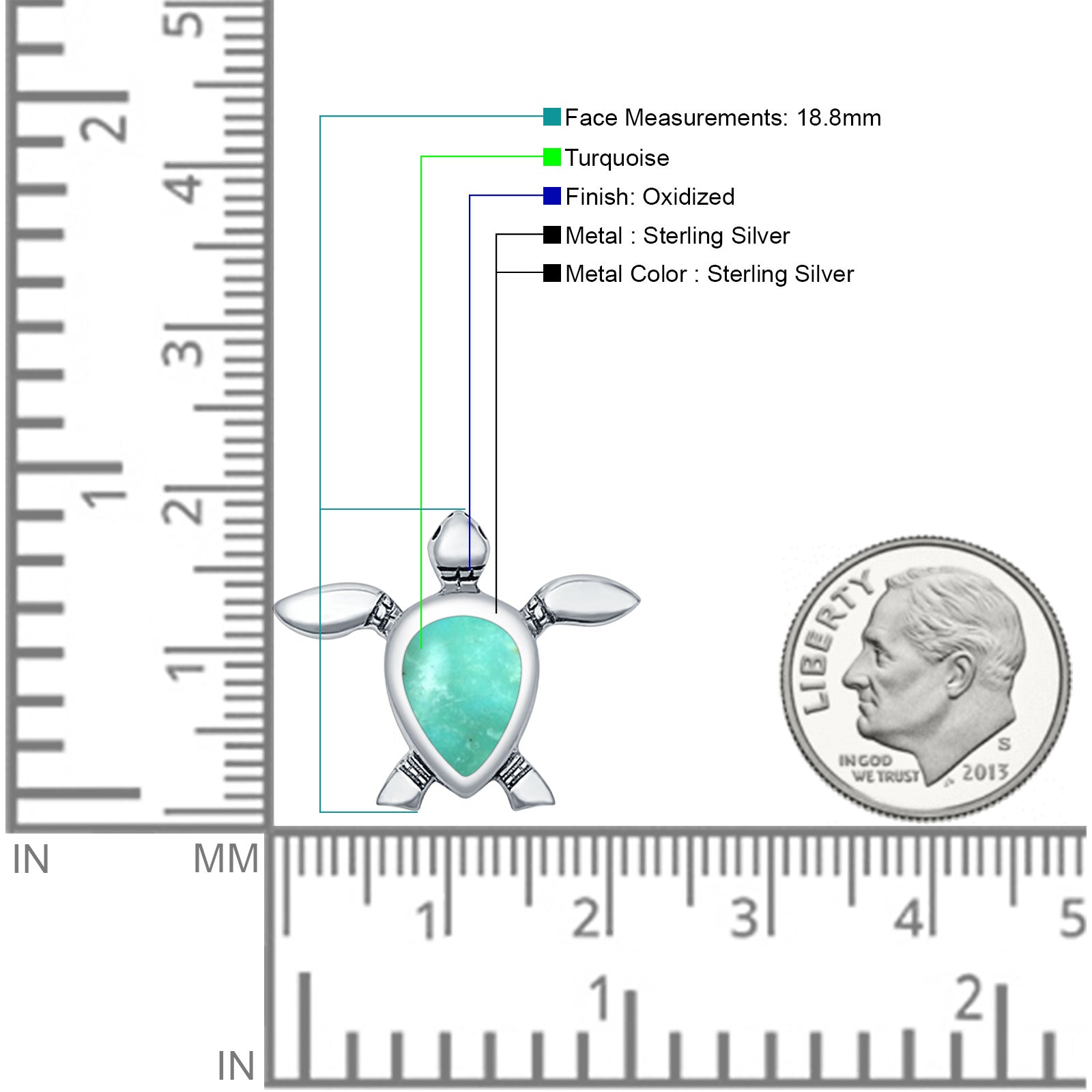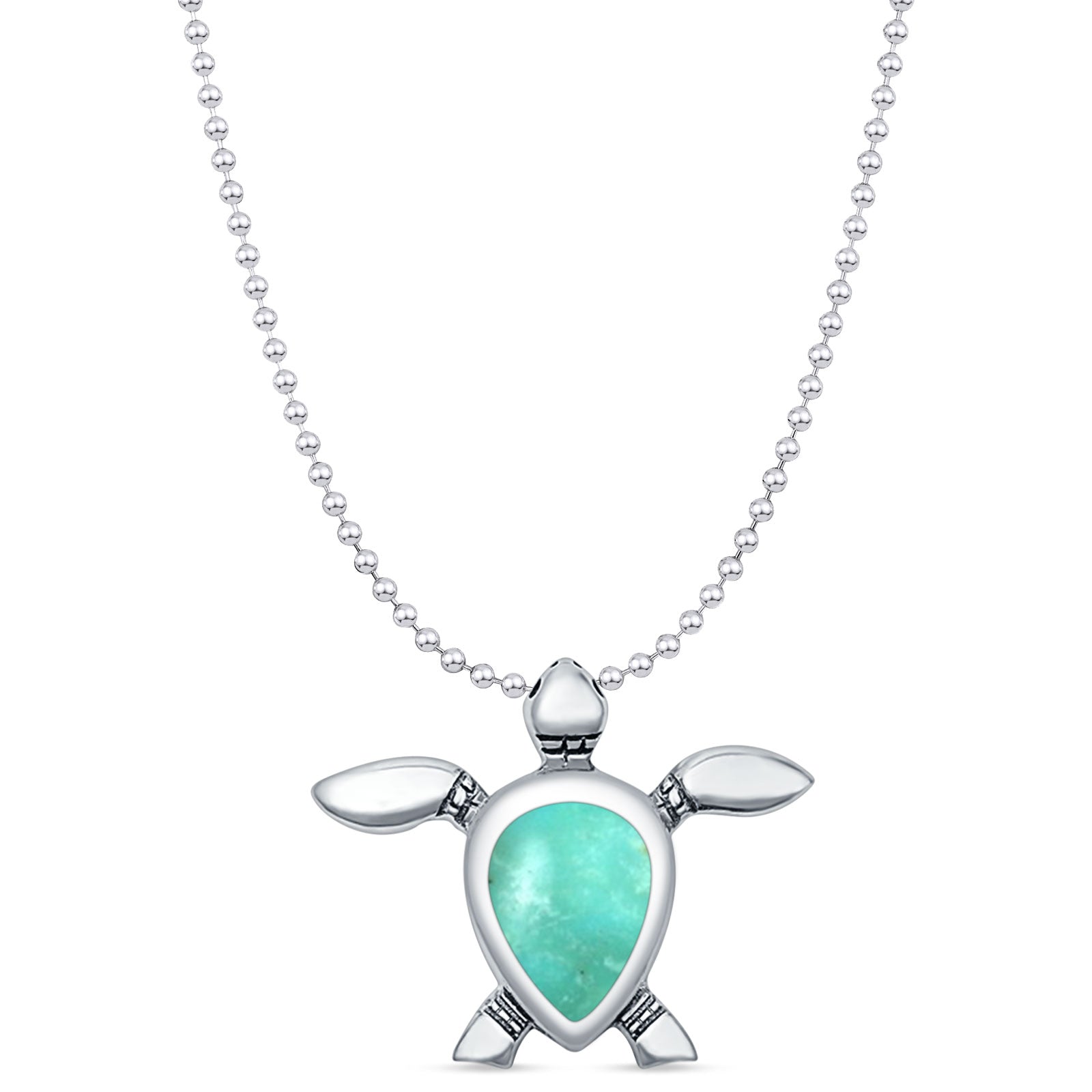 Pear Turquoise Turtle Pendant Bead Chain Necklace Oxidized 925 Sterling Silver