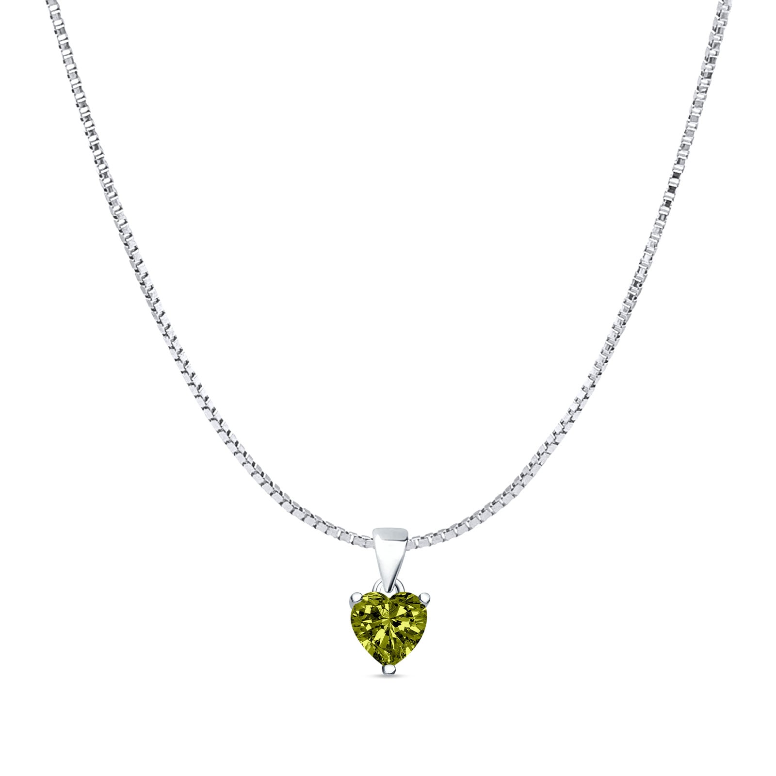 Peridot CZ Heart Pendant Box Chain Necklace 925 Sterling Silver