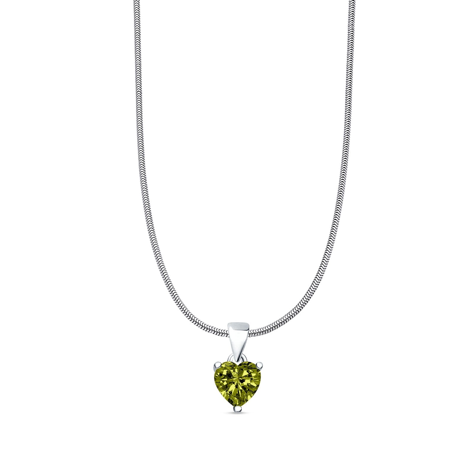 Peridot CZ Heart Pendant Snake Chain Necklace 925 Sterling Silver