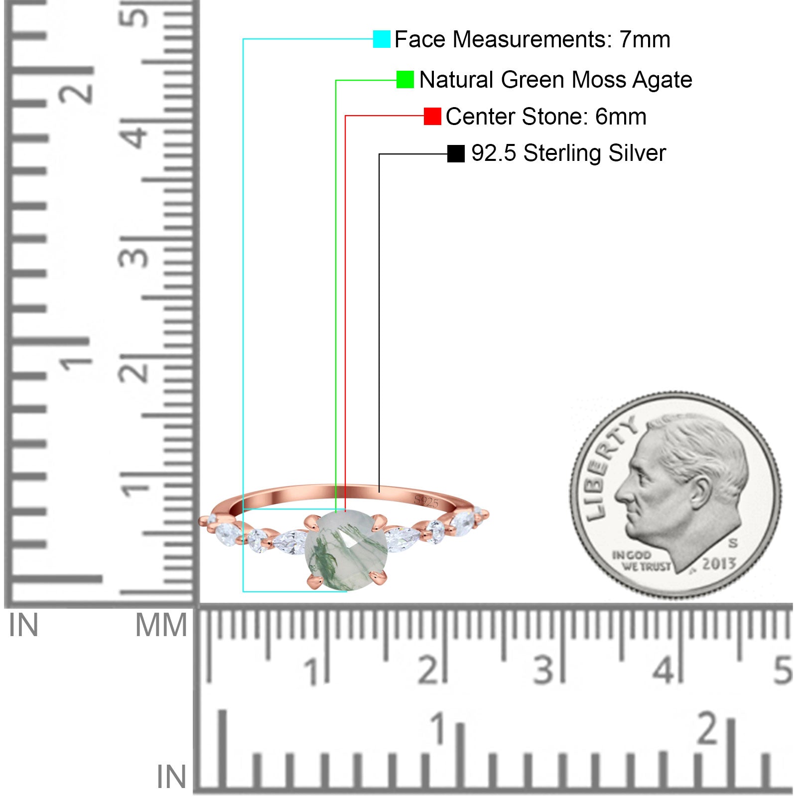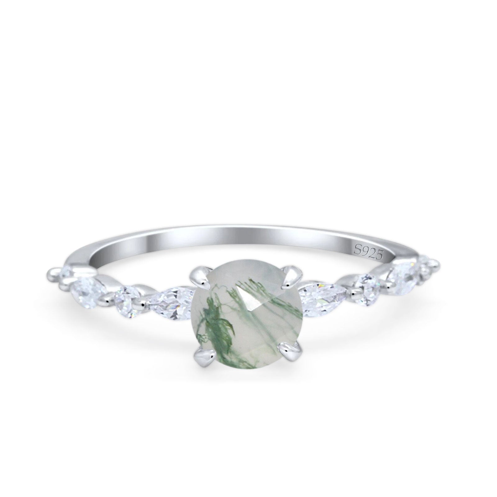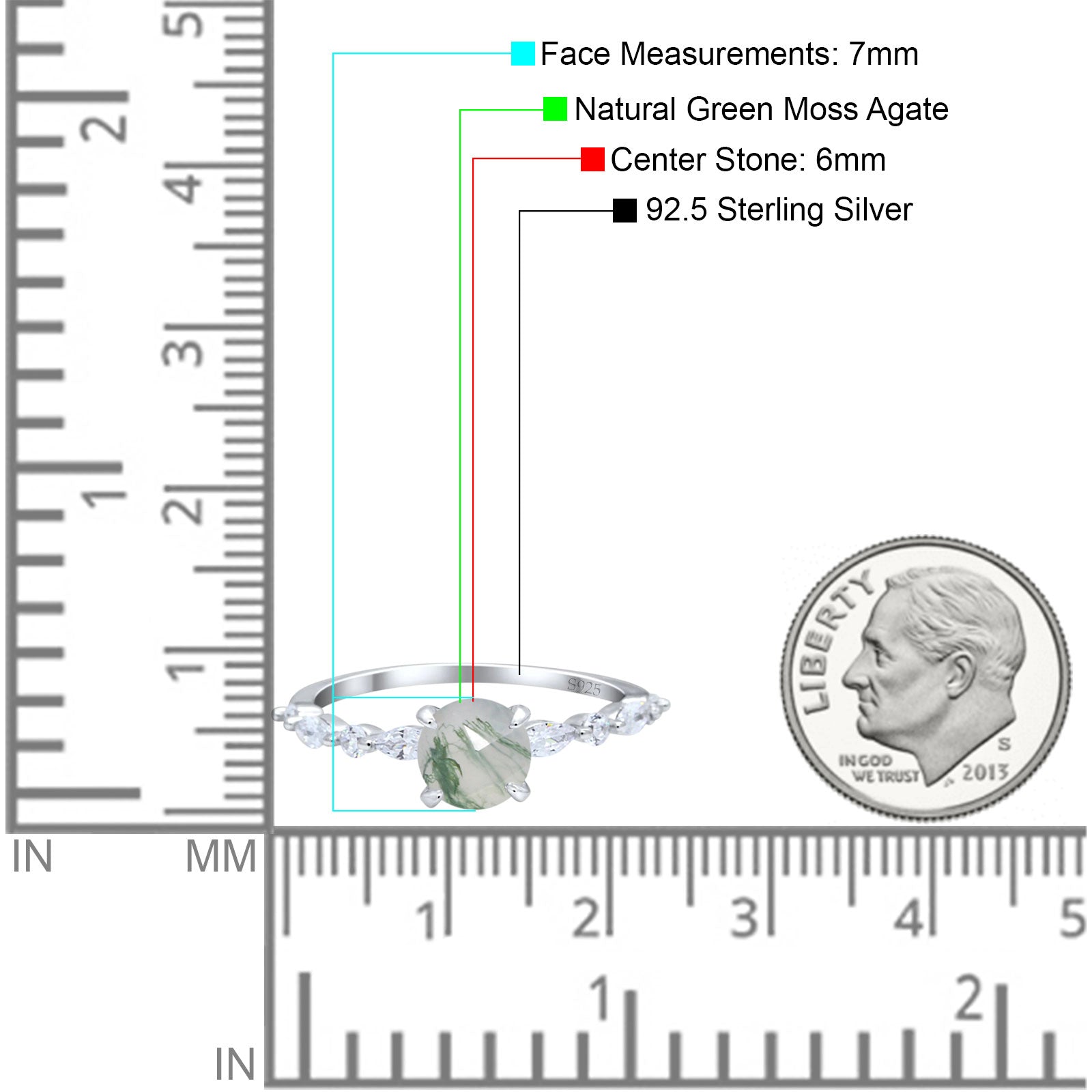 Petite Dainty Round Natural Green Moss Agate Ring 925 Sterling Silver