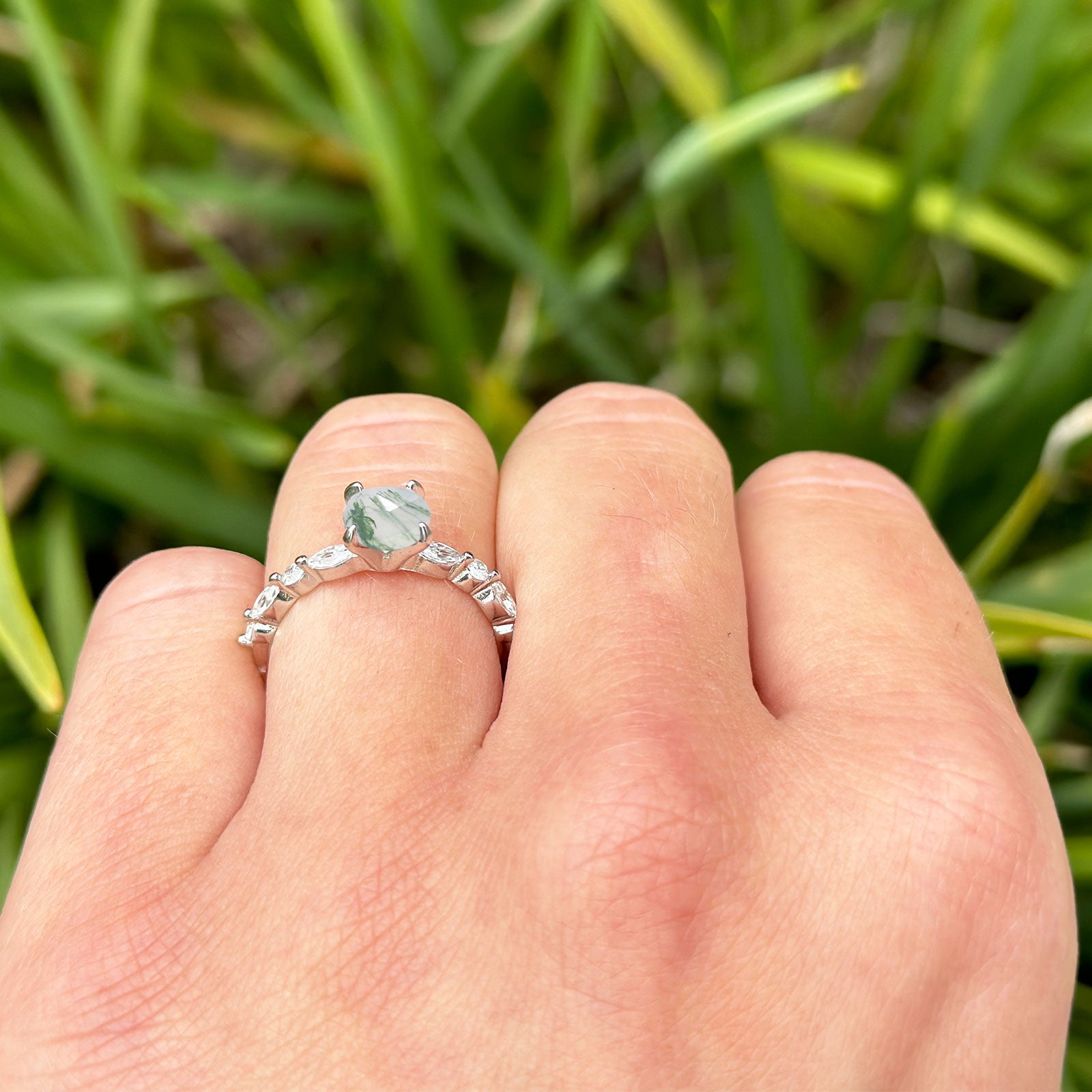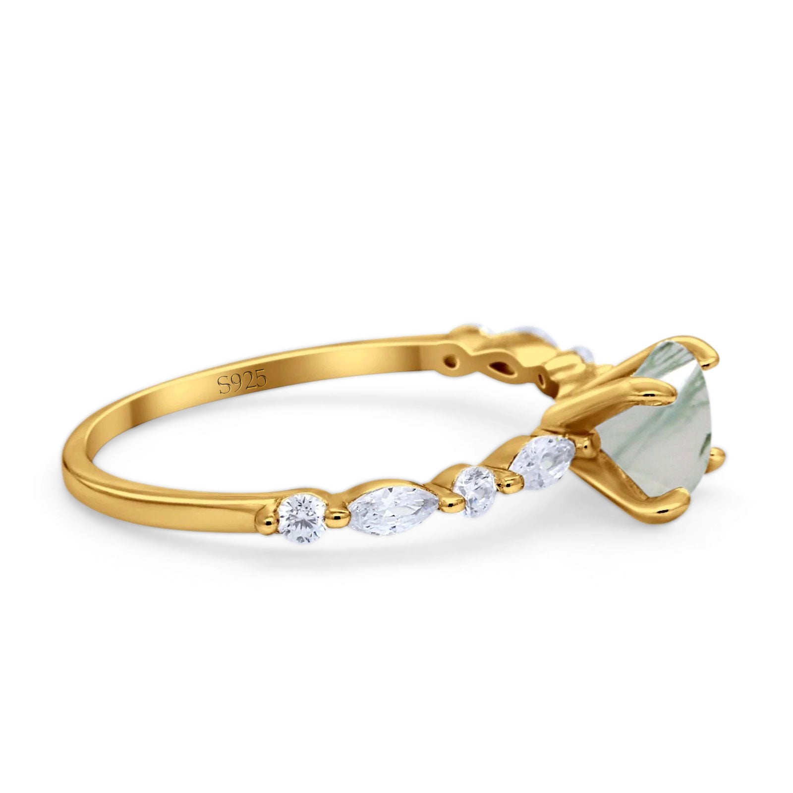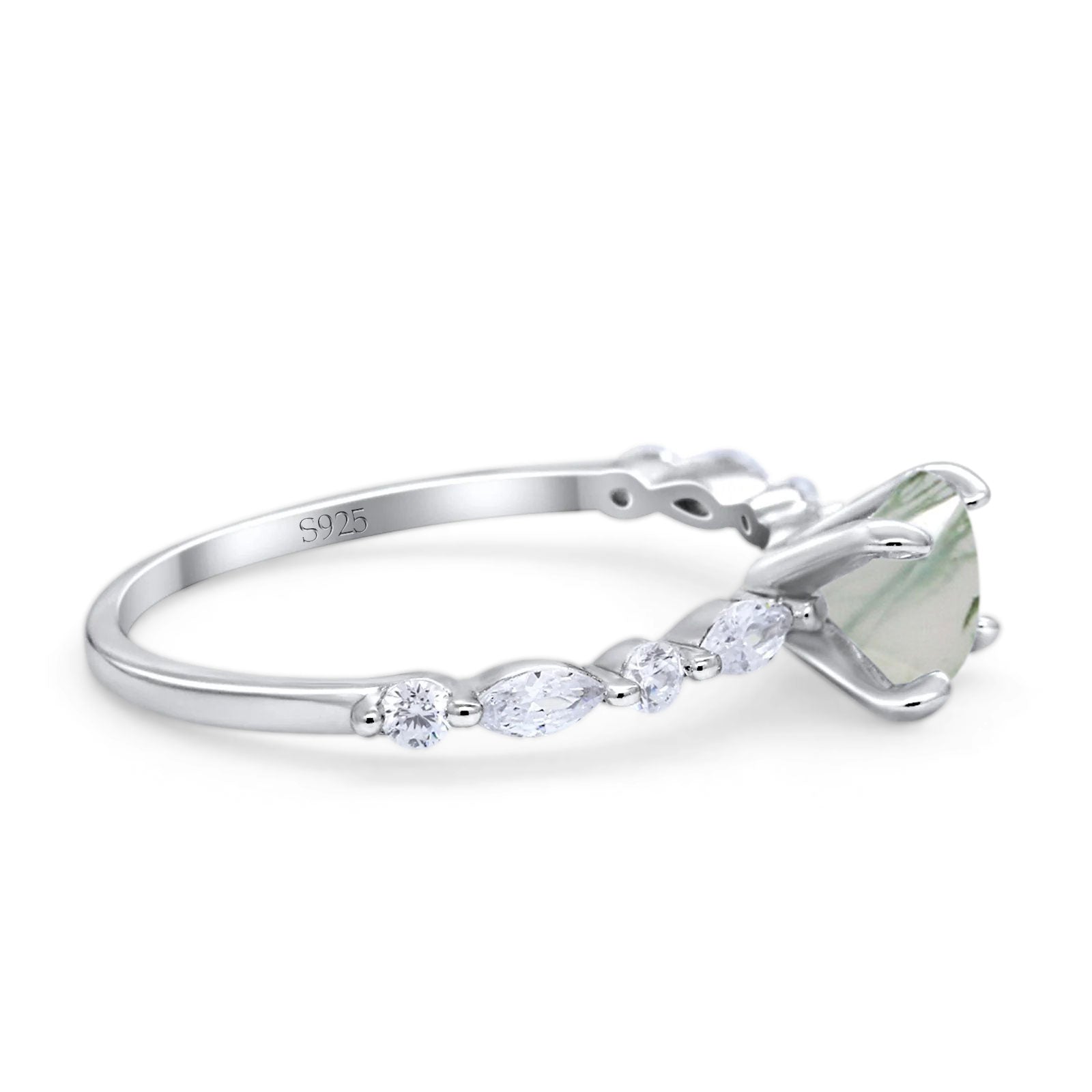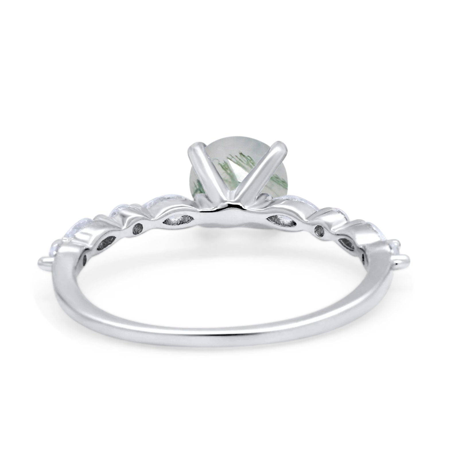 Petite Dainty Round Natural Green Moss Agate Ring 925 Sterling Silver