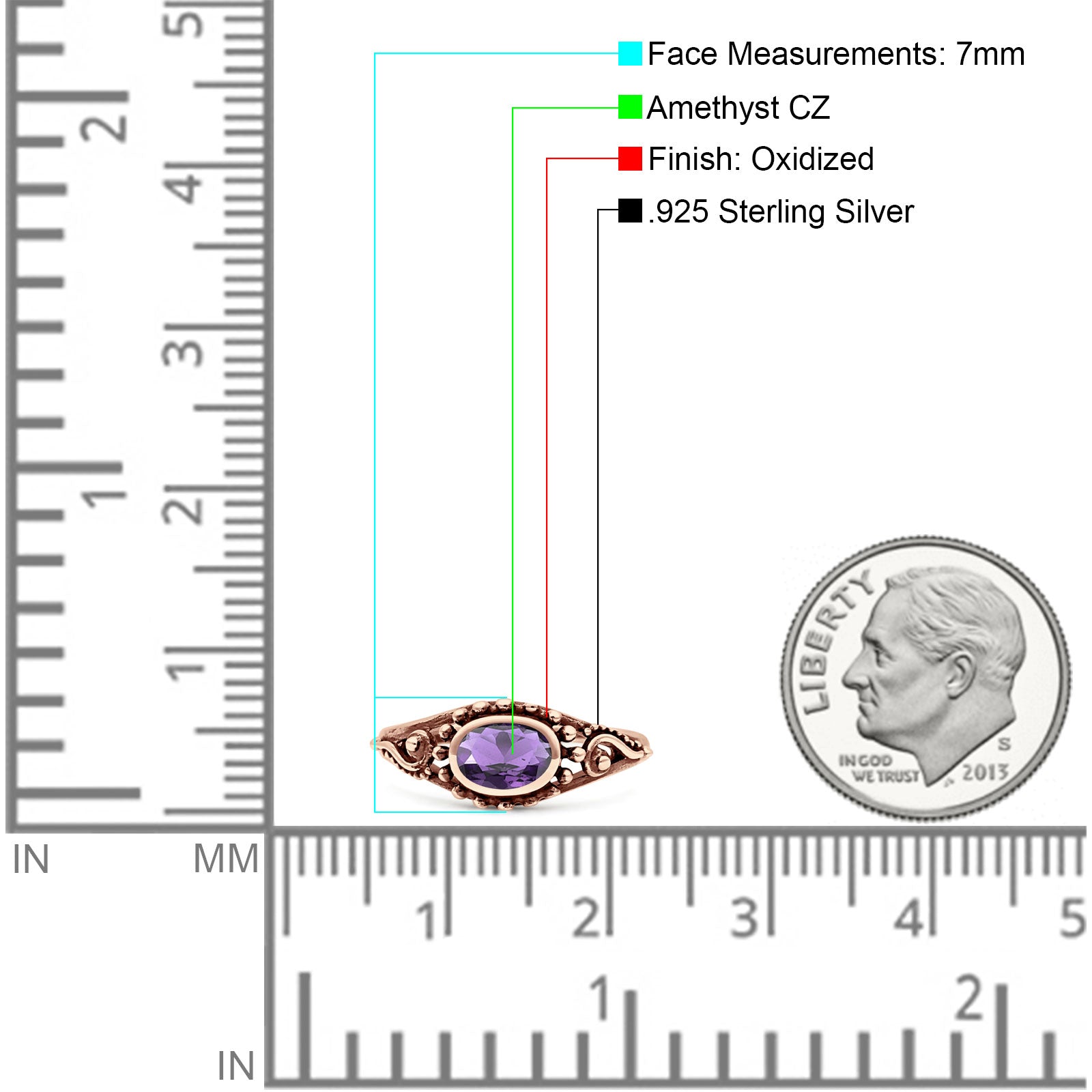 Metal Purity: 92.5% Sterling.