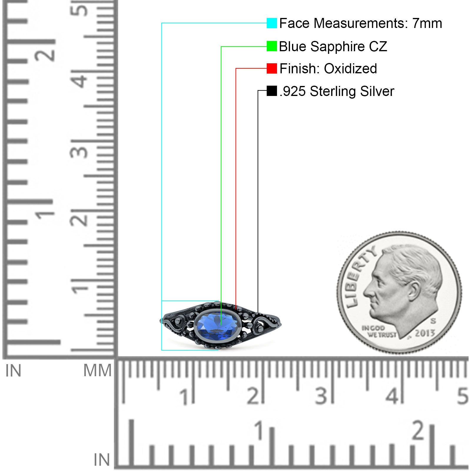 Black Tone, Simulated Blue Sapphire CZ