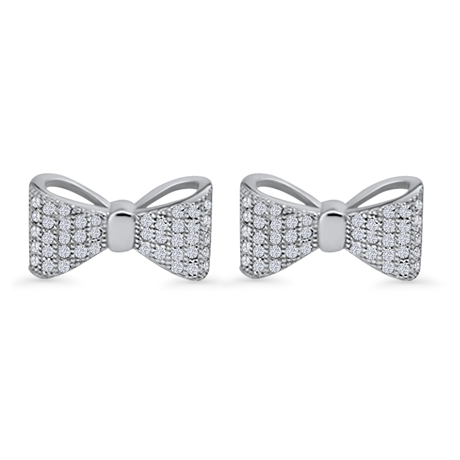 Design: Ribbon Bow knot Cluster CZ Stud Earrings.