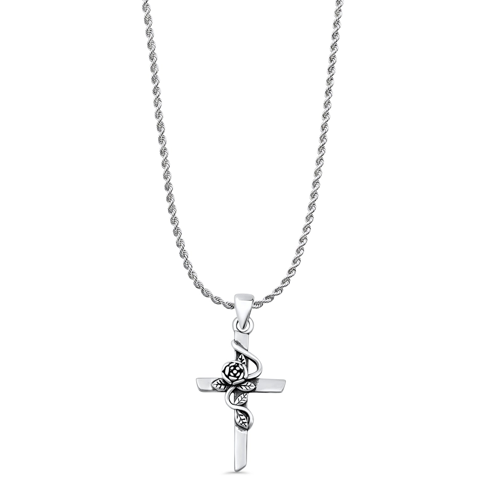 Style: Rose Flower & Cross Pendant Necklace