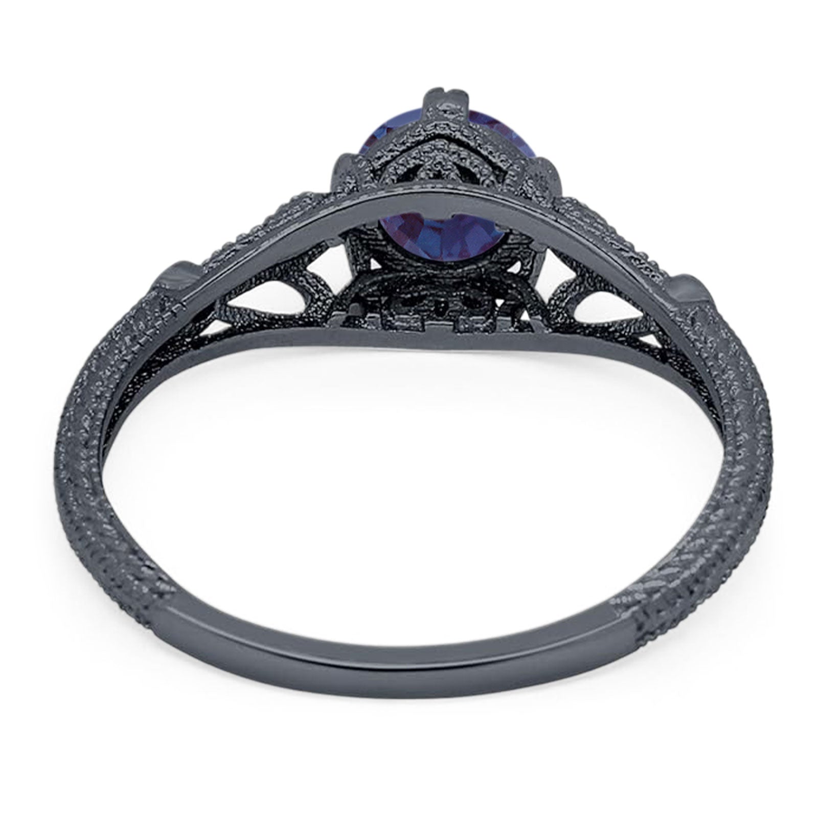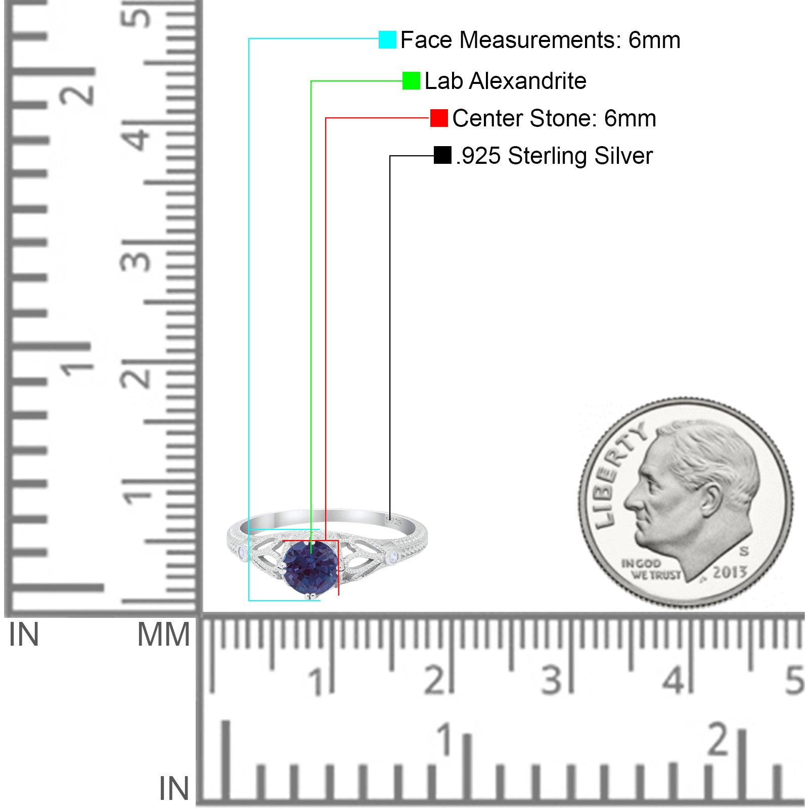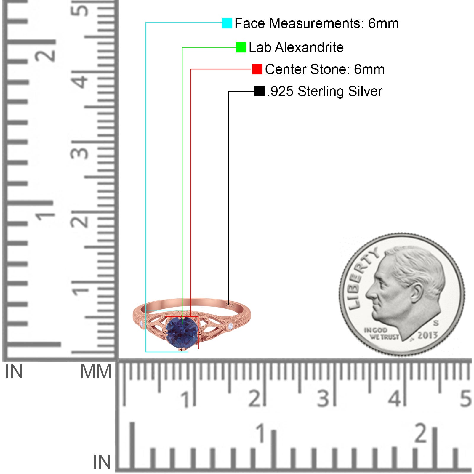 Round Lab Alexandrite Leaf Vintage Style Ring 925 Sterling Silver