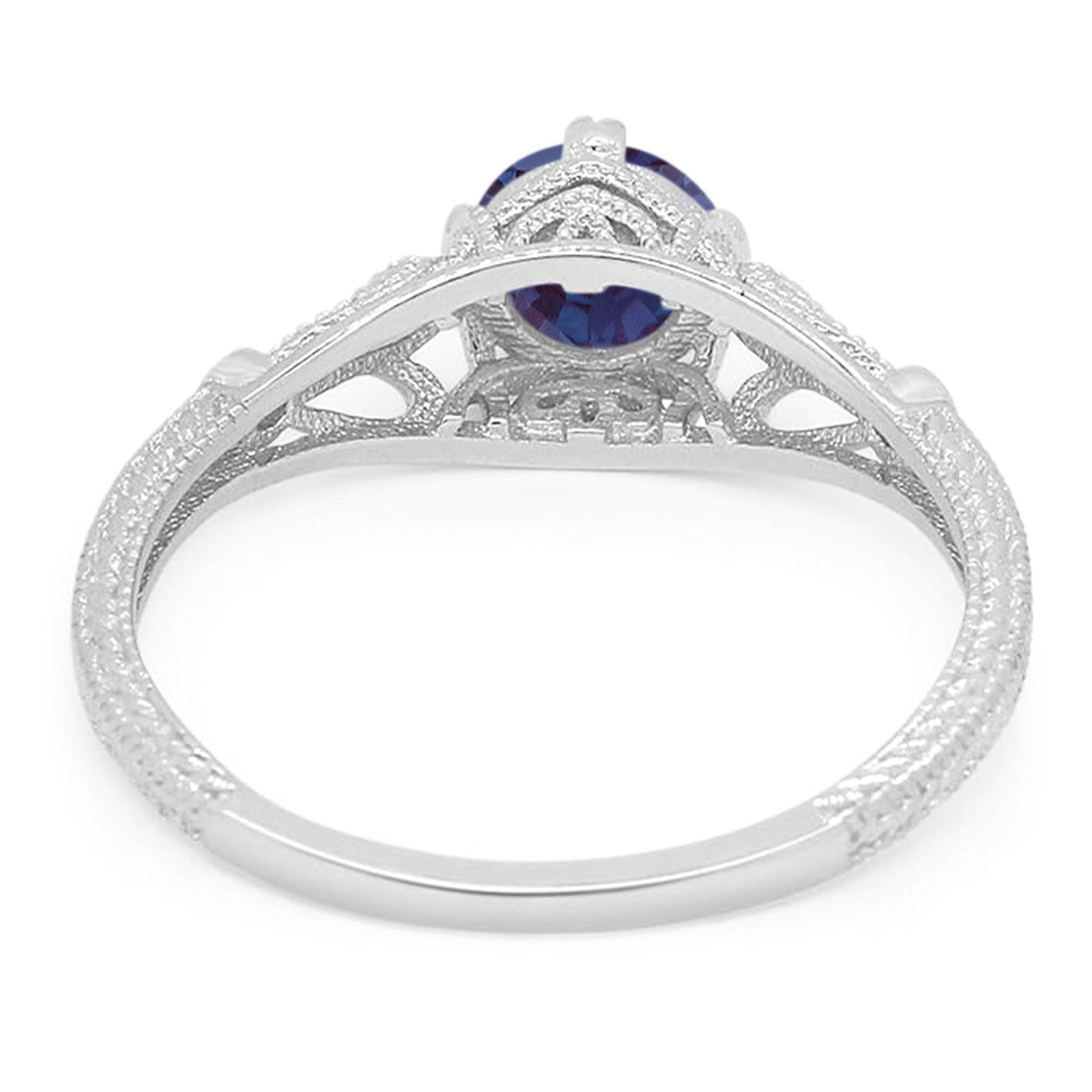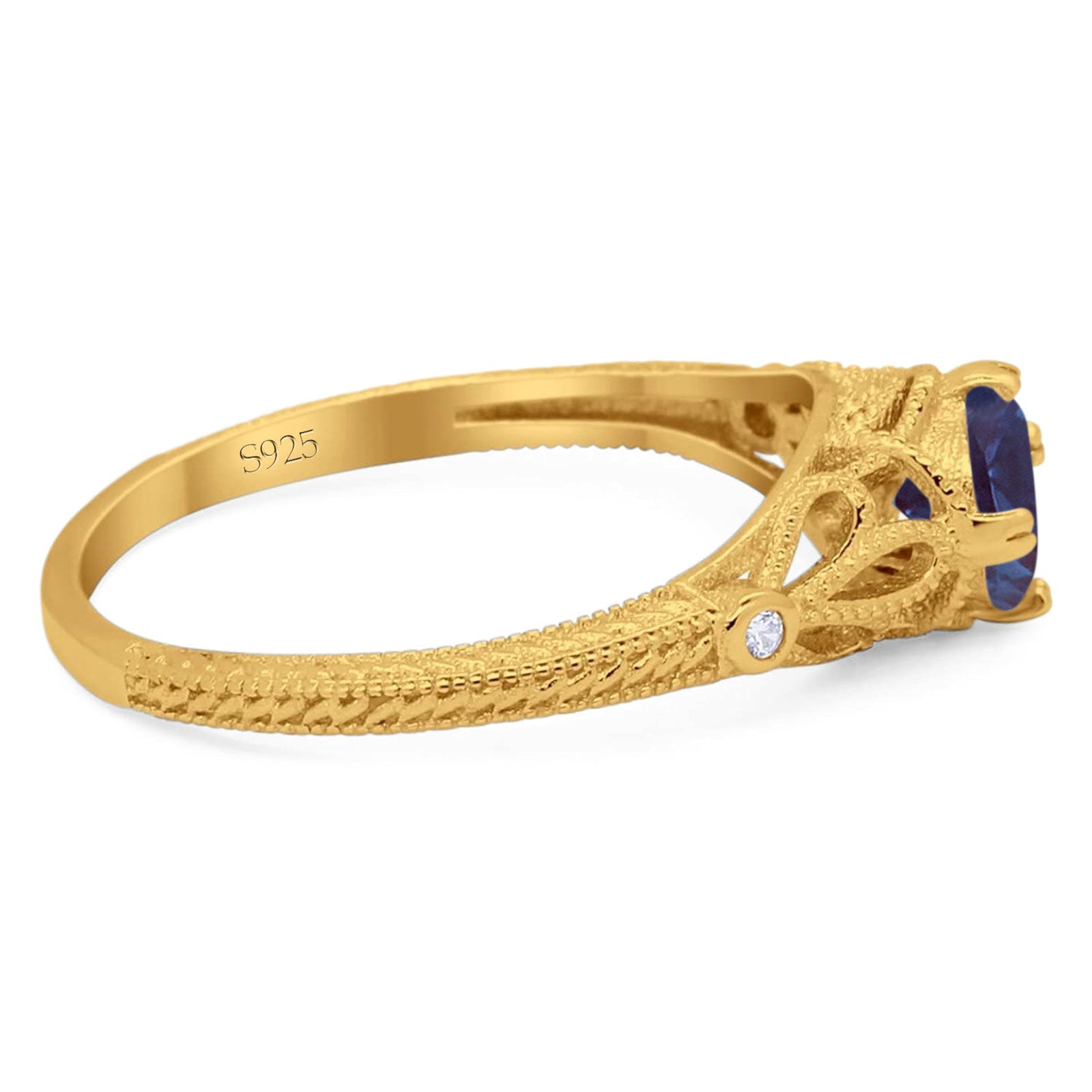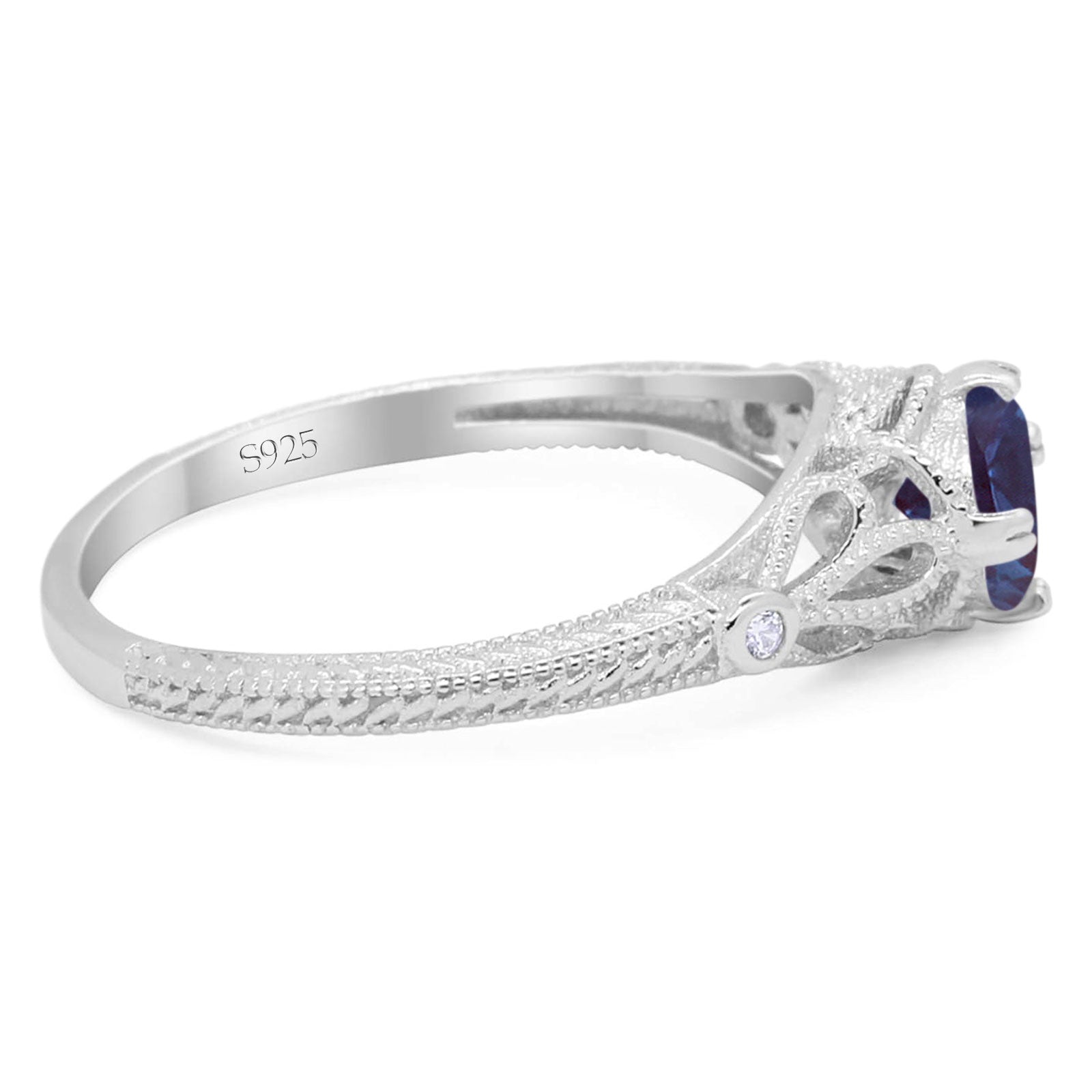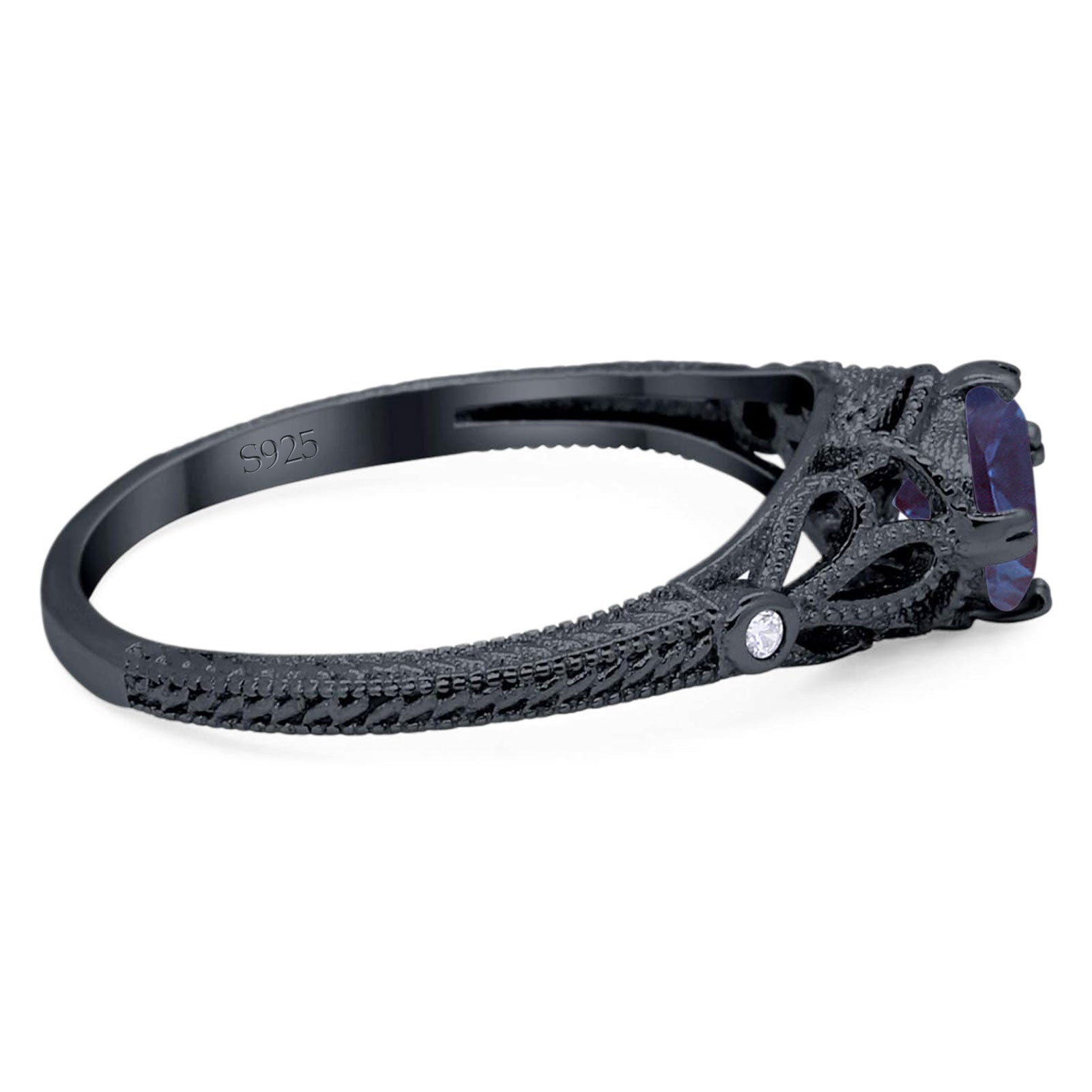 Round Lab Alexandrite Leaf Vintage Style Ring 925 Sterling Silver