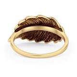 Design: Round Lab Created Bue Opal Oxidized Feather Leaf Ring.