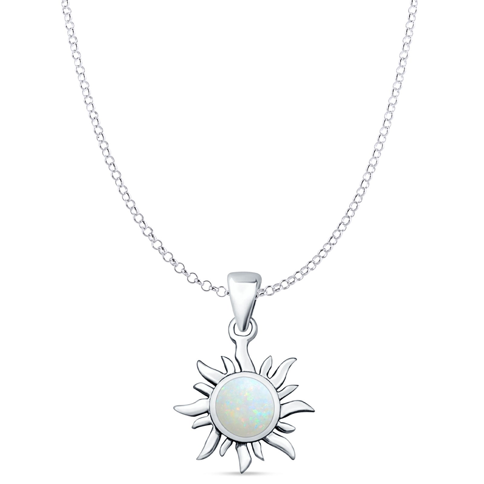 Style: Oxidized Round Lab Created White Opal Sun Pendant Necklace