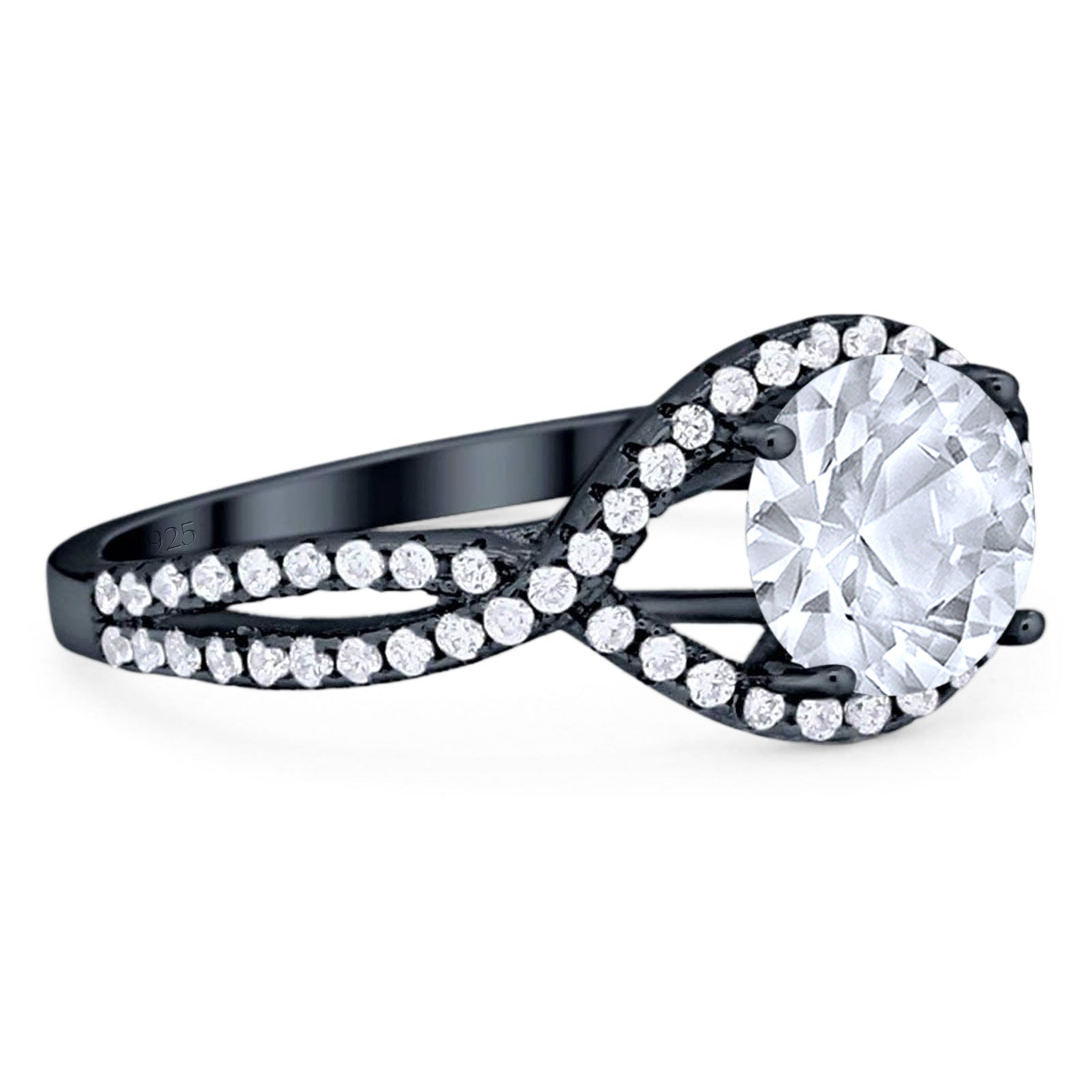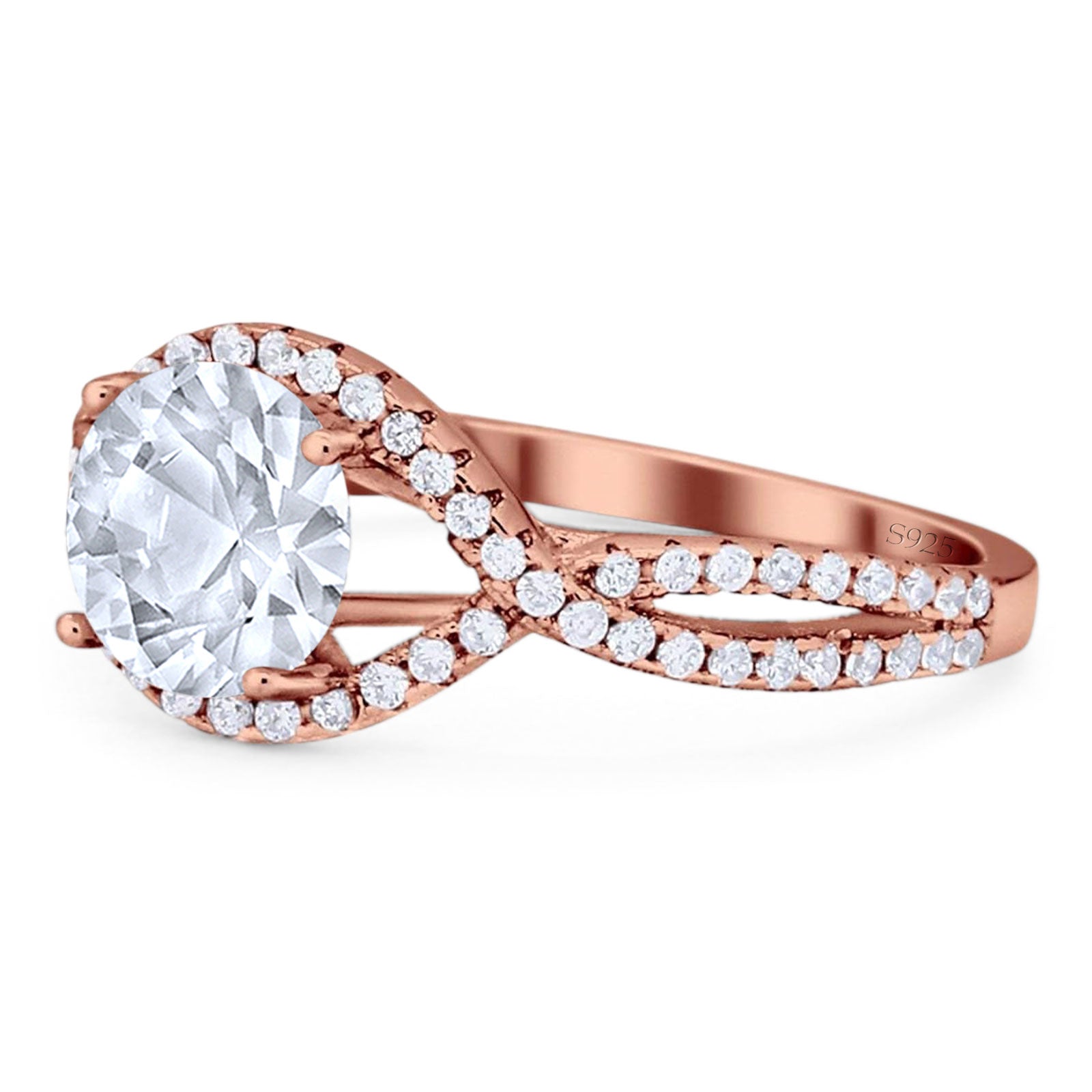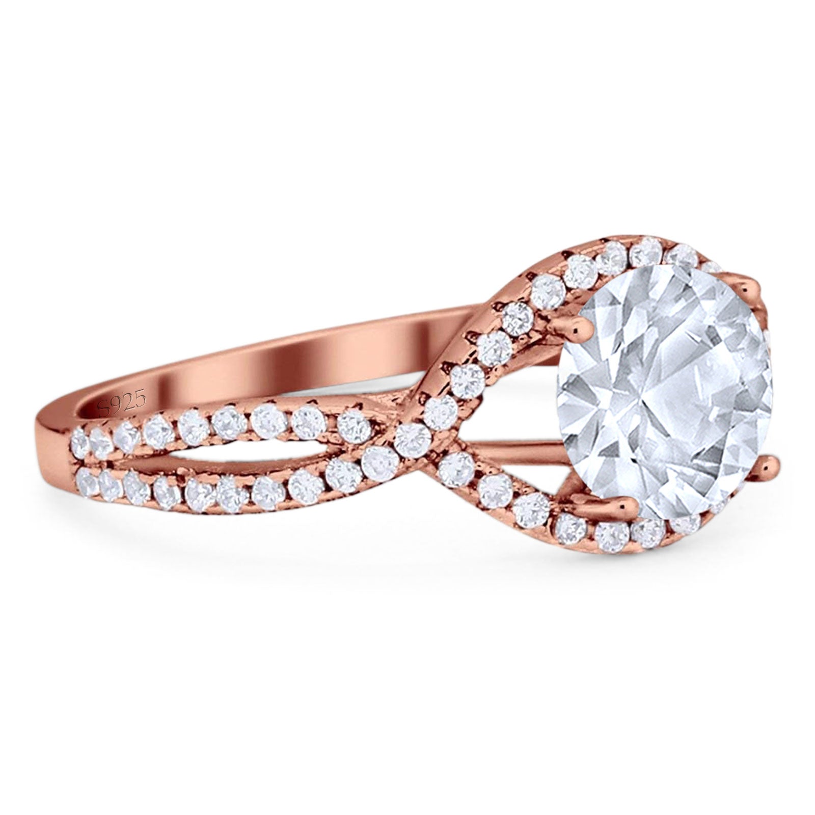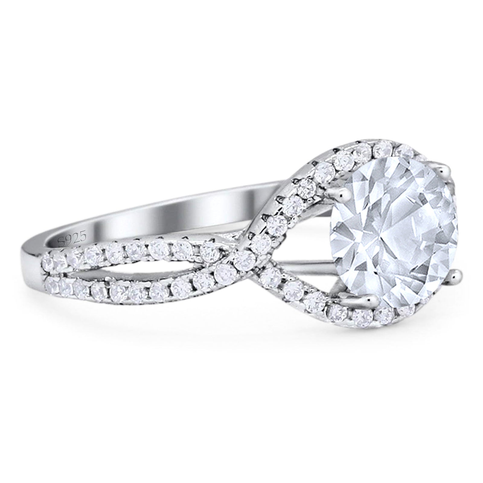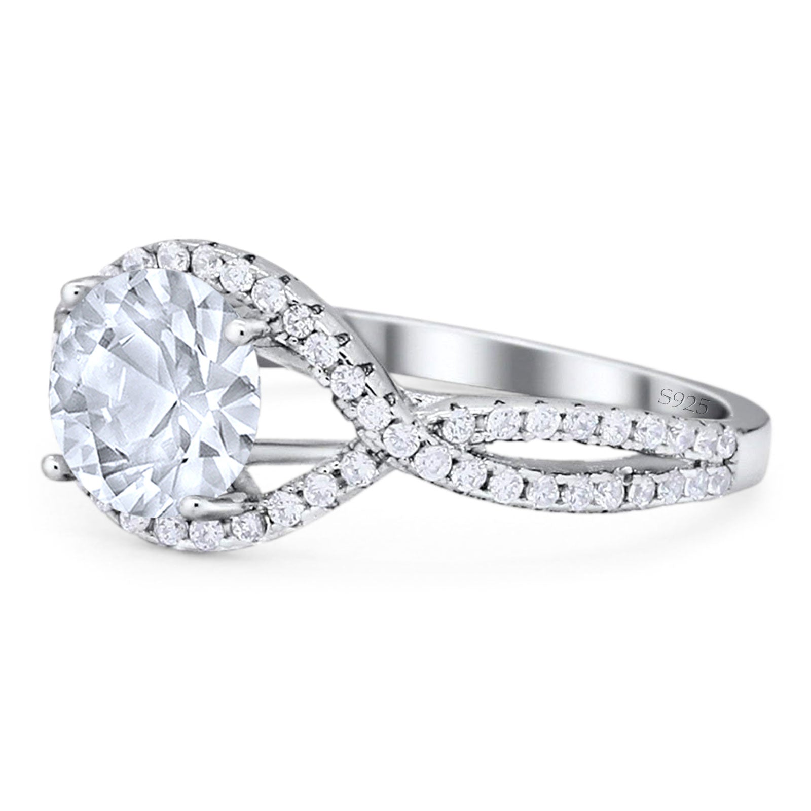 Round Moissanite Infinity Shank Twisted Ring 925 Sterling Silver