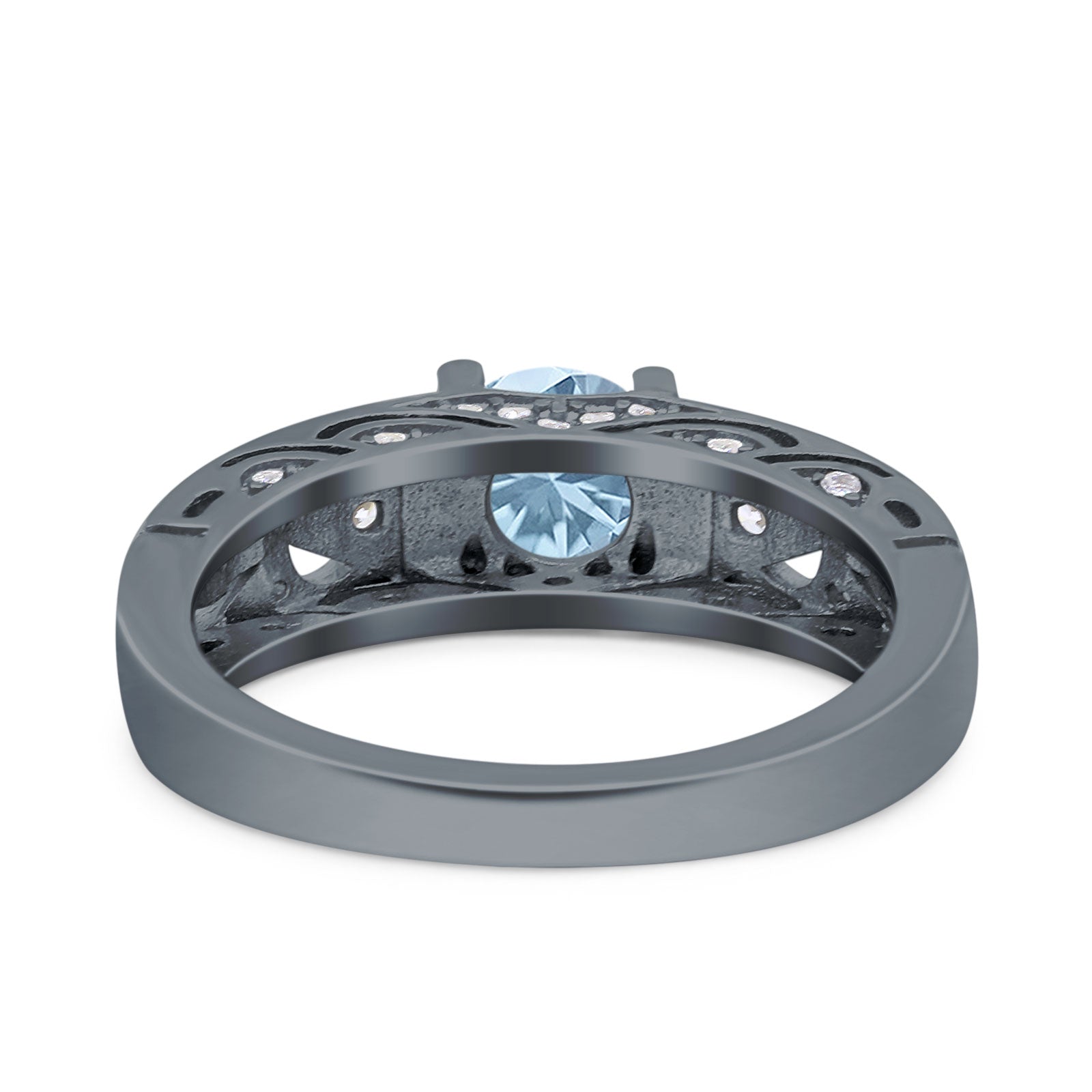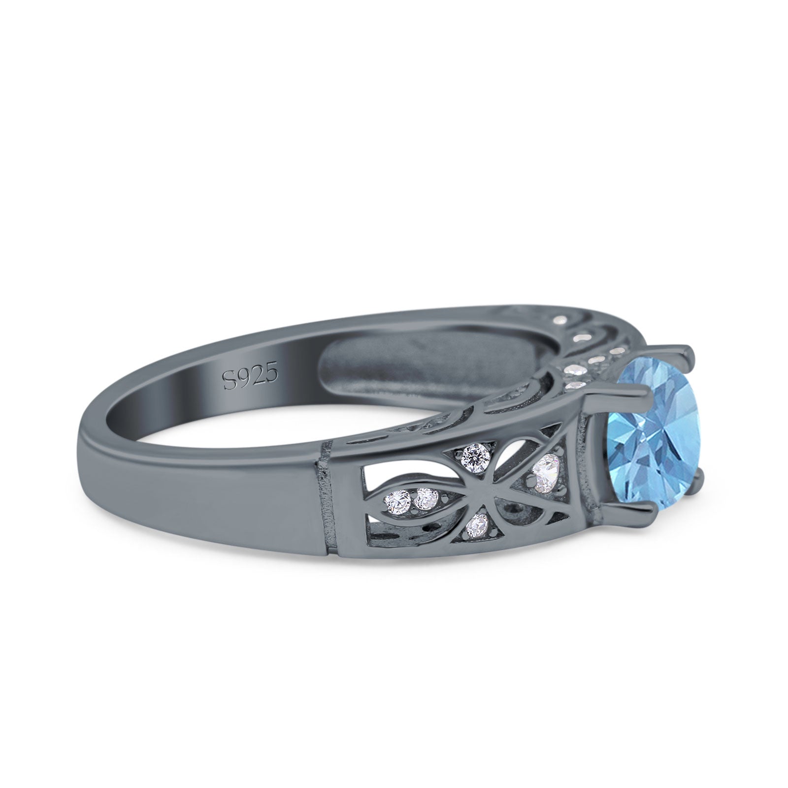 Round Natural Aquamarine Filigree Design Ring 925 Sterling Silver