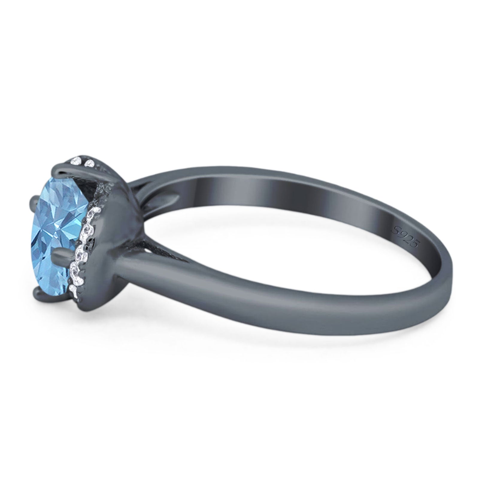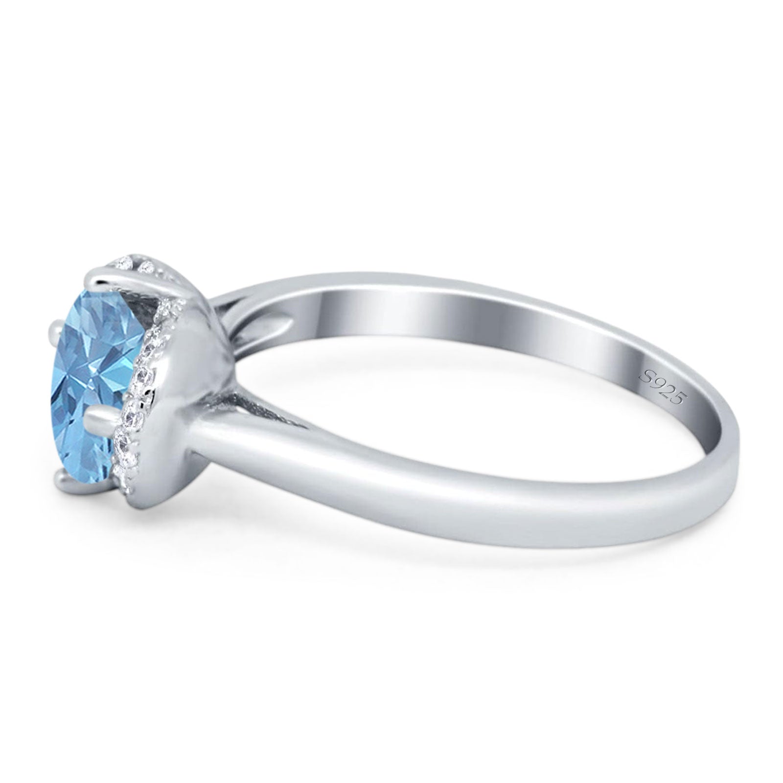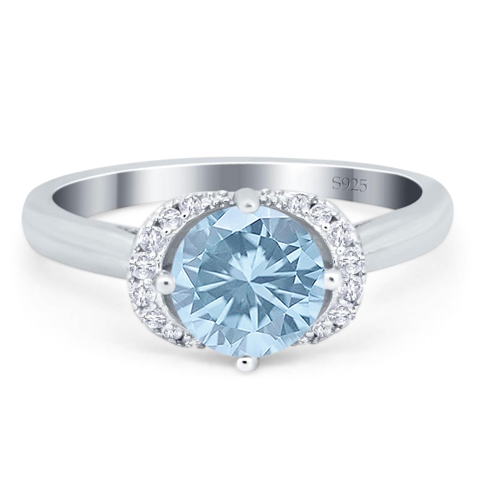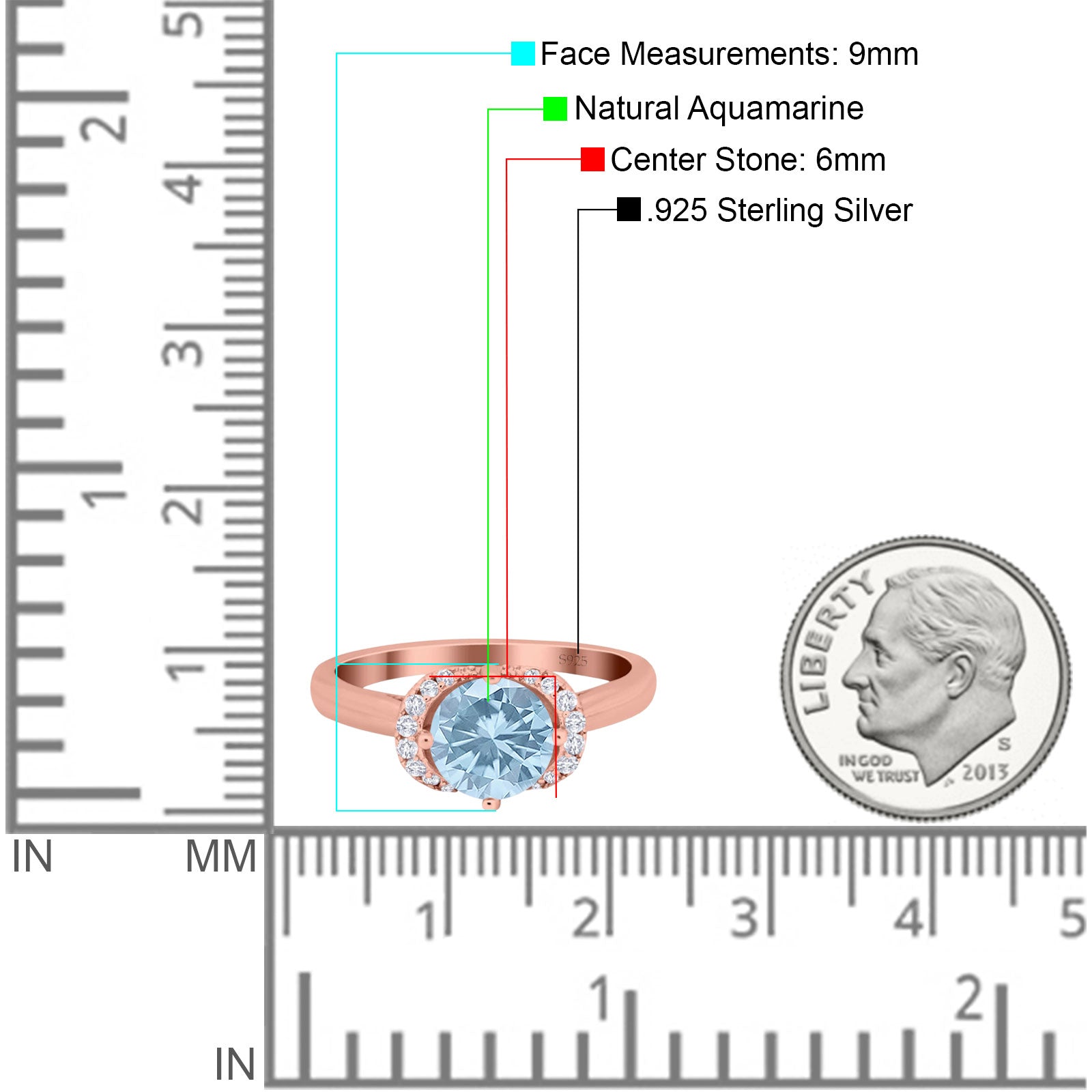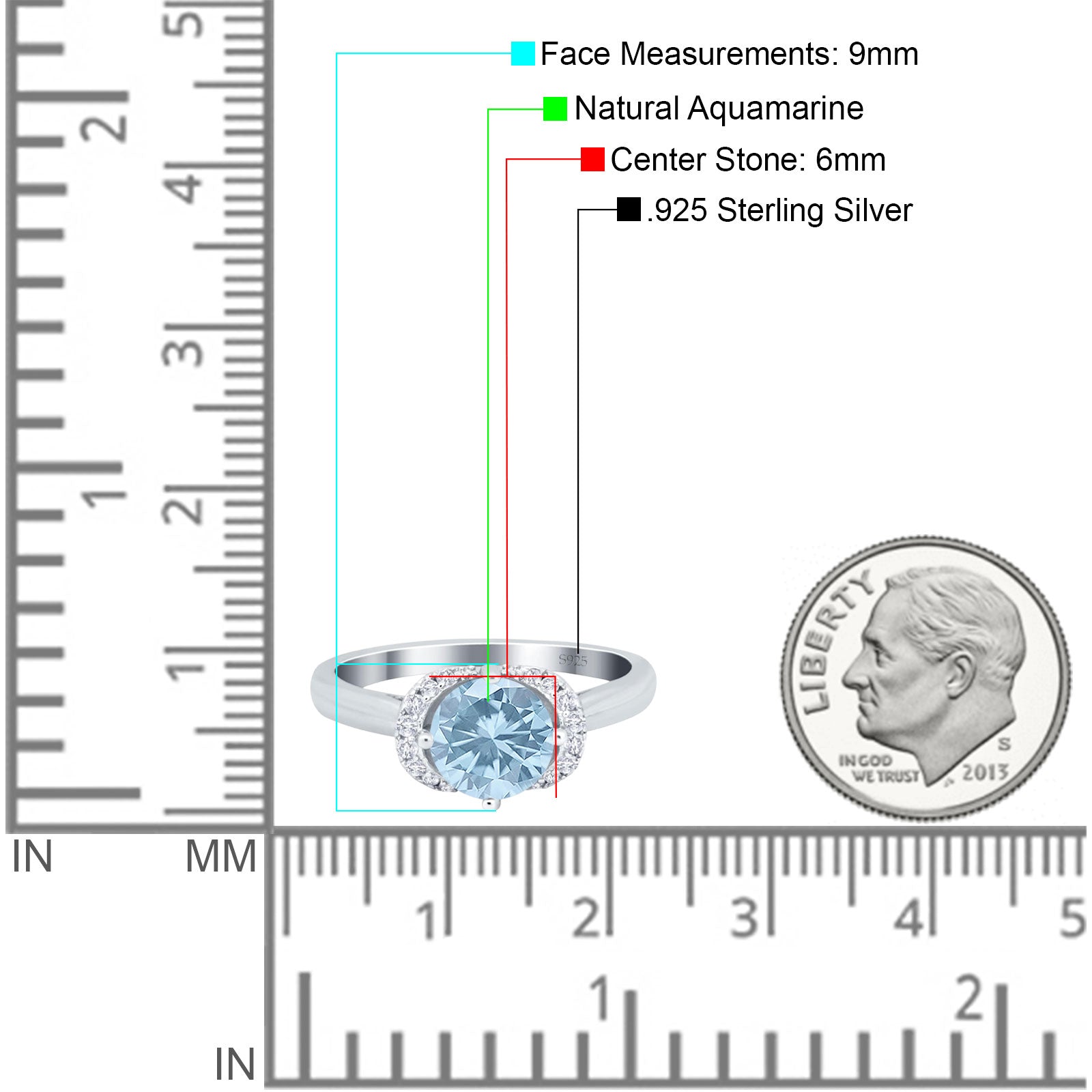 Round Natural Aquamarine Halo Wedding Ring 925 Sterling Silver