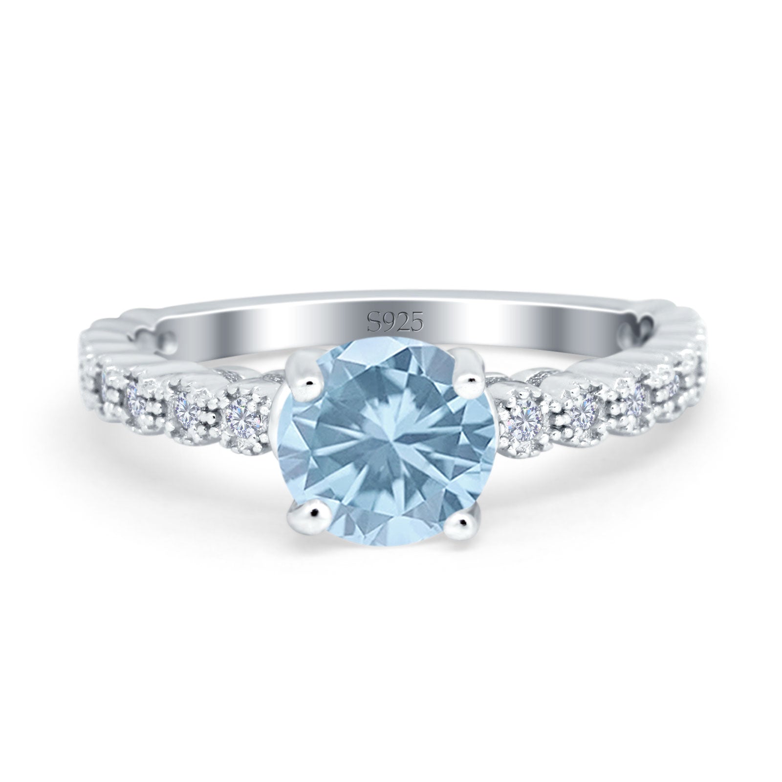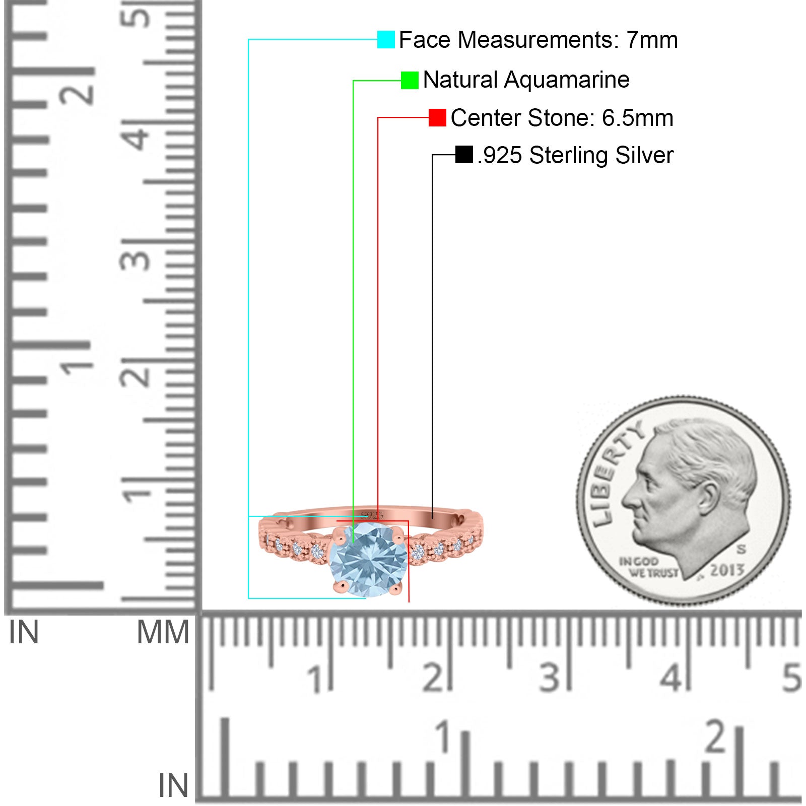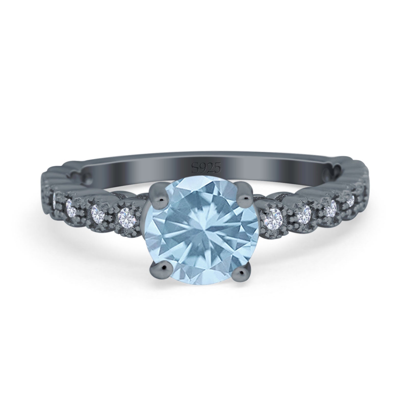 Round Natural Aquamarine Vintage Style Art Deco Ring 925 Sterling Silver